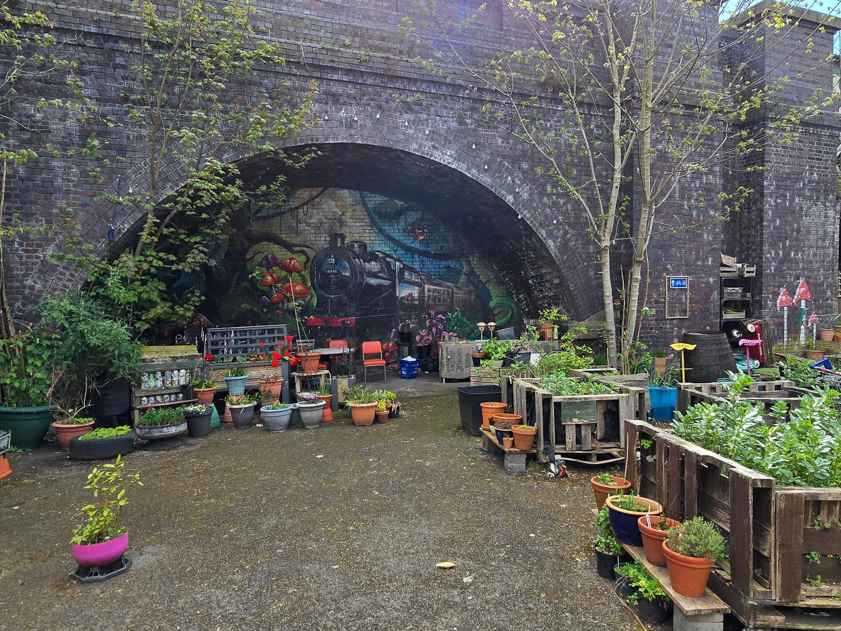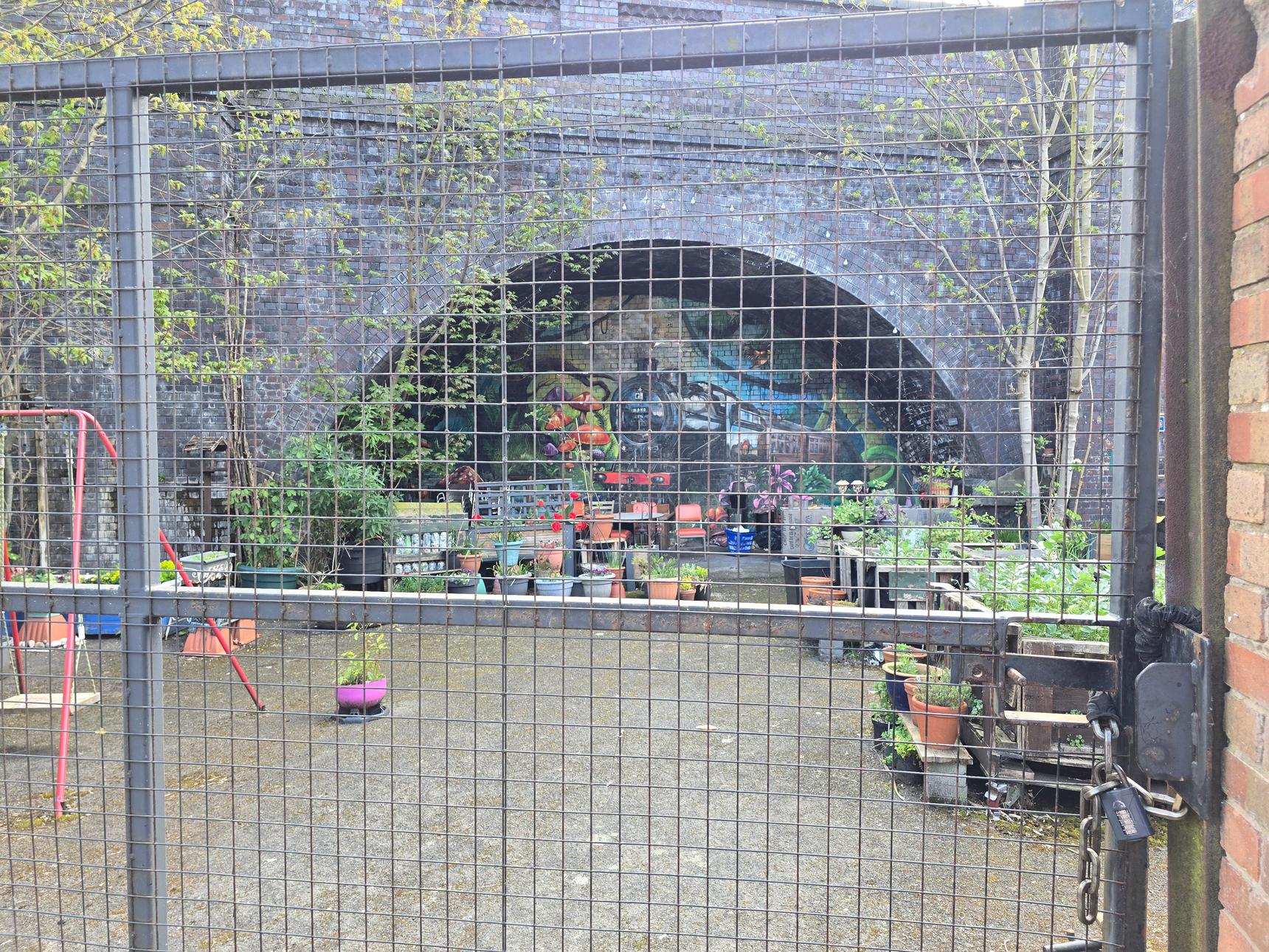 Mural is visible from the street 24/7. The opening times for the gardens are (according to the very old sign outside; have not confirmed this is still valid)