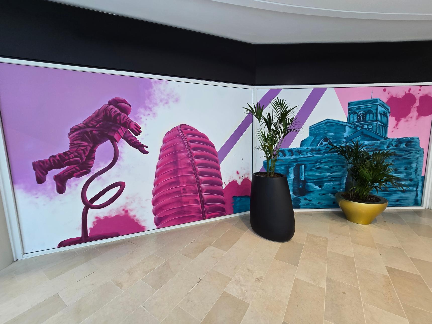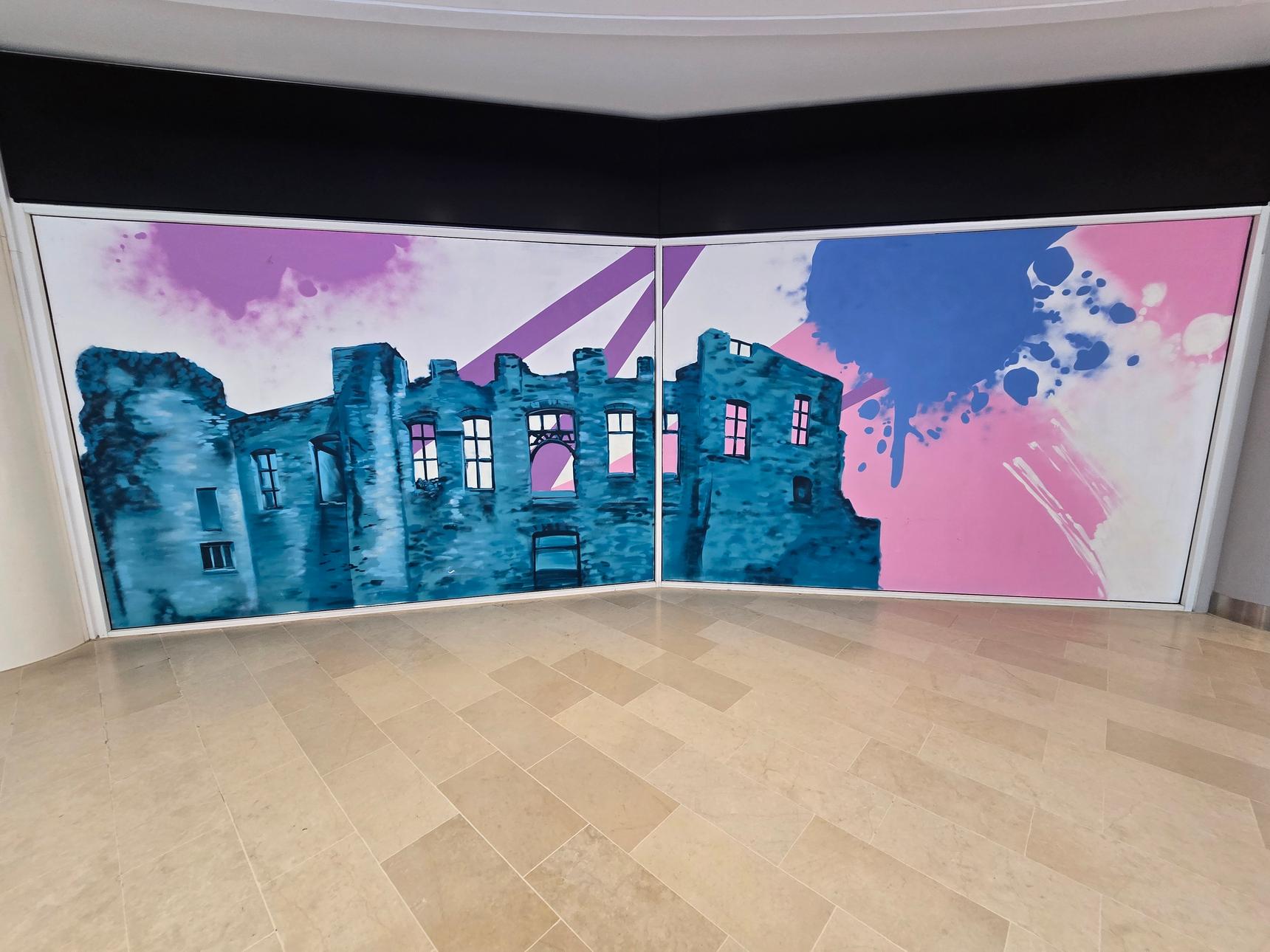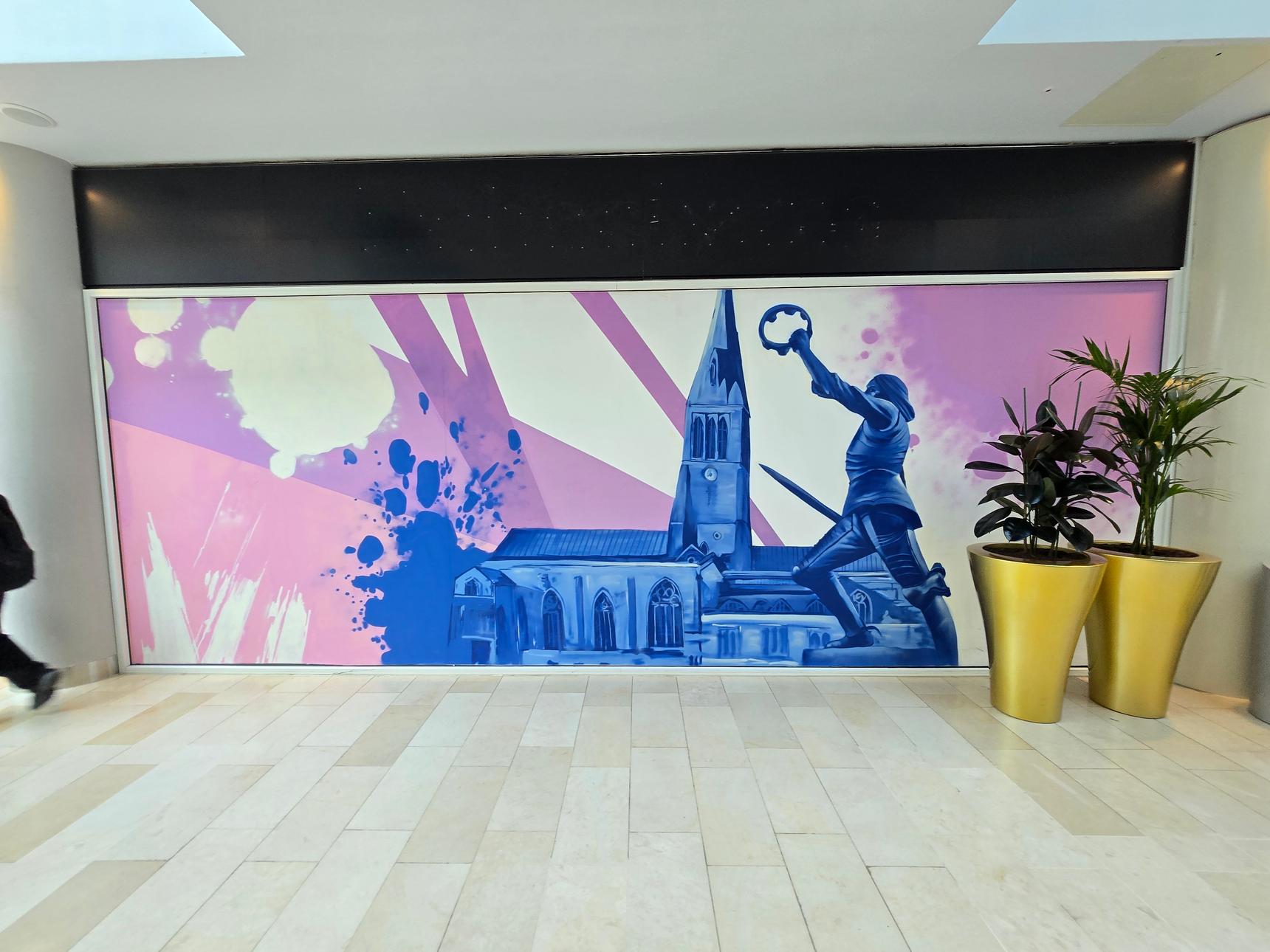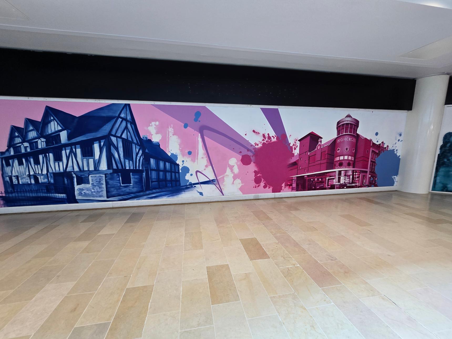 A series of murals depicting famous places around Leicester. These are on the lower Mall, opposite Foot Locker.