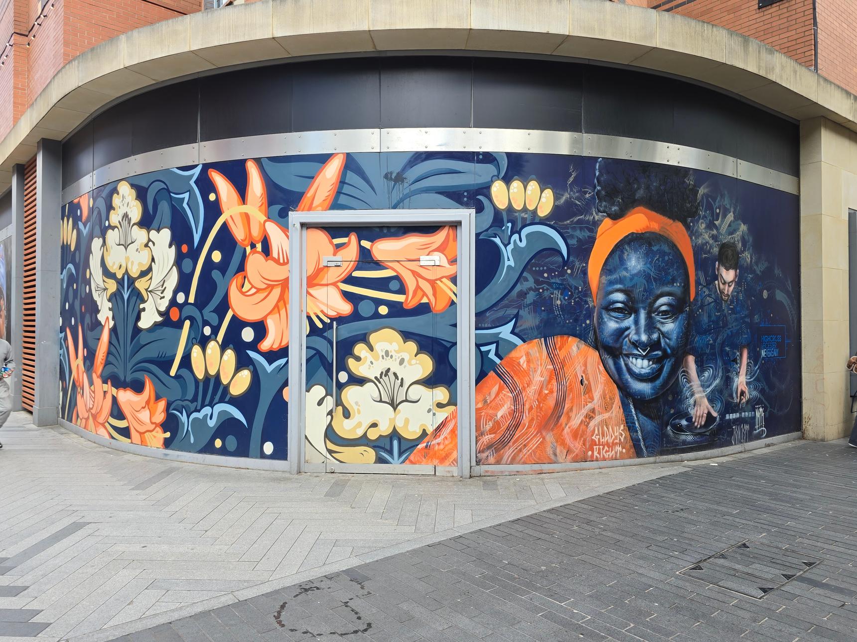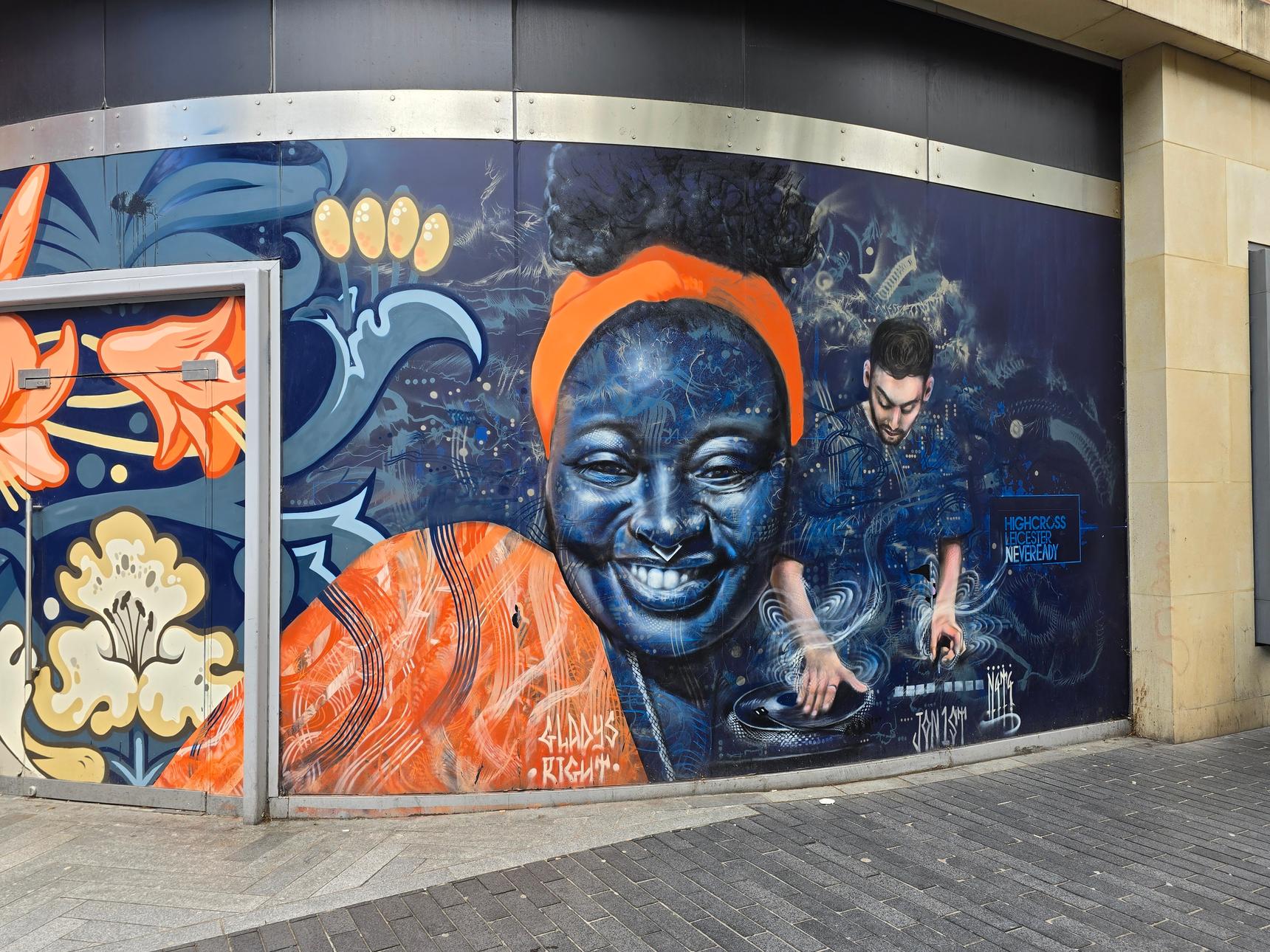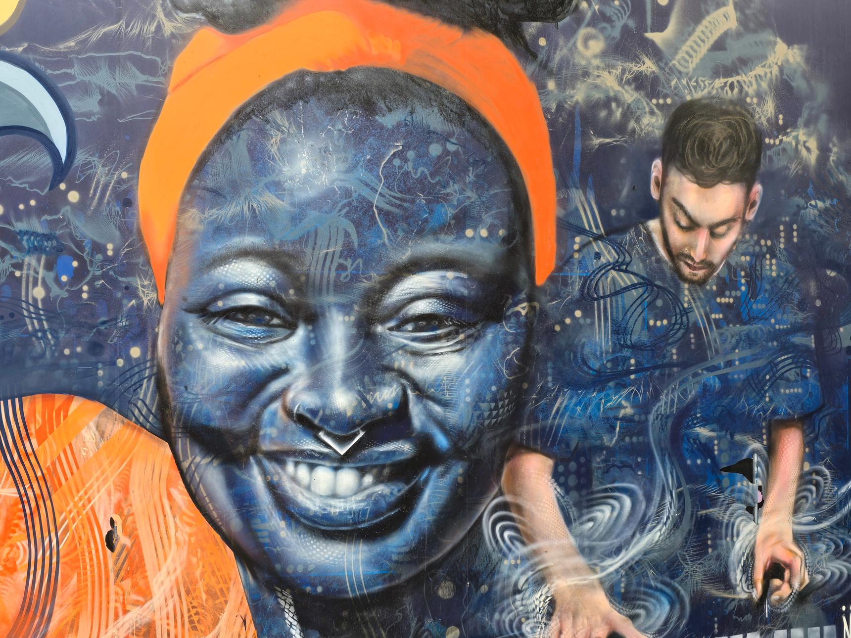 Collaborative work by Philth (left) and N4T4 (right). The people depicted are local musical artists Gladys Right and Jon 1st.
