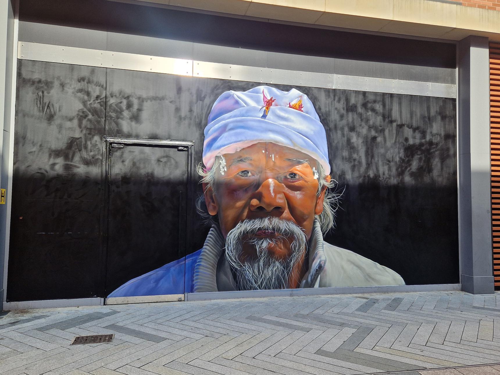 Unfortunately, there is a little damage to this mural. I have added a photo i took back in June 2024, which shows it as it was originally painted.