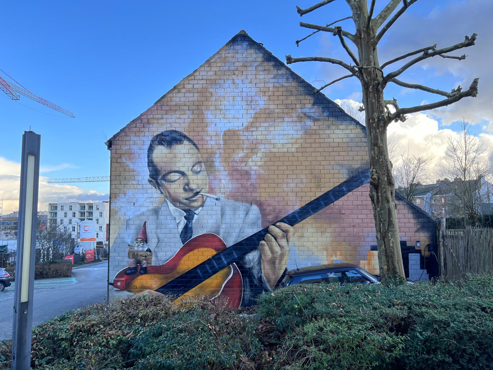 New mural with Django Reinhardt on it. He was one of the founders of jazz music in Belgium.