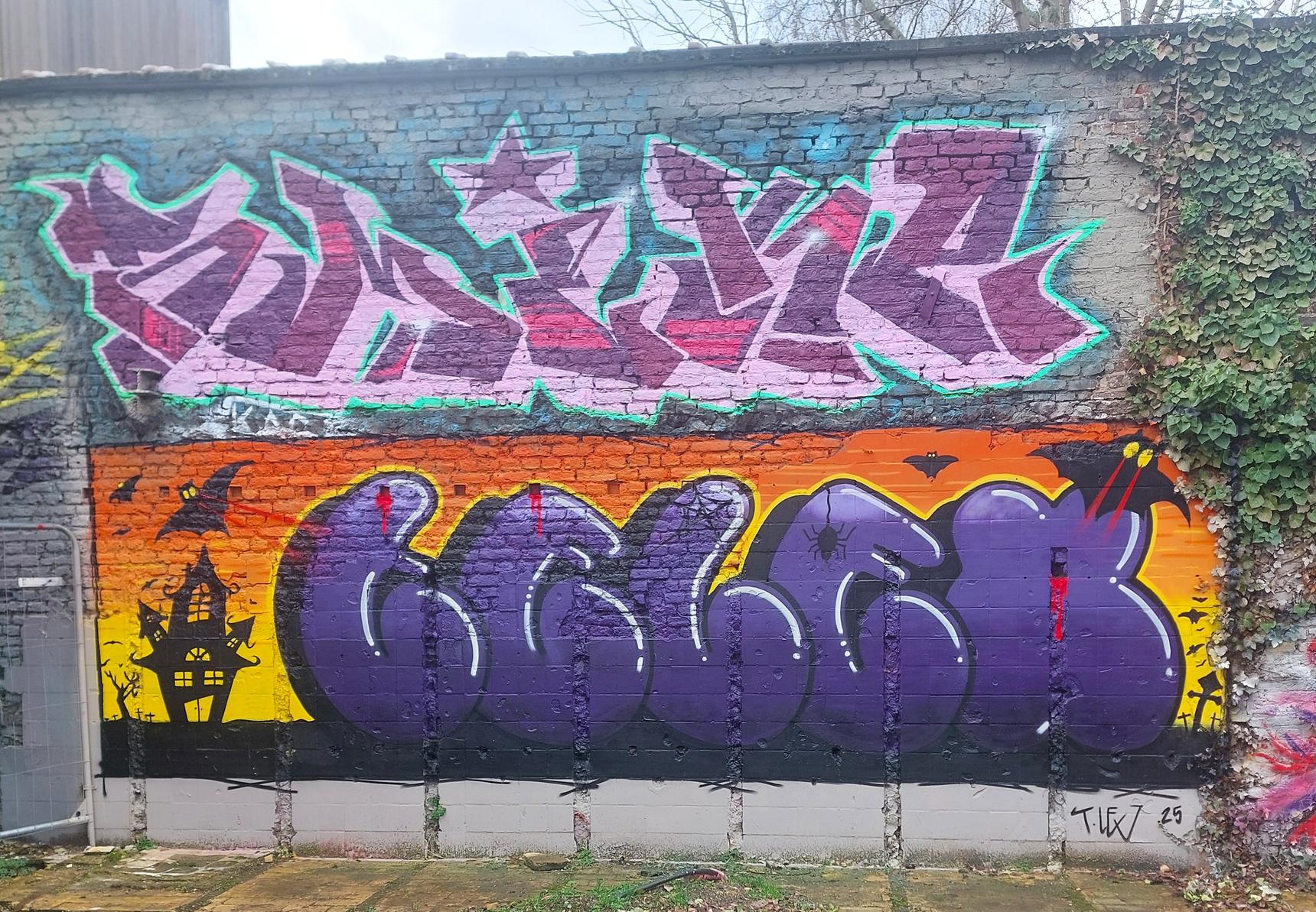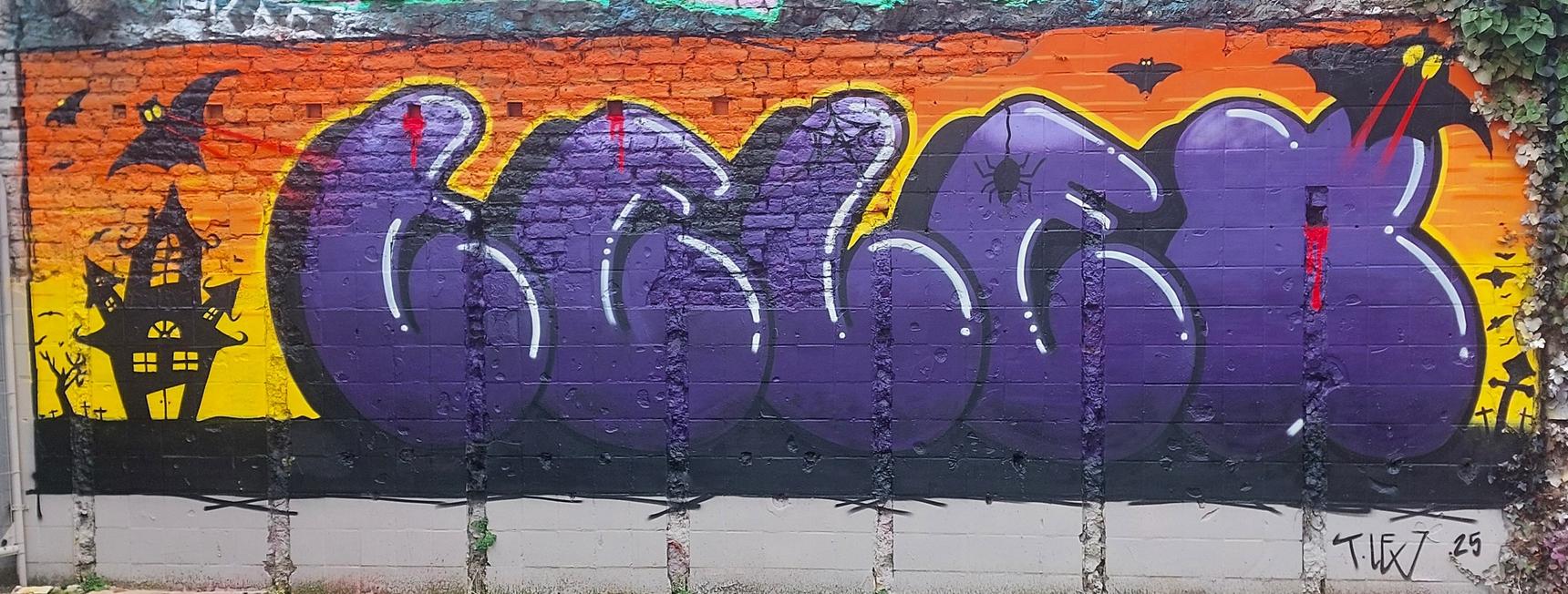 L'œuvre a été réalisée lors du Halloween Jam 2025 sur le parking du site ICADI.
