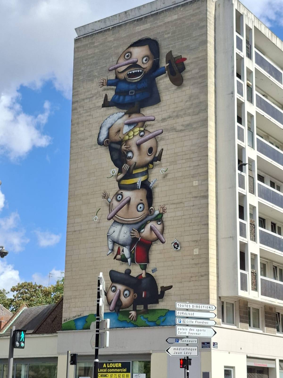 You can find the artwork on the corner of Rue Pierre Mauroy and Boulevard JF Kennedy.