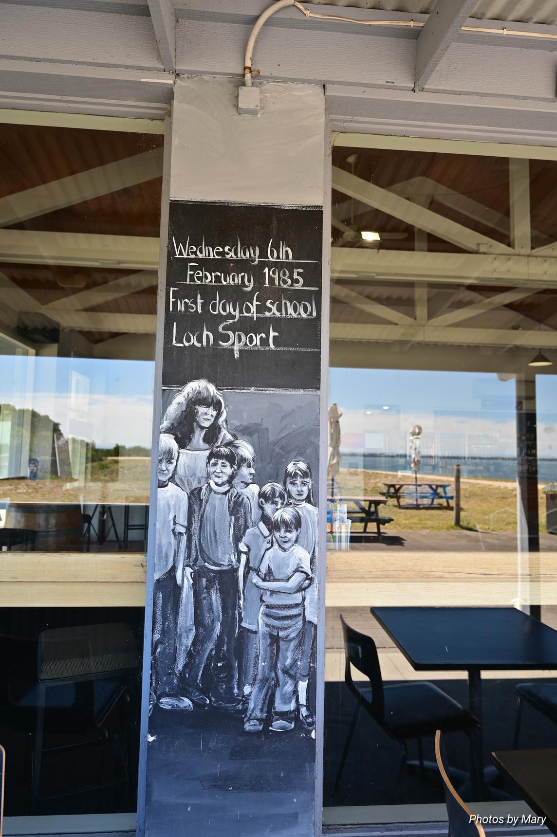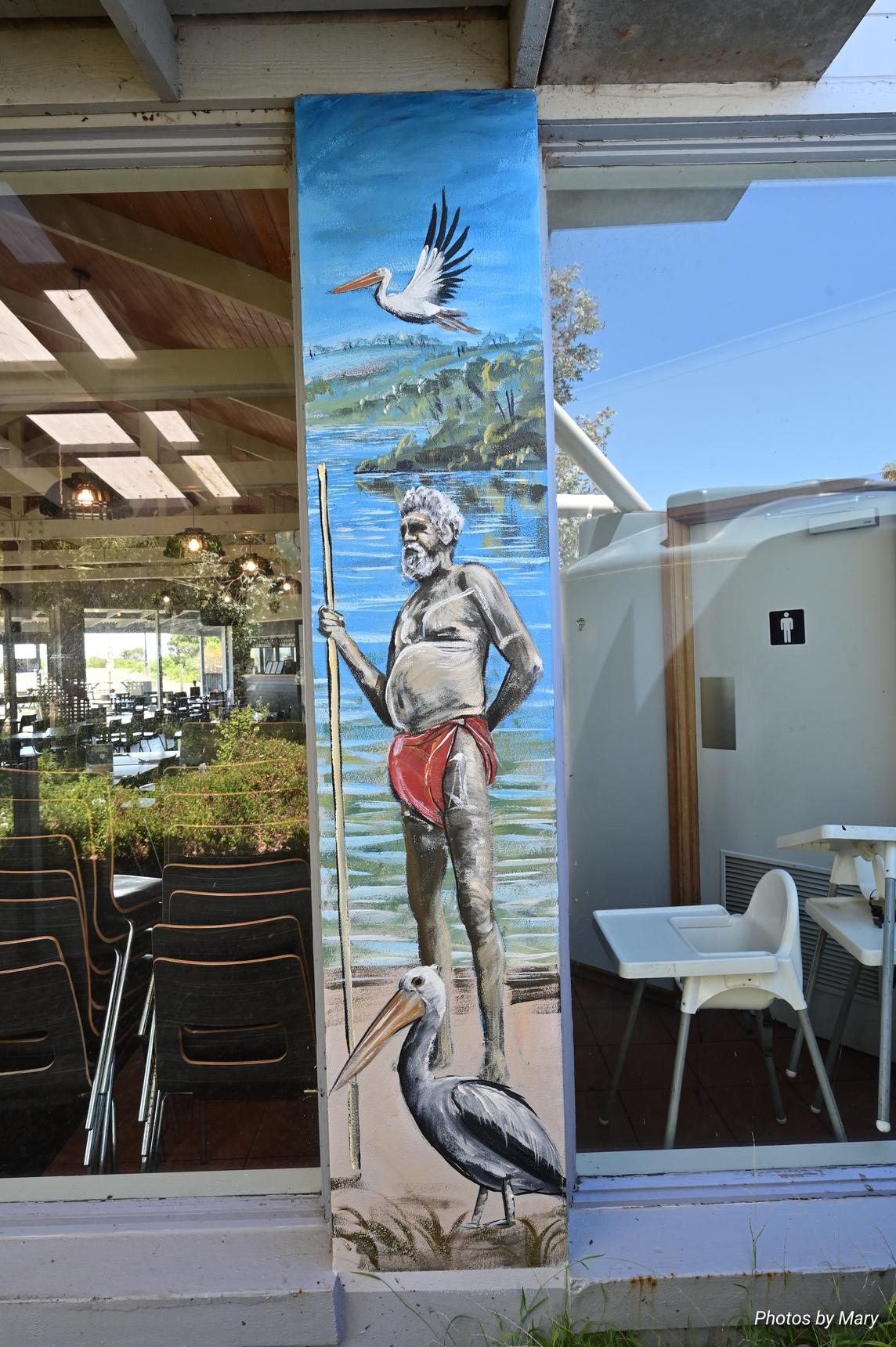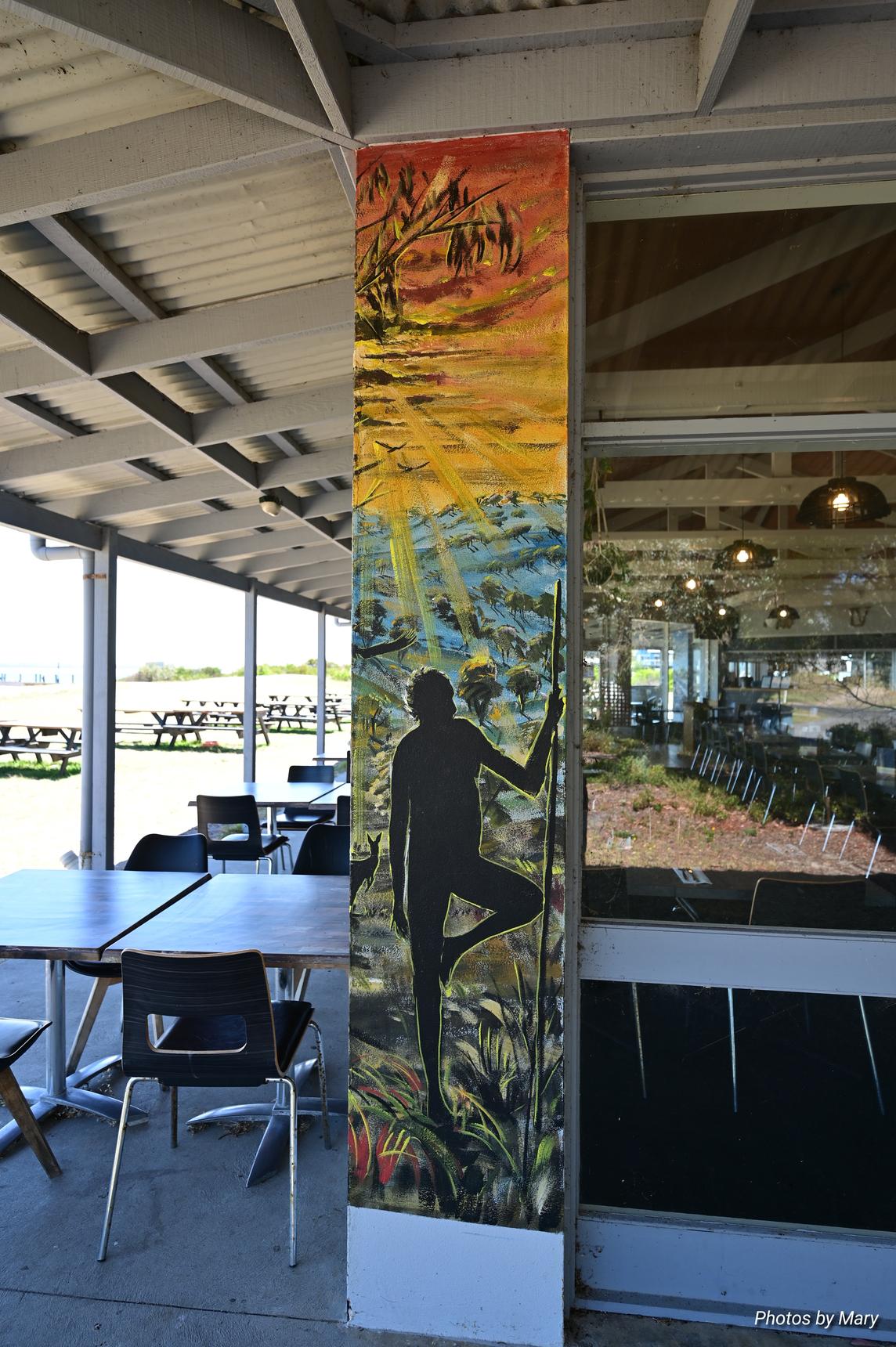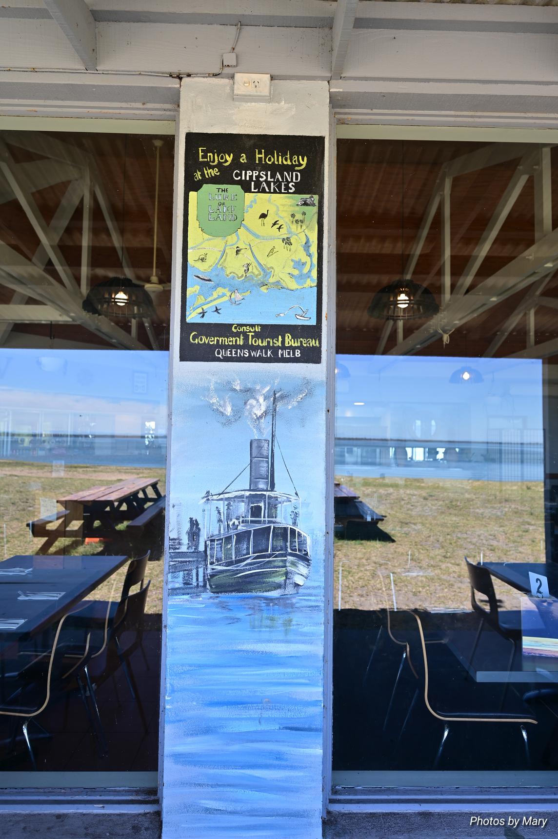 Murals are of various things seen in the Loch Sport area and are located on columns on the outside of the Lakeview Bar and Bistro.