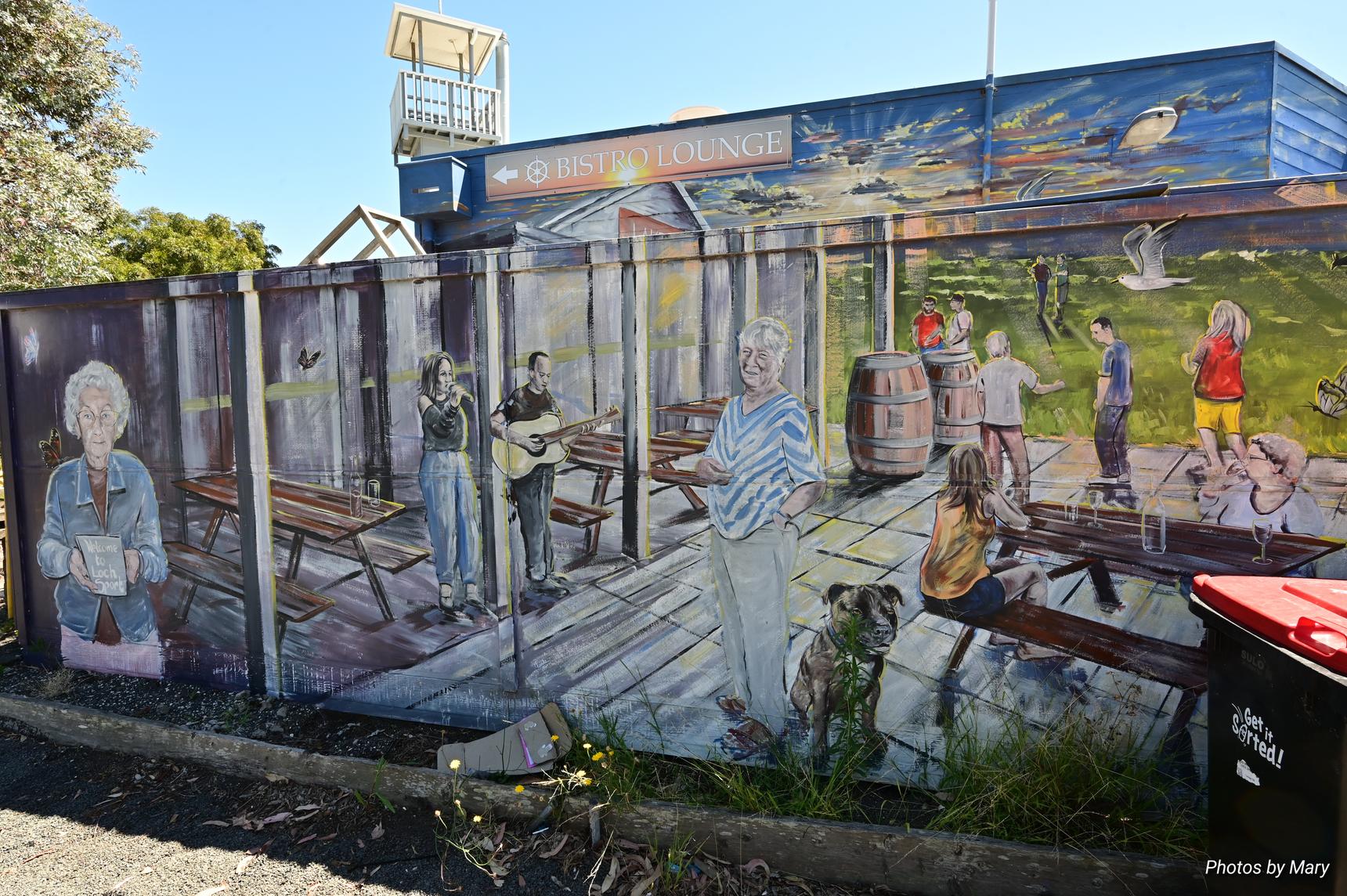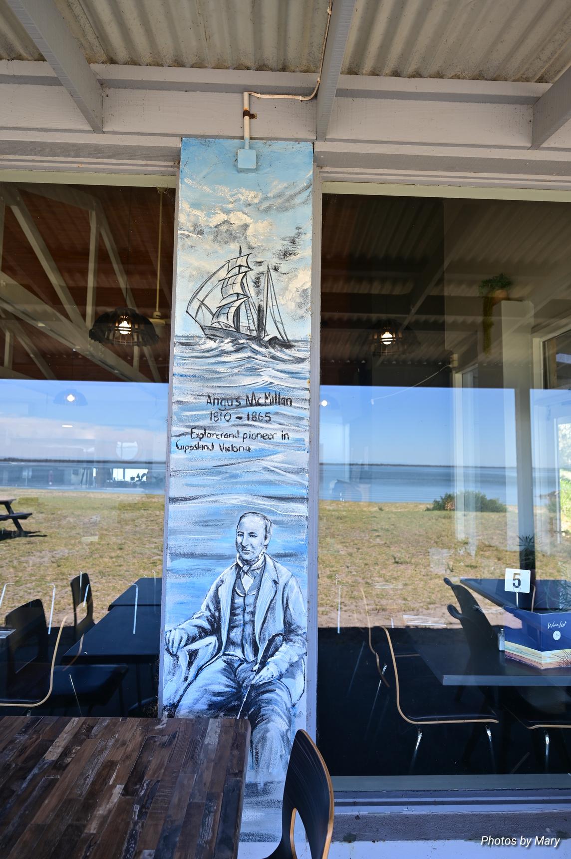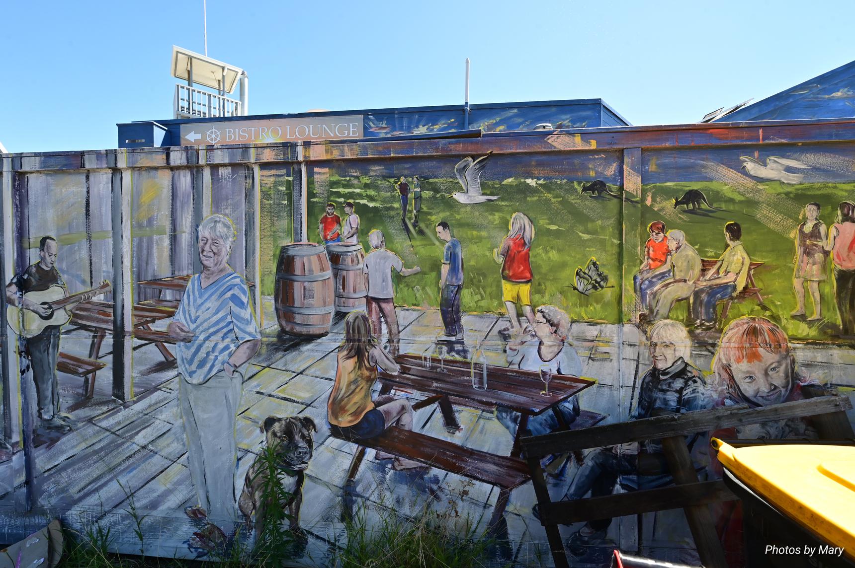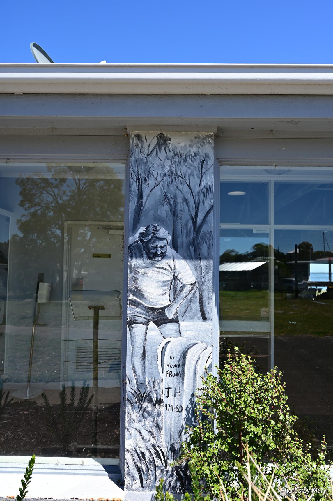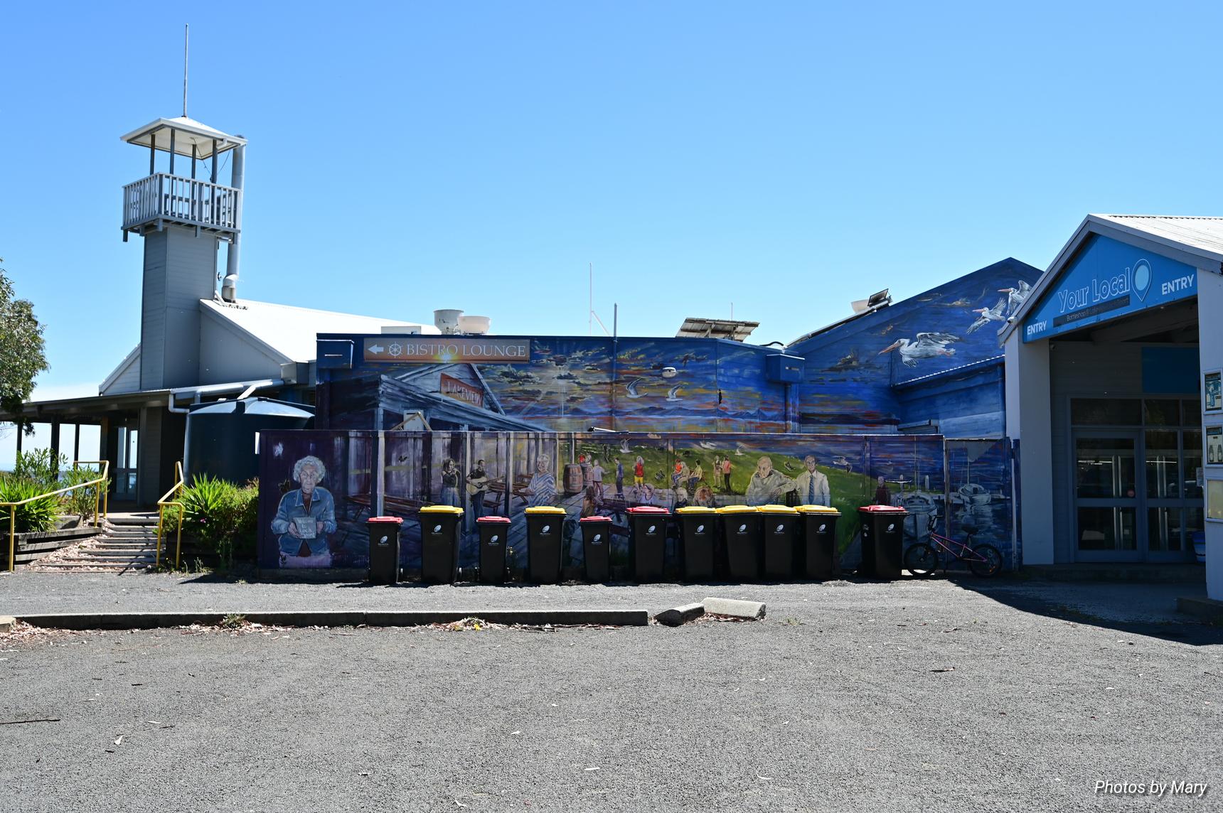 Murals are of various things seen in the Loch Sport area and are located on columns on the outside of the Lakeview Bar and Bistro.