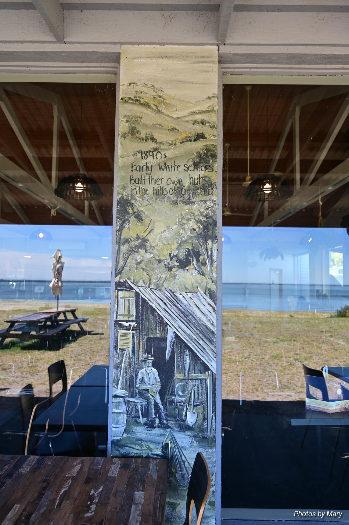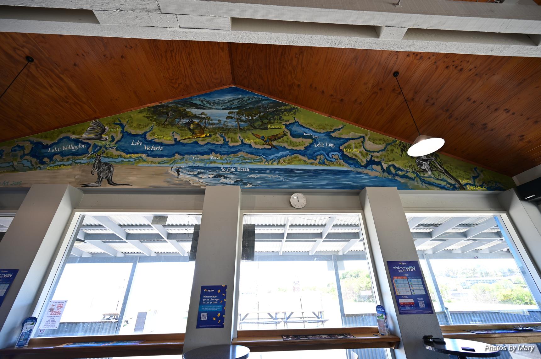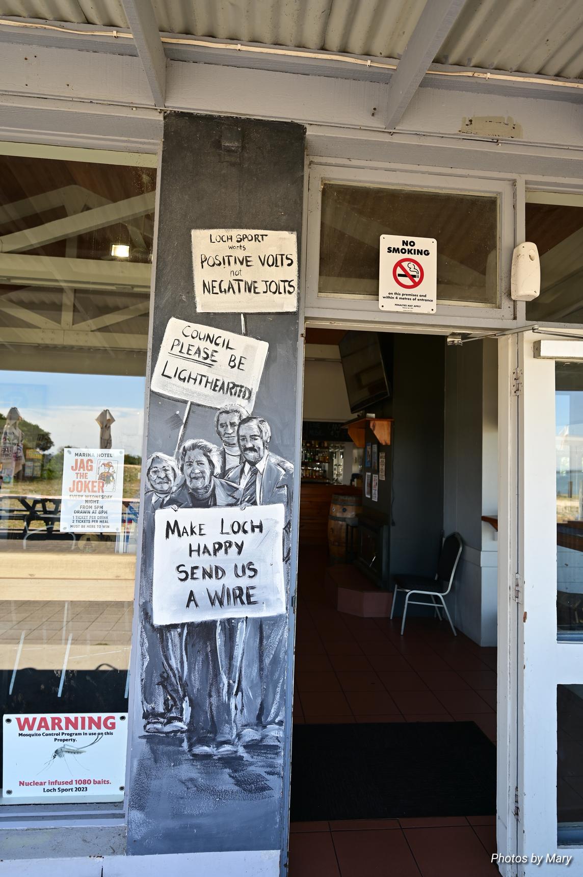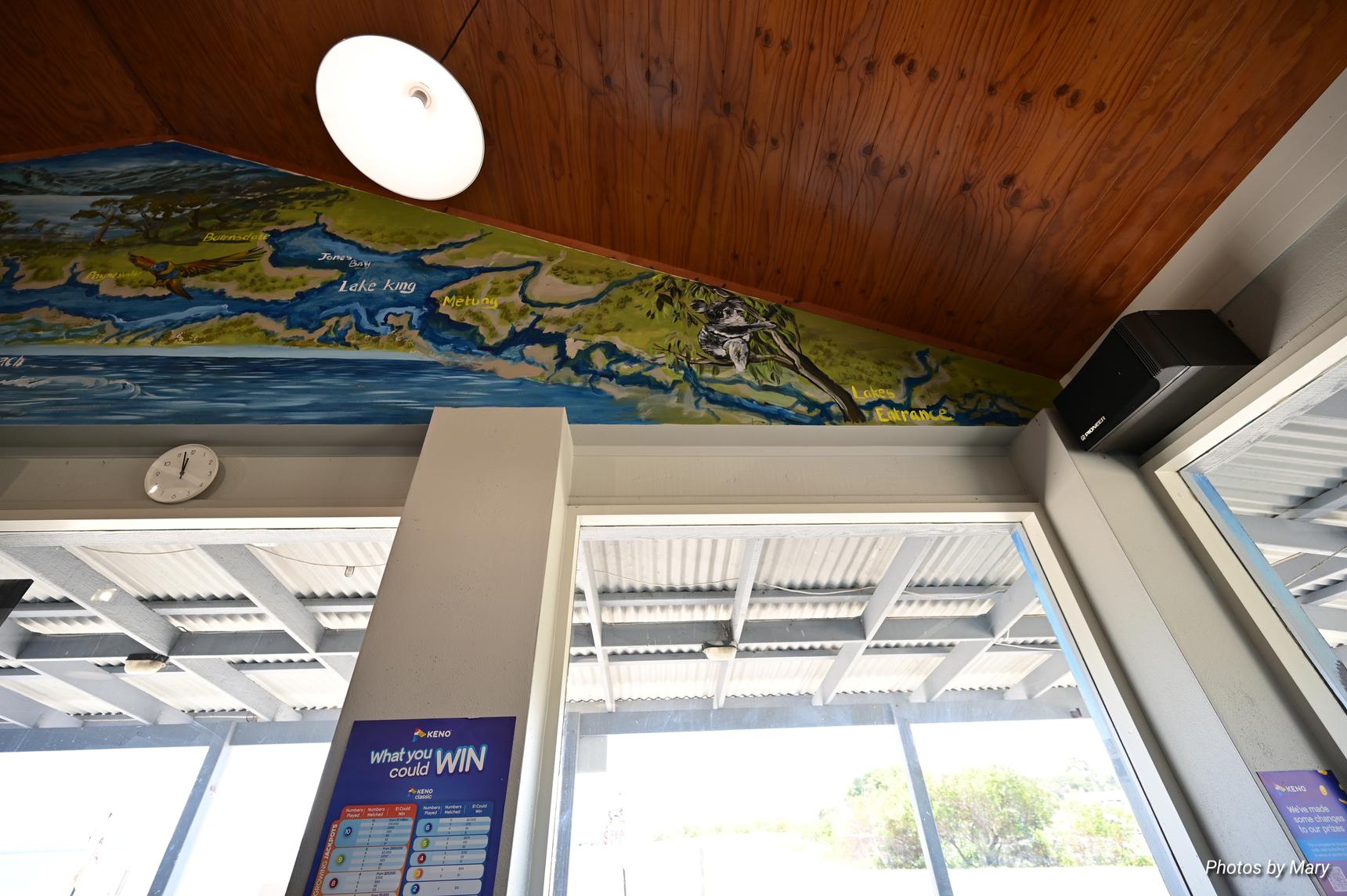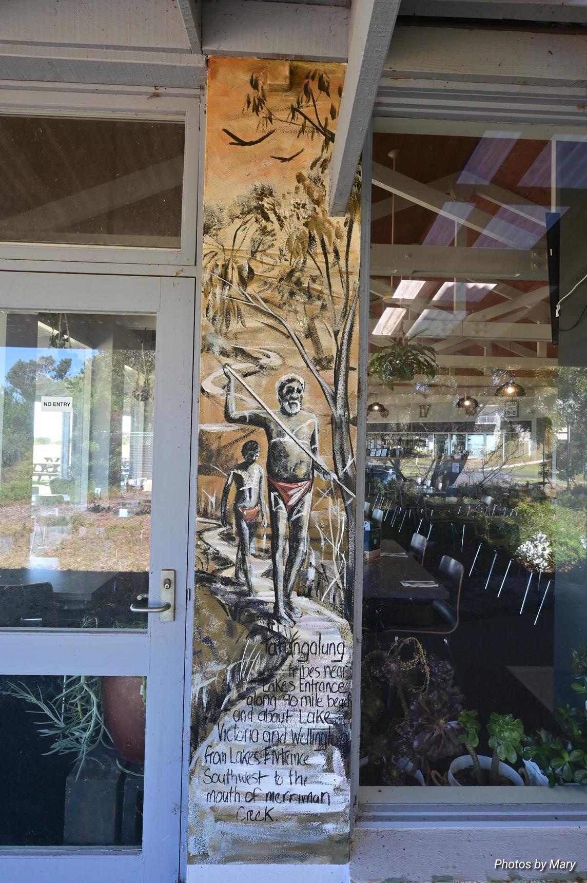 Murals are of various things seen in the Loch Sport area and are located on columns on the outside of the Lakeview Bar and Bistro.