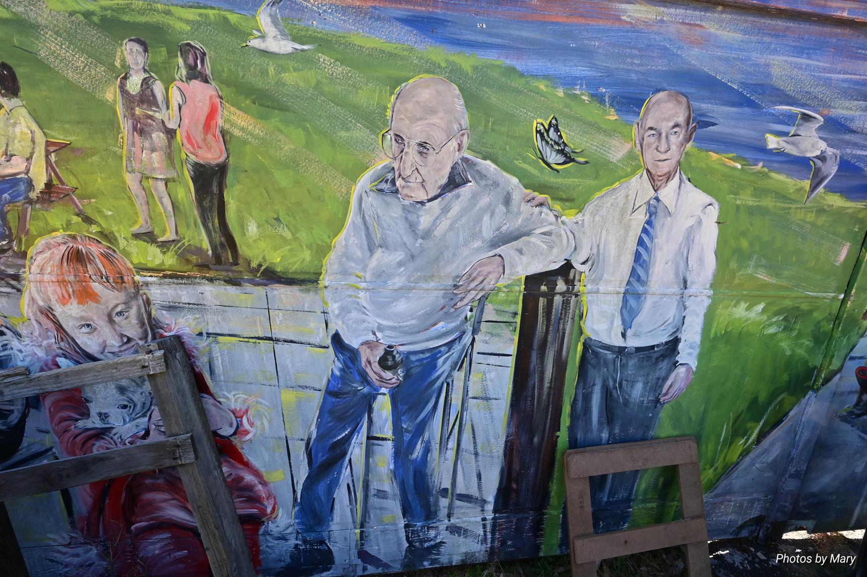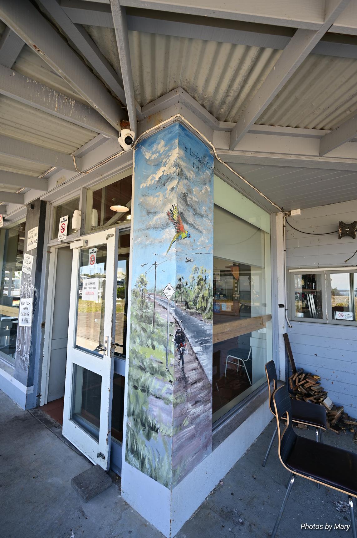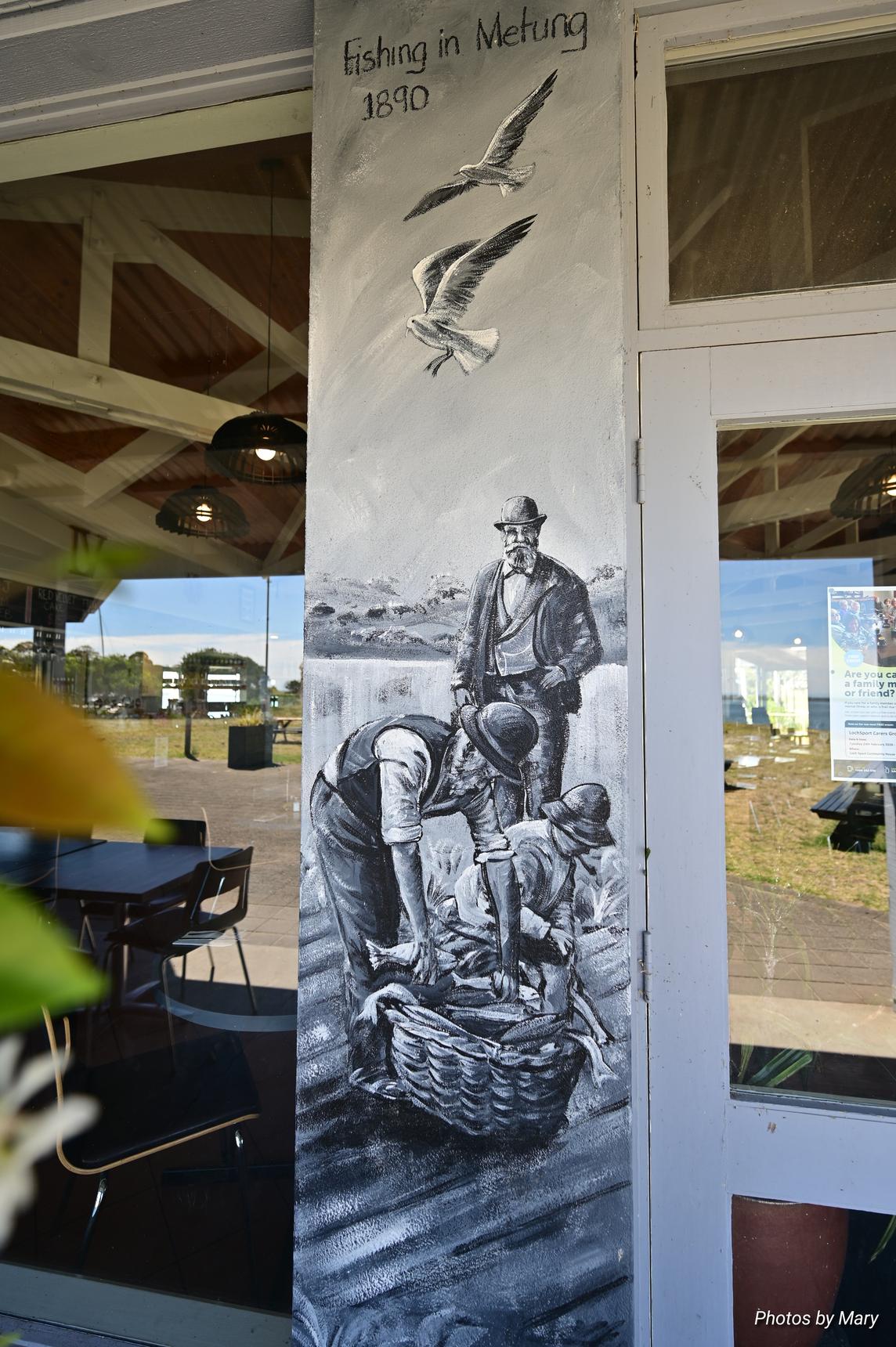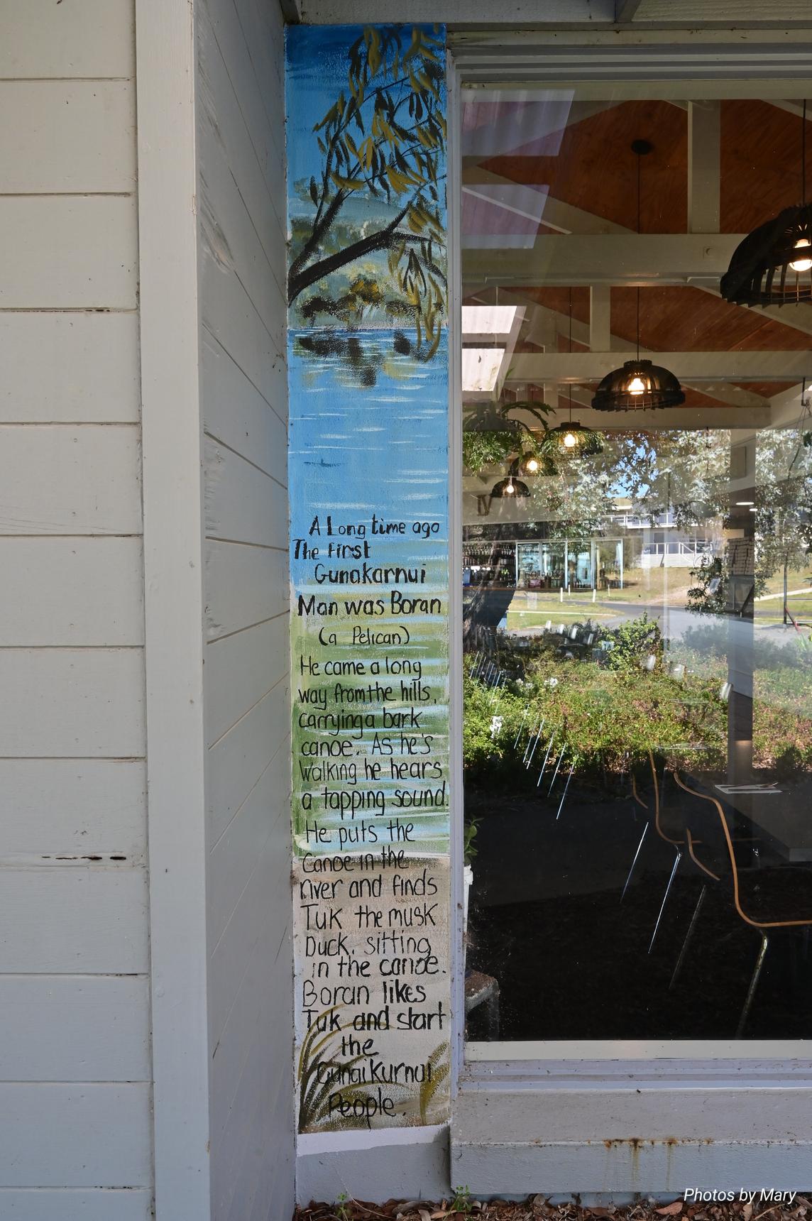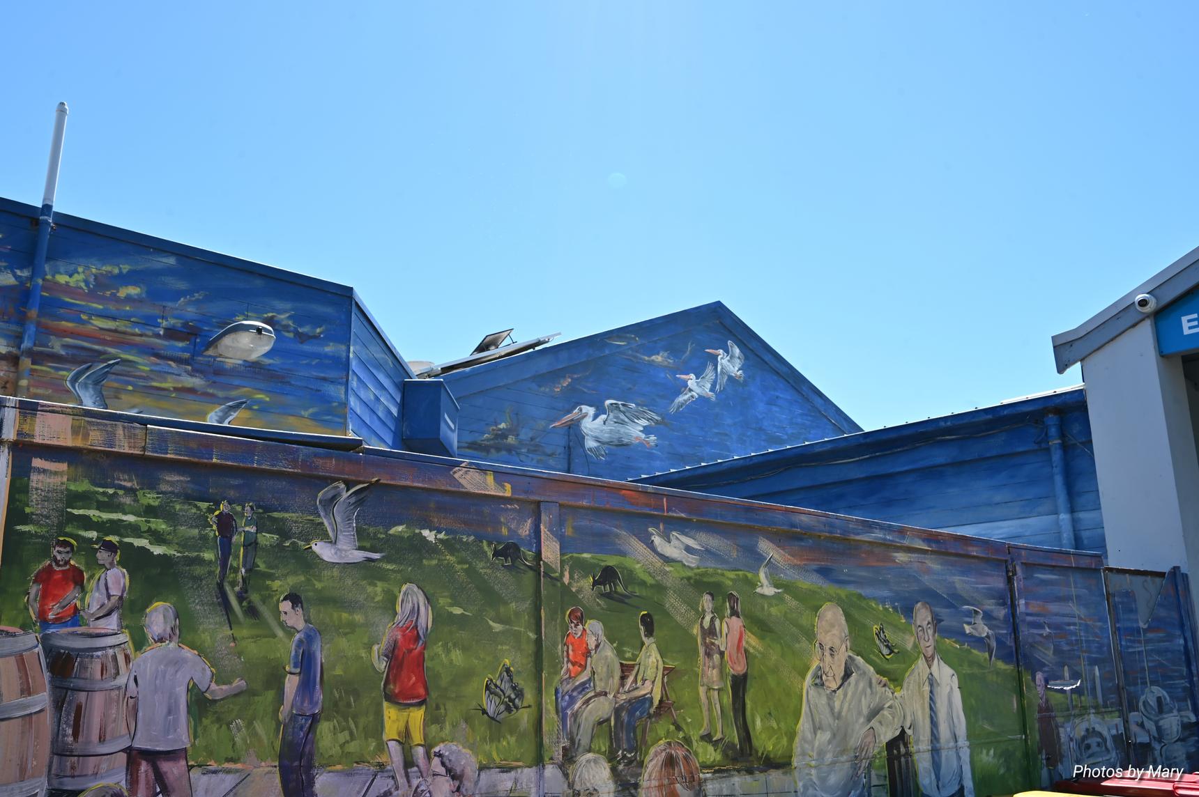 Murals are of various things seen in the Loch Sport area and are located on columns on the outside of the Lakeview Bar and Bistro.