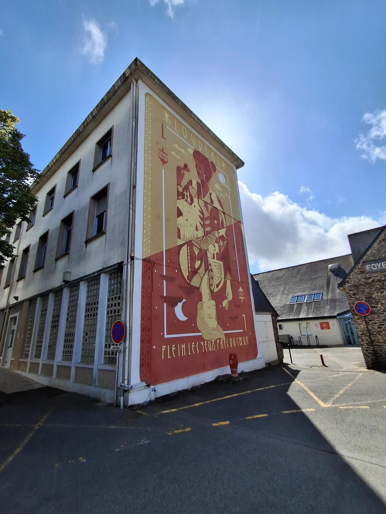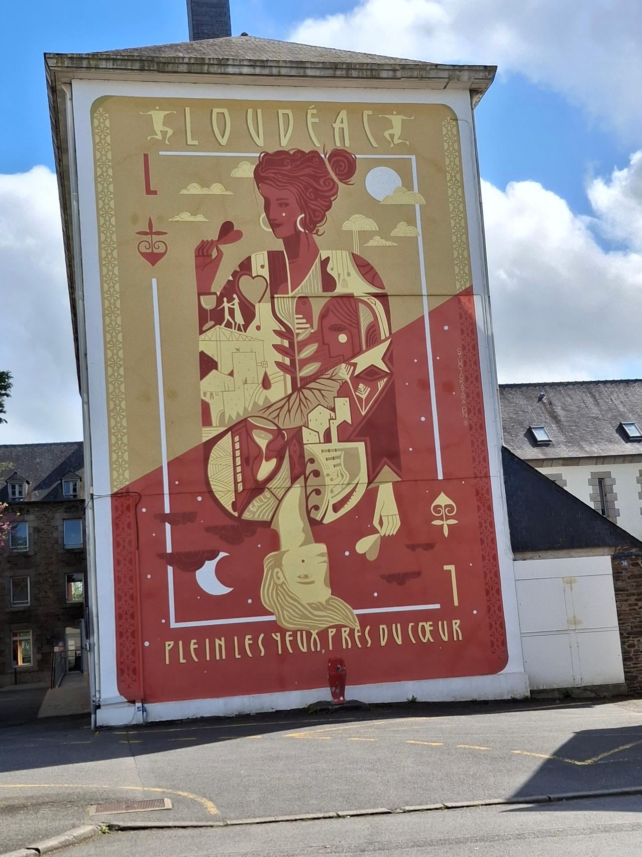 Cette nouvelle réalisation pour la ville de Loudéac propose un clin d’œil à une figure locale Jeanna Malivel. figure de proue du renouveau de l’expression artistique bretonne dans de nombreux domaines : Gravure sur bois, mobilier, faïence, tissus, broderie, vitraux, peinture, aquarelle et même dessin.