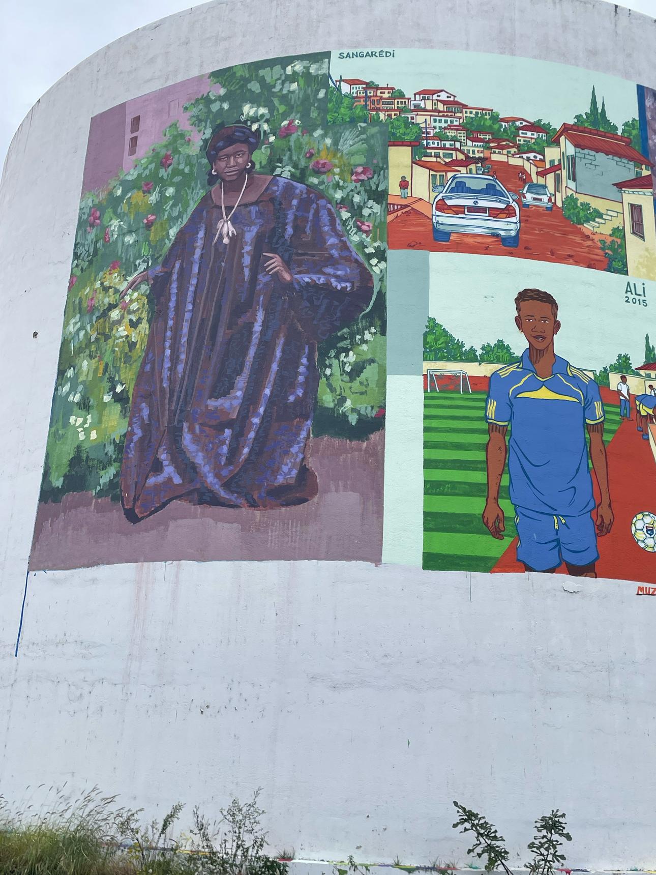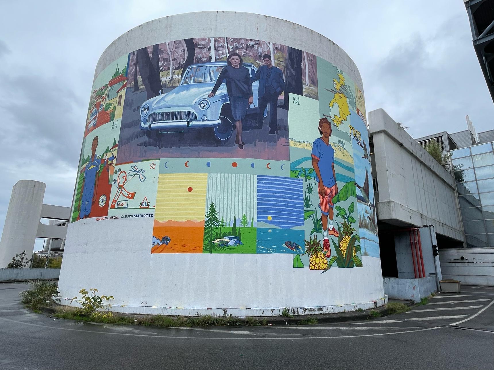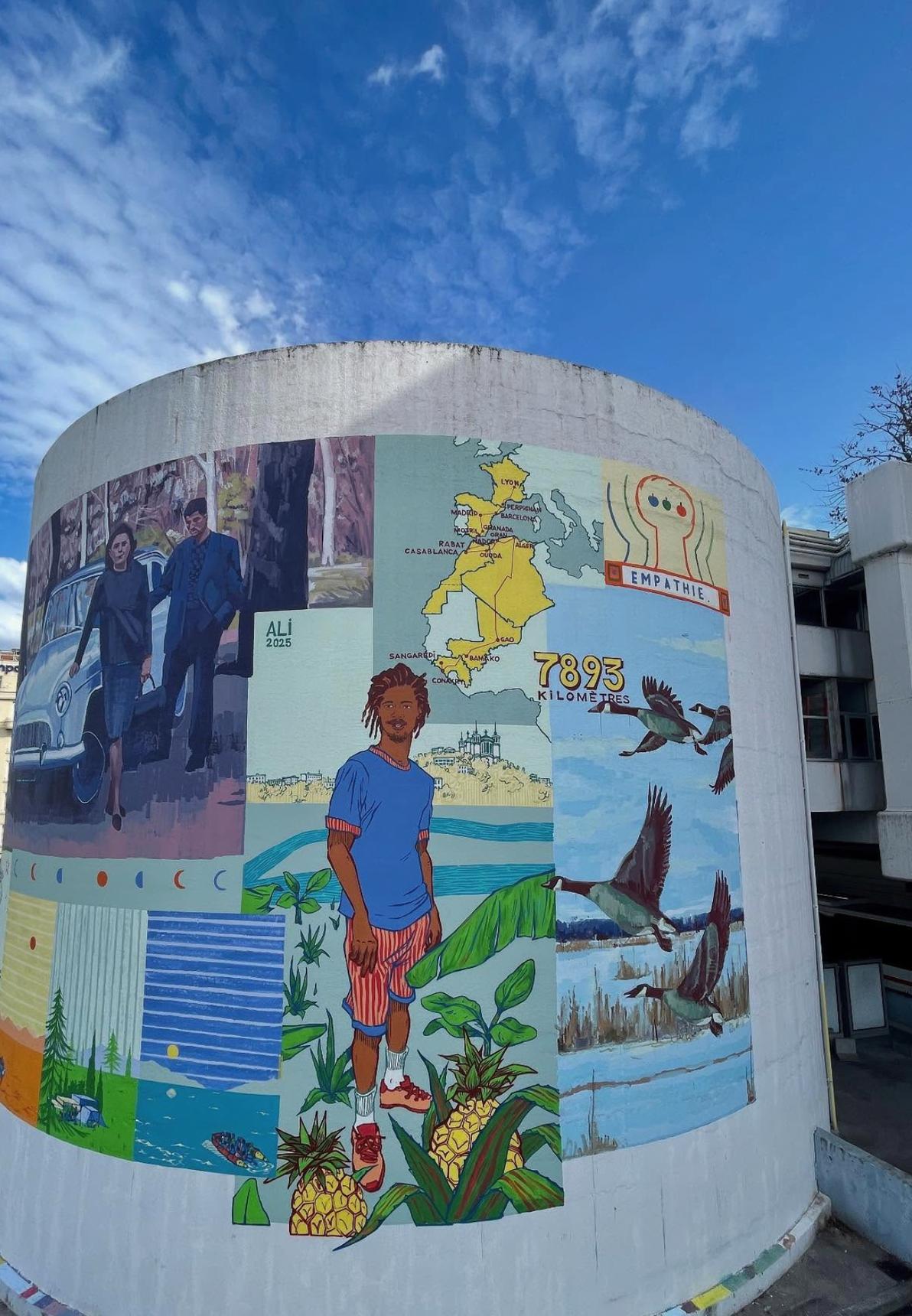 This mural highlights the diversity of chosen or forced migratory routes and the numerous difficulties encountered, both during the journey and once arrived at destination.