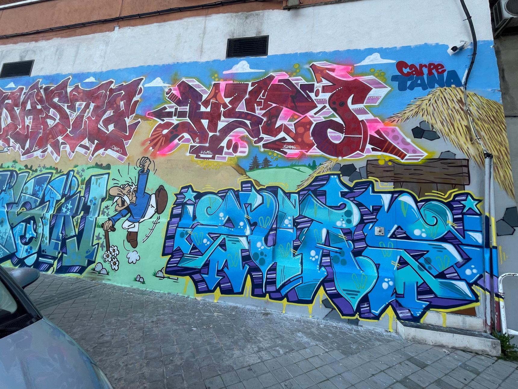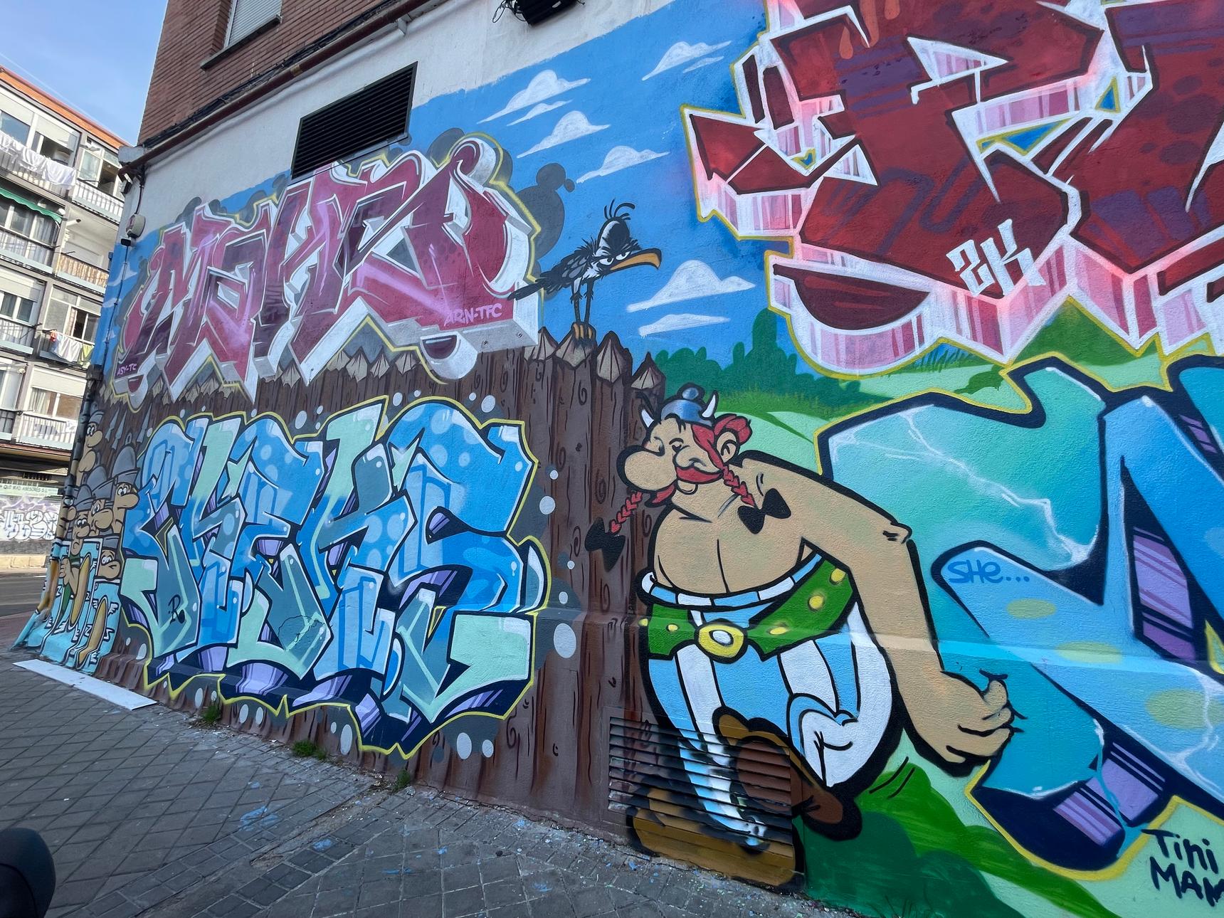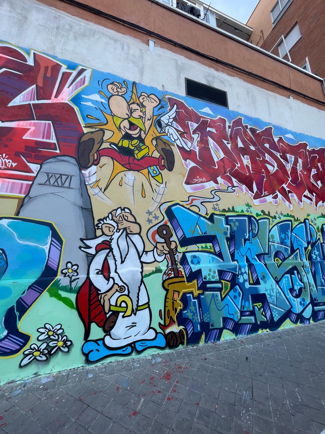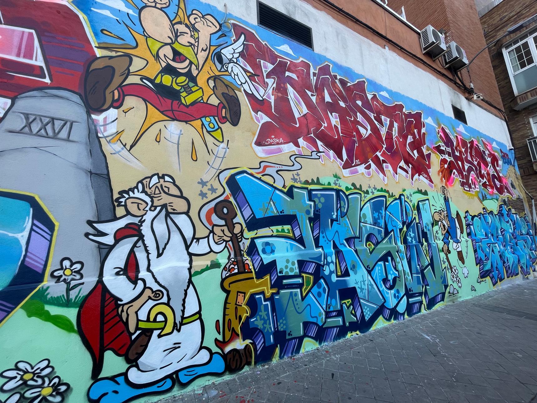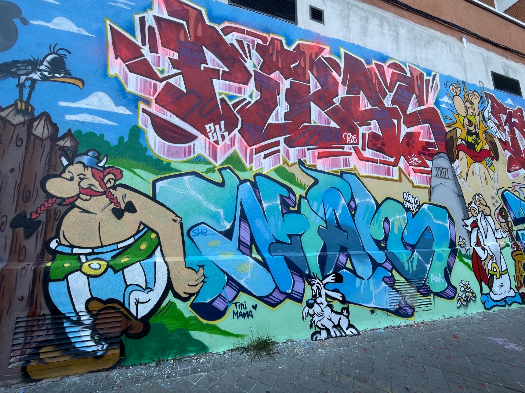 A mix of wild-style in tribute to the characters of Asterix the Gaul by René Goscinny and Albert Uderzo, including Asterix, Obelix, Panoramix, Idéfix et Oldiprix