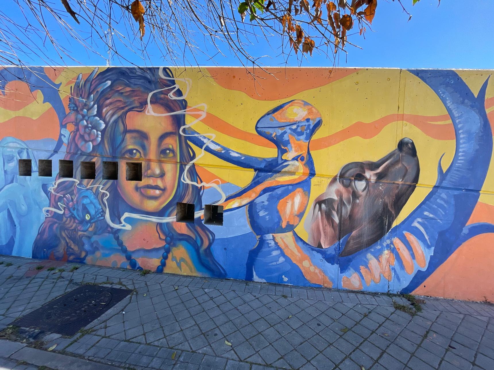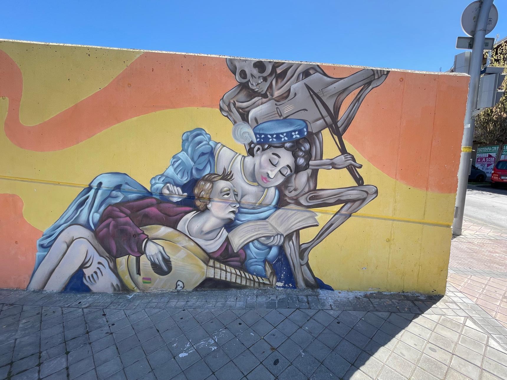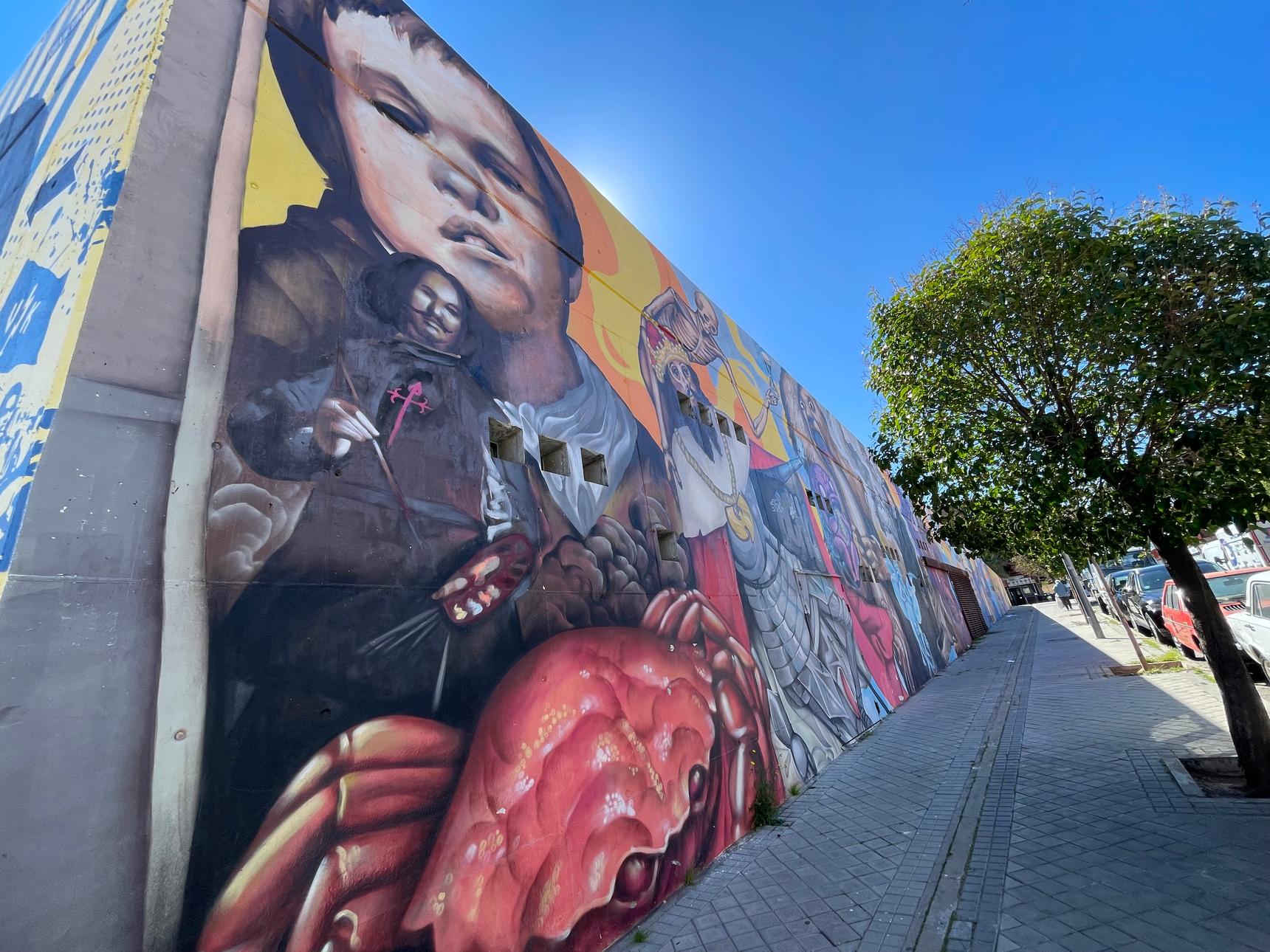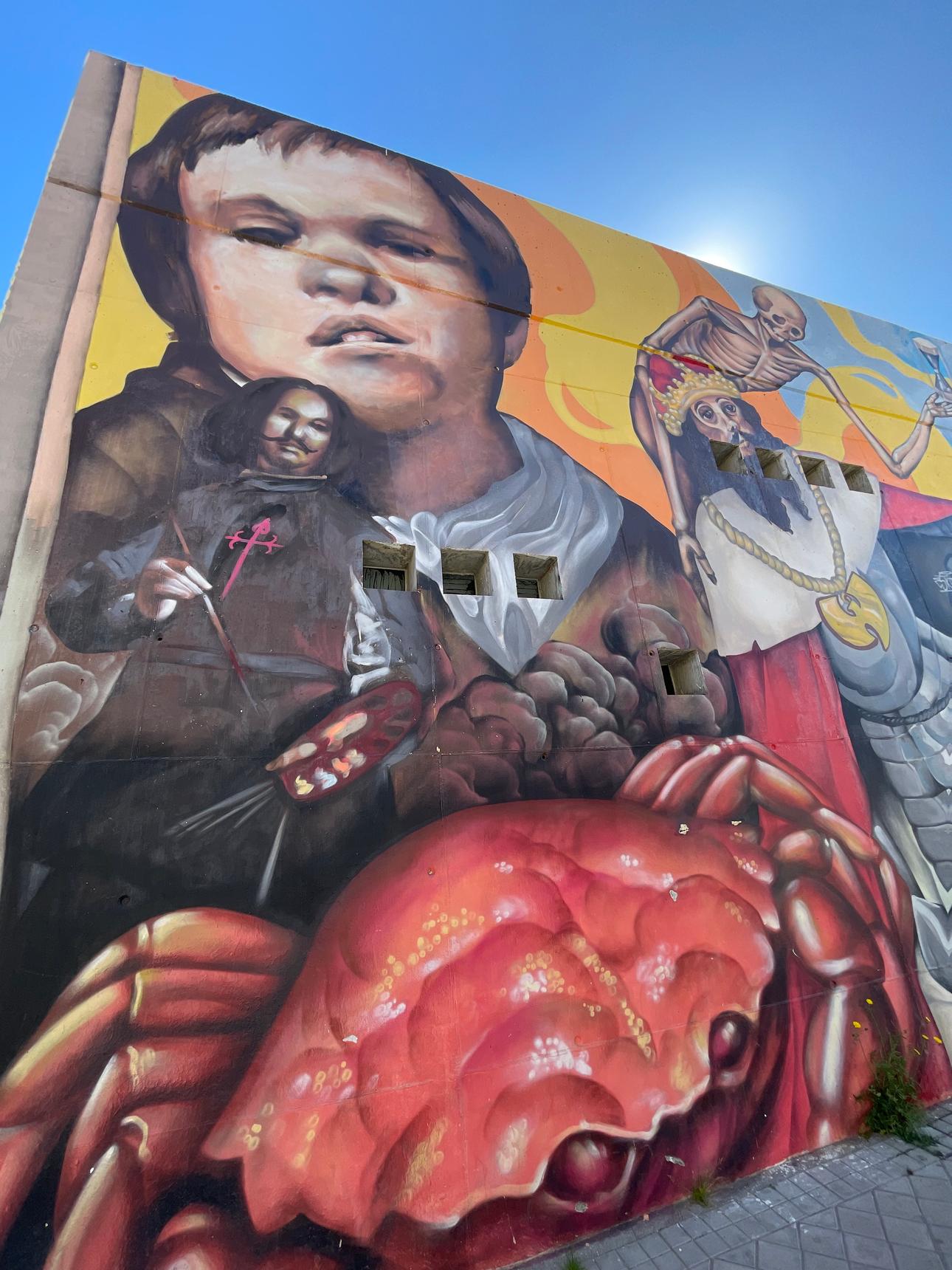 A mural in Vallecas reinterprets works from the Prado Museum, created by Oz Montania and young people at the El sitio de mi recreo Youth Center in Vallecas for the Flipaslab festival