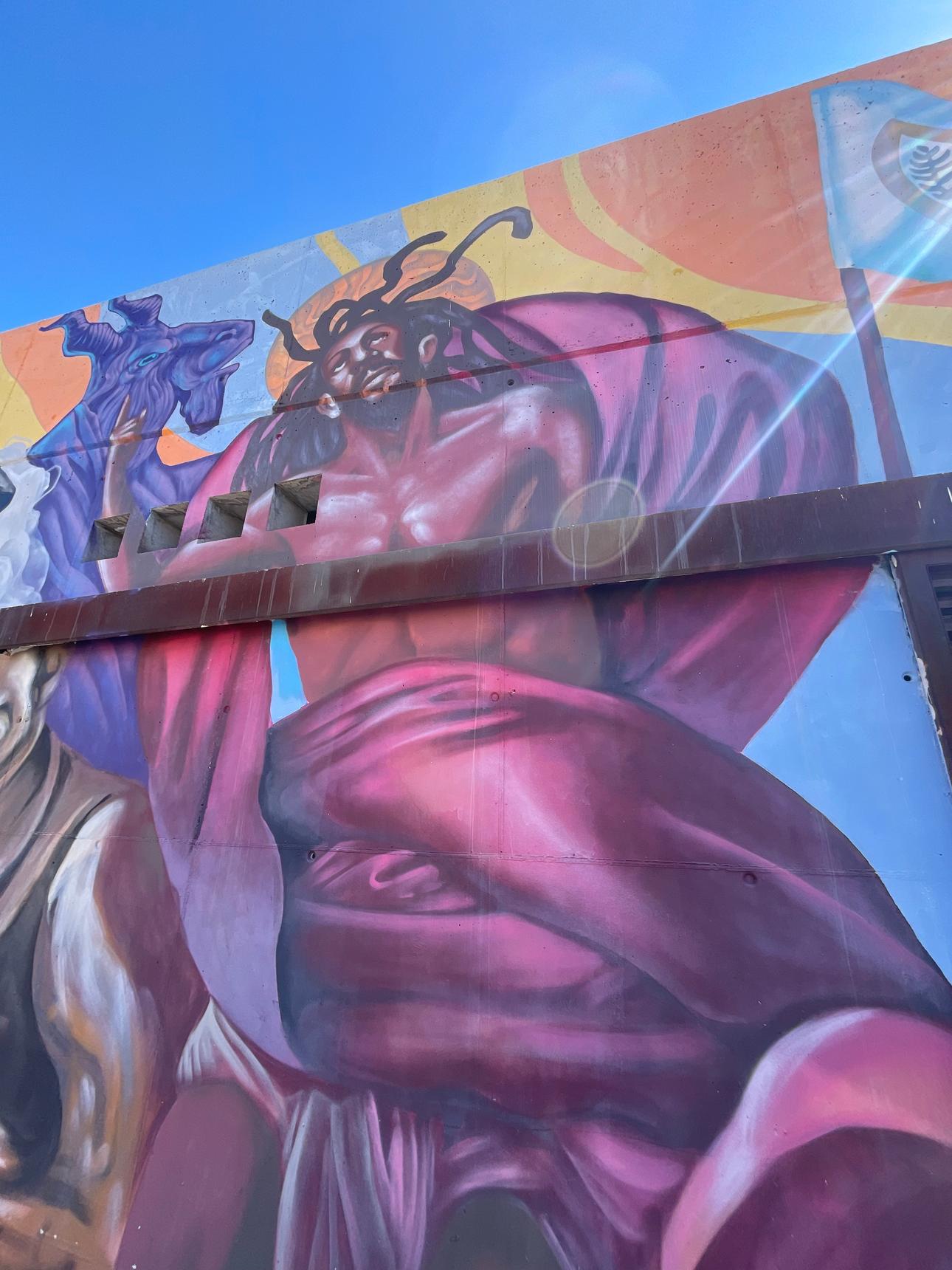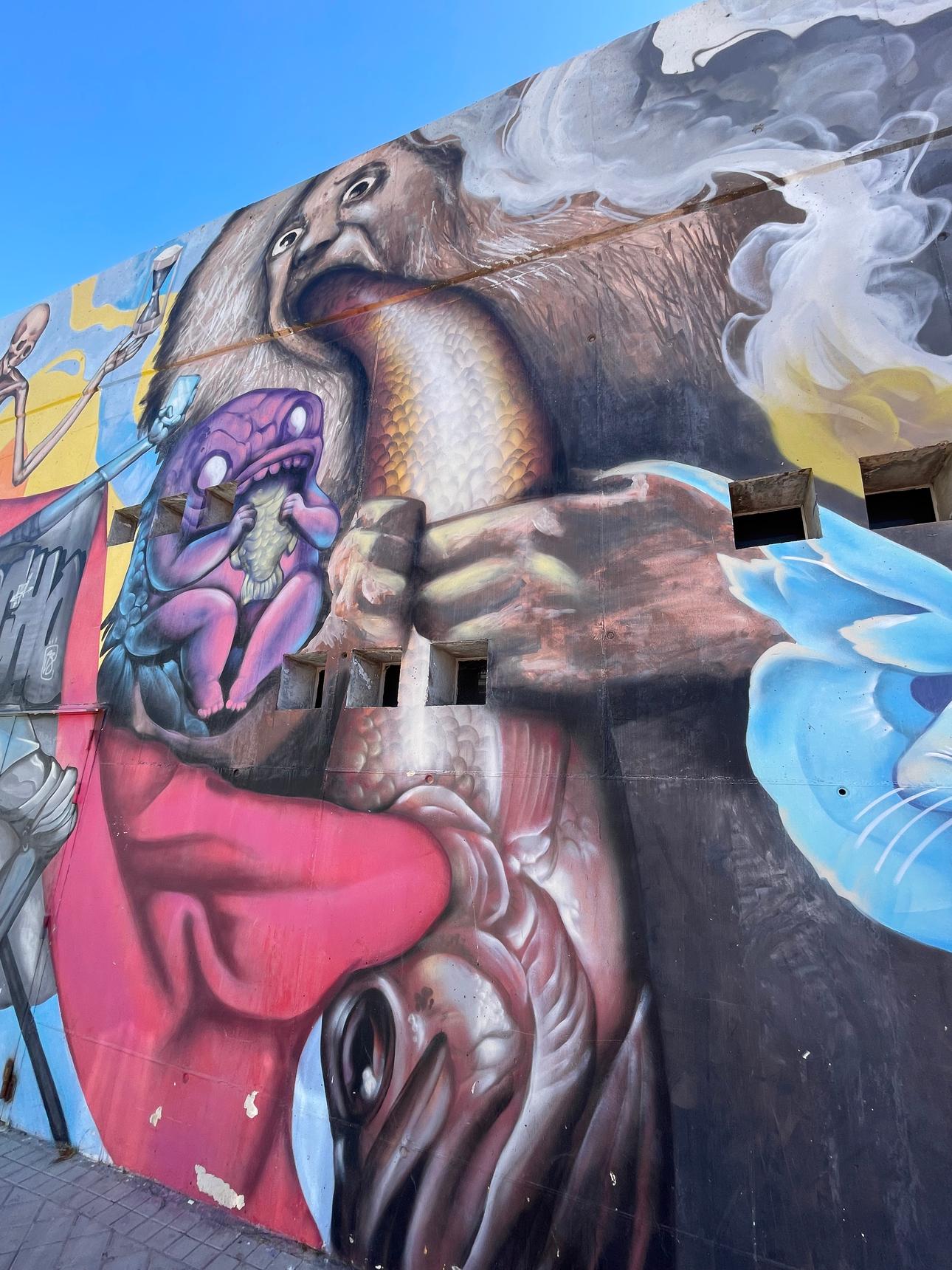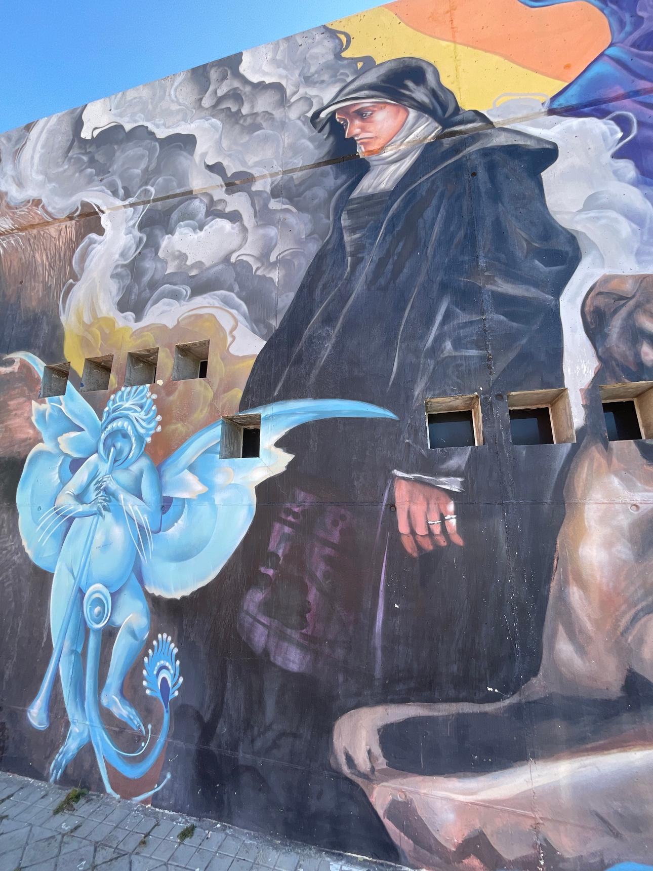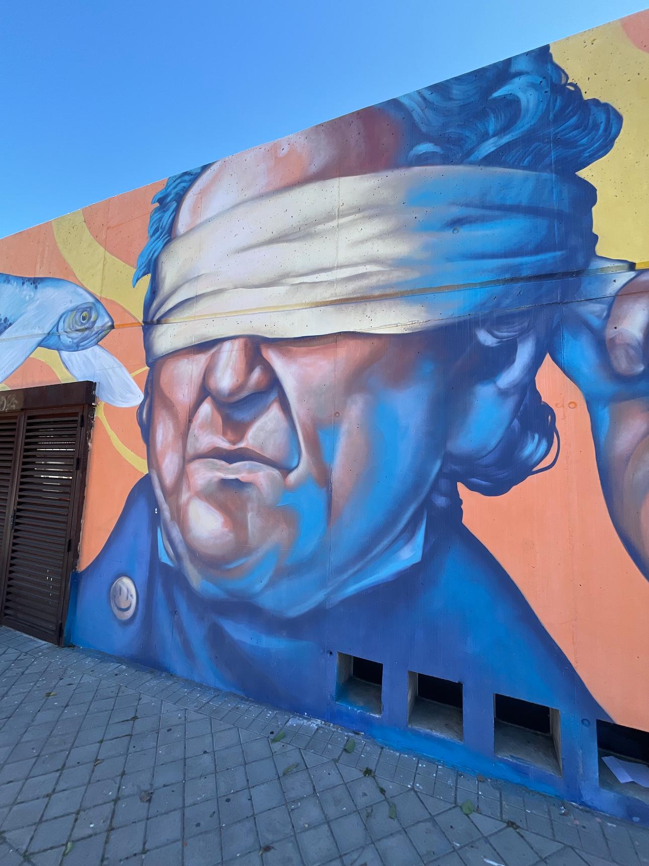 A mural in Vallecas reinterprets works from the Prado Museum, created by Oz Montania and young people at the El sitio de mi recreo Youth Center in Vallecas for the Flipaslab festival