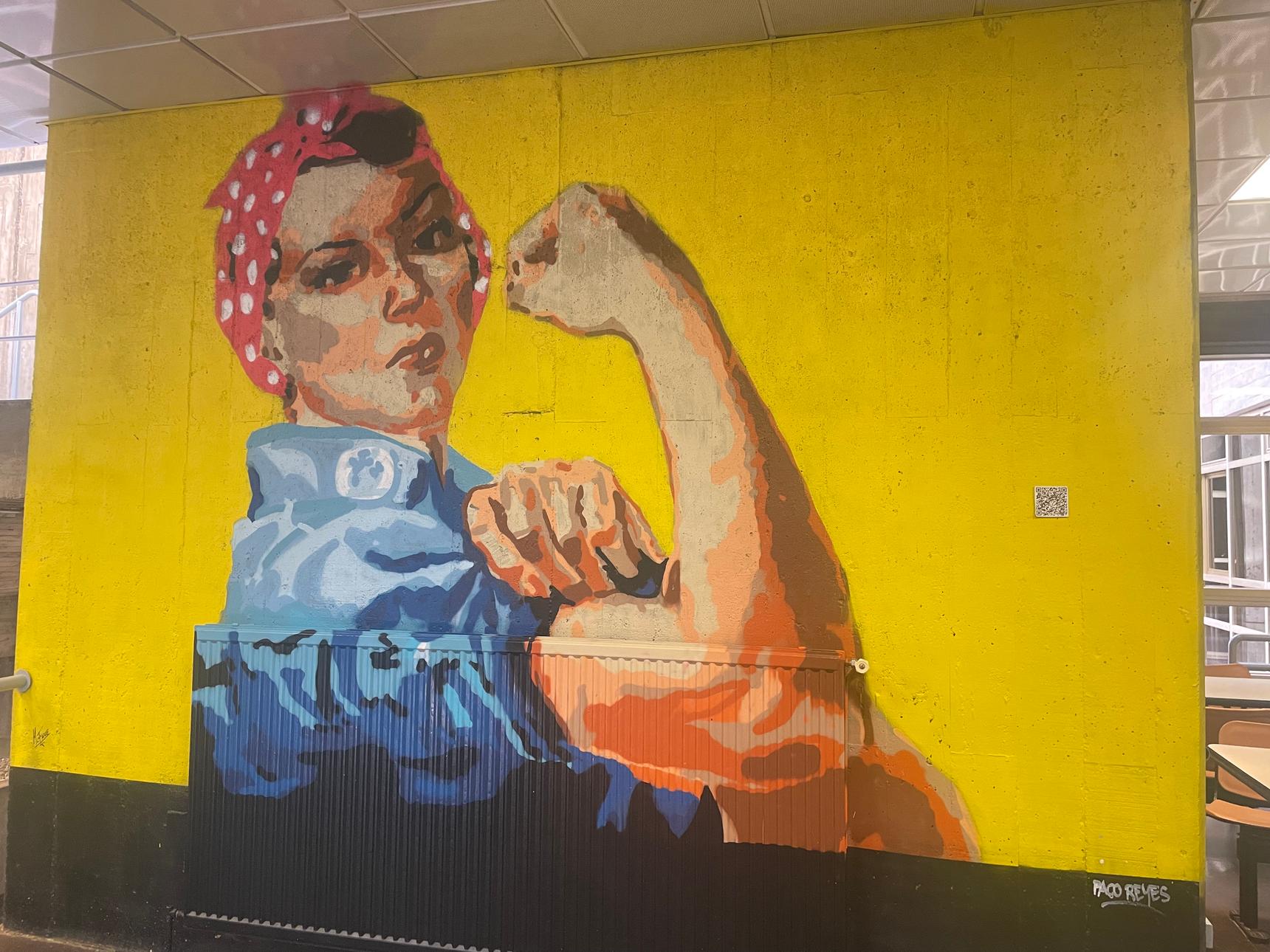 We Can Do It! is an American World War II propaganda poster created by J. Howard Miller in 1943 for the Westinghouse Electric company as an inspirational image to boost the morale of female workers. The creator was inspired by a photograph of a woman working in a factory riveting aircraft parts; after much confusion and debate, historians now believe the woman to be Naomi Parker Fraley. The poster is also famously known as 'Rosie the Riveter,' in reference to the song composed in 1942 by Redd Evans and John Jacob Loeb.