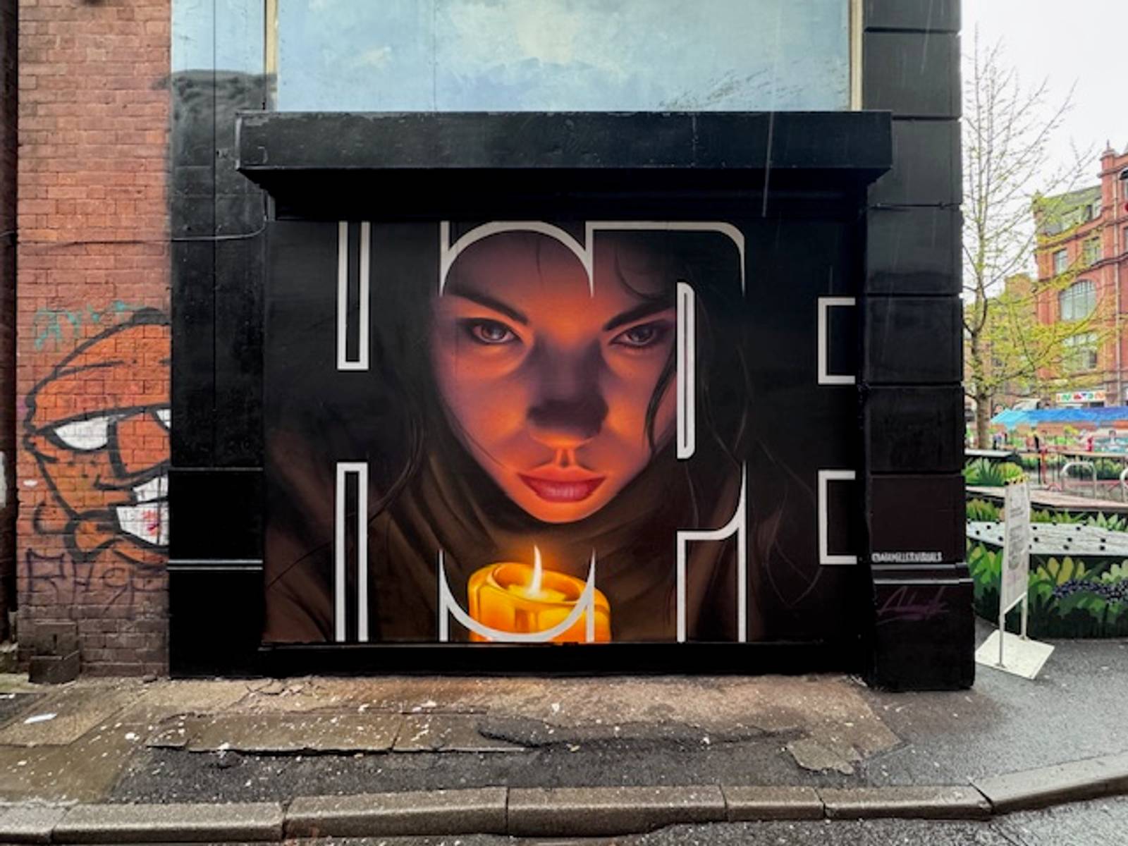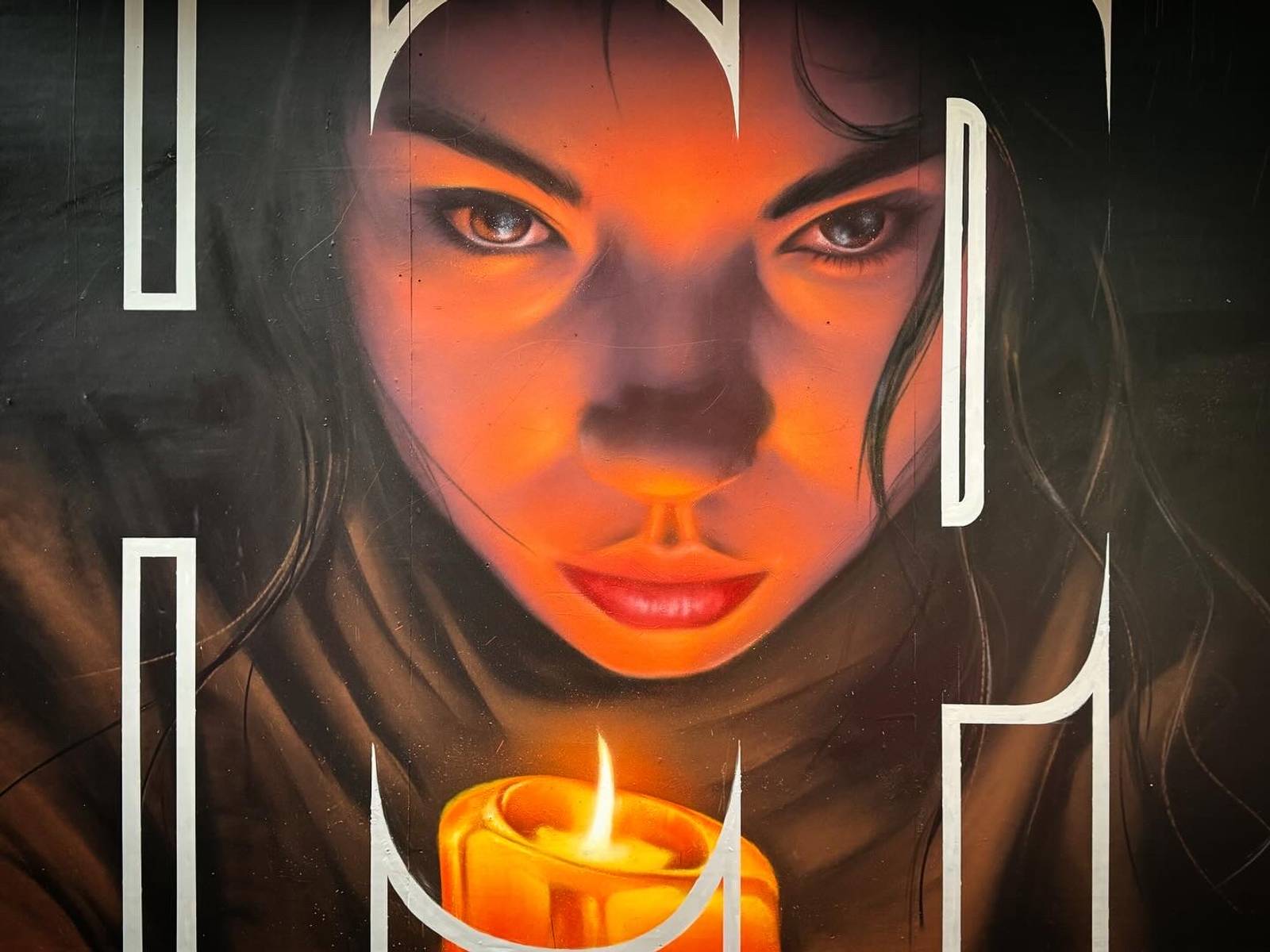Painted this piece to remind the people that even the small acts have the power to dispel darkness, and that we have to keep the the flame of hope burning no matter how dark and fractured everything around may seem. The piece invites the viewer to reflect on vulnerability, strength, resilience and the fact that each one of us is the keeper of the light. Within.
