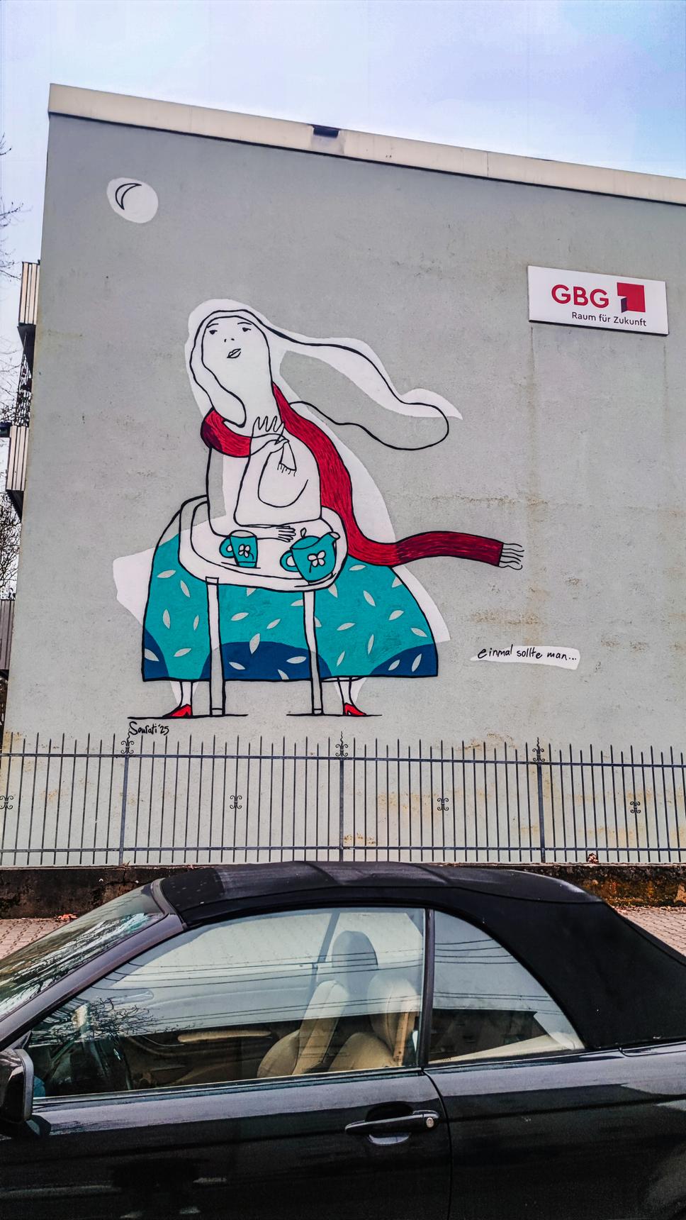 As part of the project “Right here, Rheinau,” artists Christina Laube and Mehrdad Zaeri—working together as DUO SOURATI—are transforming building façades in Mannheim’s Rheinau district into striking murals. With delicate line work, subtle colors, and great narrative power, they bring poetic snapshots to the walls—small stories from everyday life that invite viewers to pause, reflect, or simply feel joy. The art can be experienced at any time—on foot, by bike, or by tram. Already seven so-called murals enrich the neighborhood, with further works—both small and large—currently in planning.