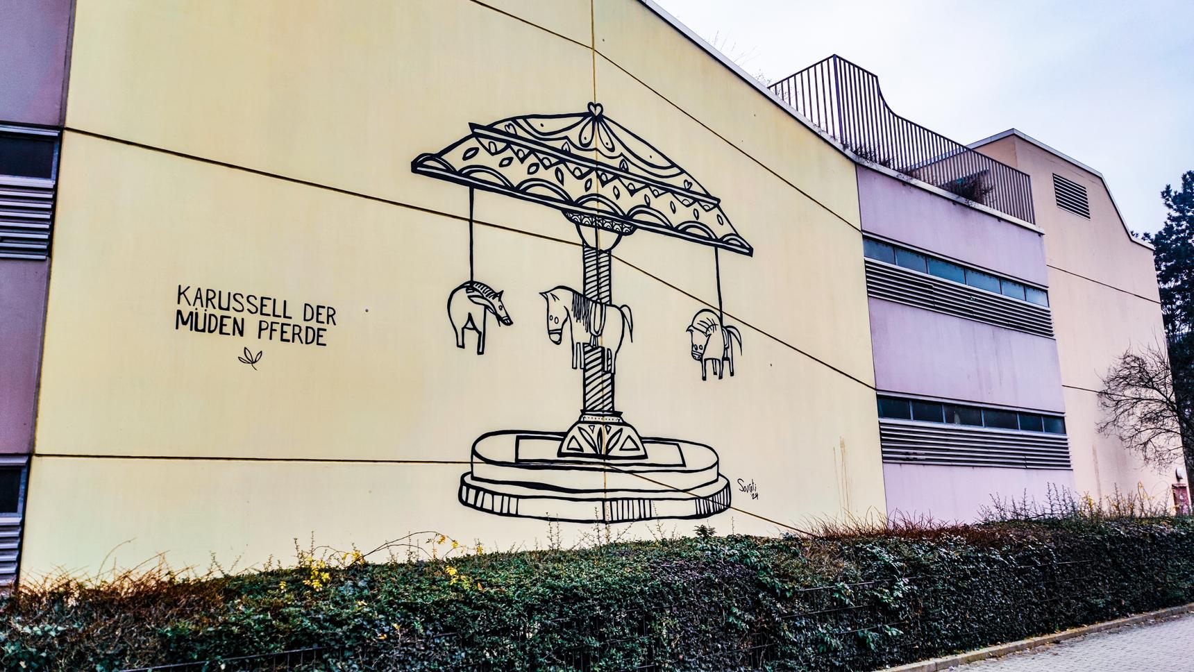As part of the project “Right here, Rheinau,” artists Christina Laube and Mehrdad Zaeri—working together as DUO SOURATI—are transforming building façades in Mannheim’s Rheinau district into striking murals. With delicate line work, subtle colors, and great narrative power, they bring poetic snapshots to the walls—small stories from everyday life that invite viewers to pause, reflect, or simply feel joy. The art can be experienced at any time—on foot, by bike, or by tram. Already seven so-called murals enrich the neighborhood, with further works—both small and large—currently in planning.