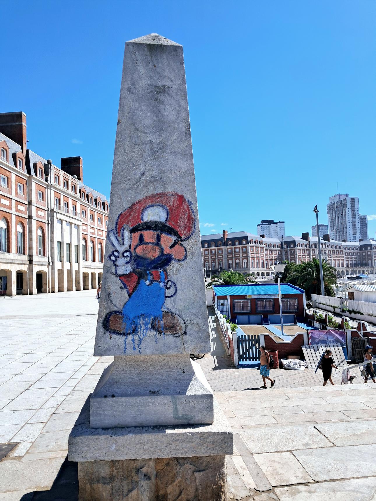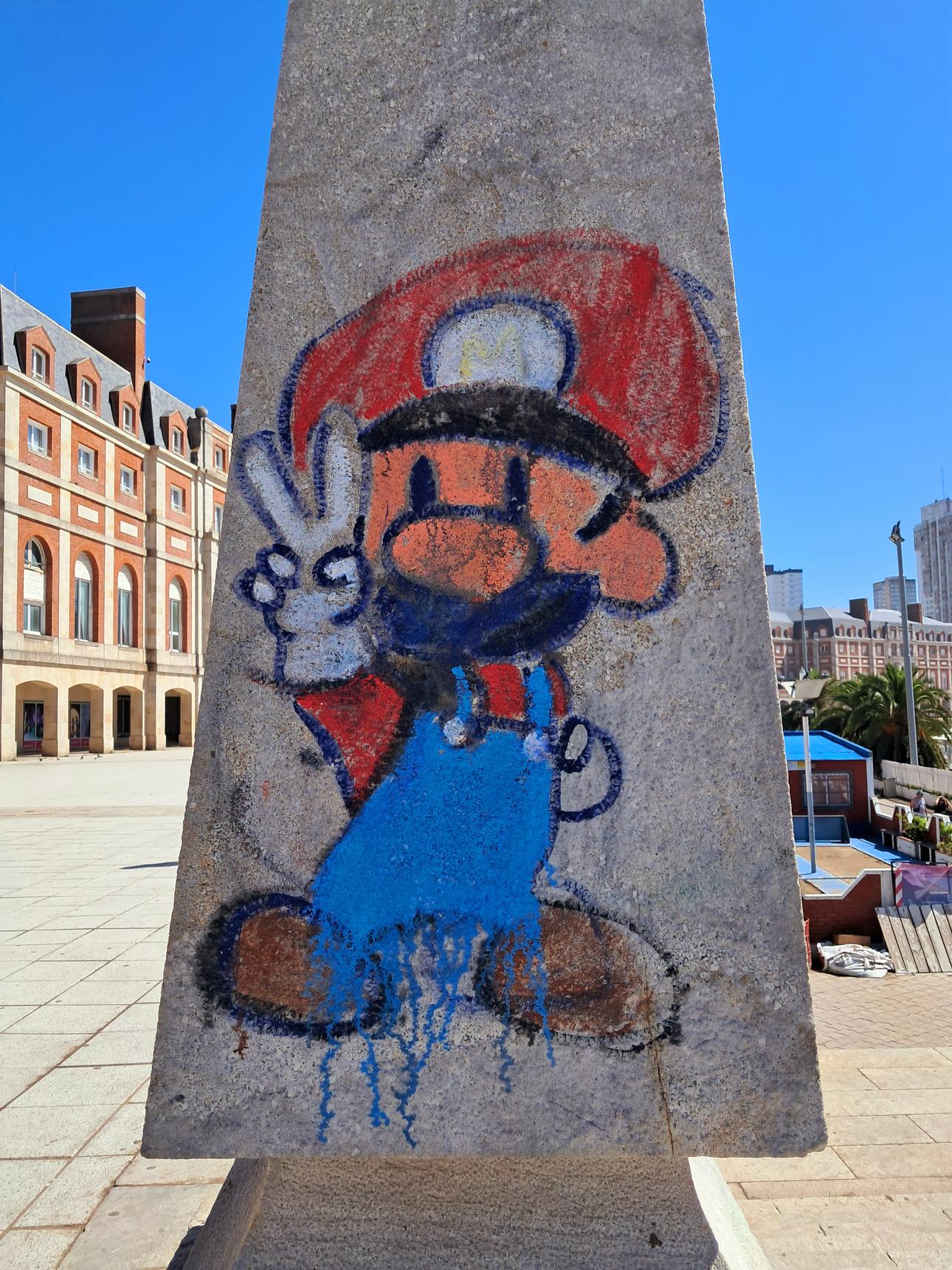 Realizado sobre una de las caras de un monolito en la Rambla.