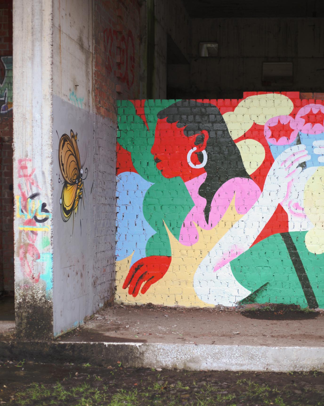 Mural for Vrijbroekpark in Mechelen, that serves as a celebration of their hotel ruin’s first anniversary, a once abandoned site that has transformed into a cultural place.