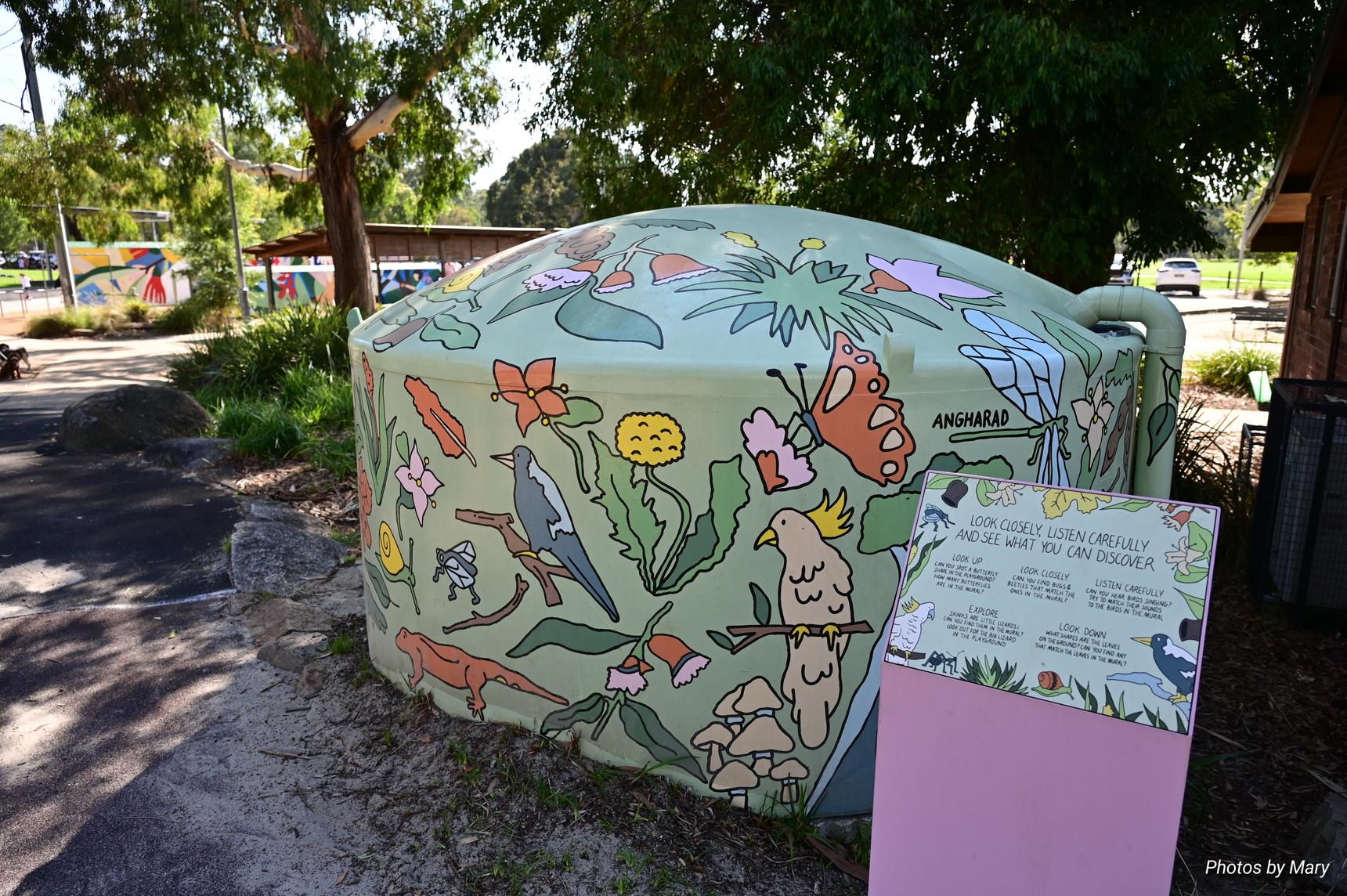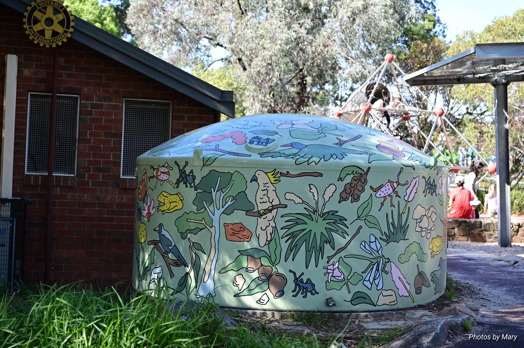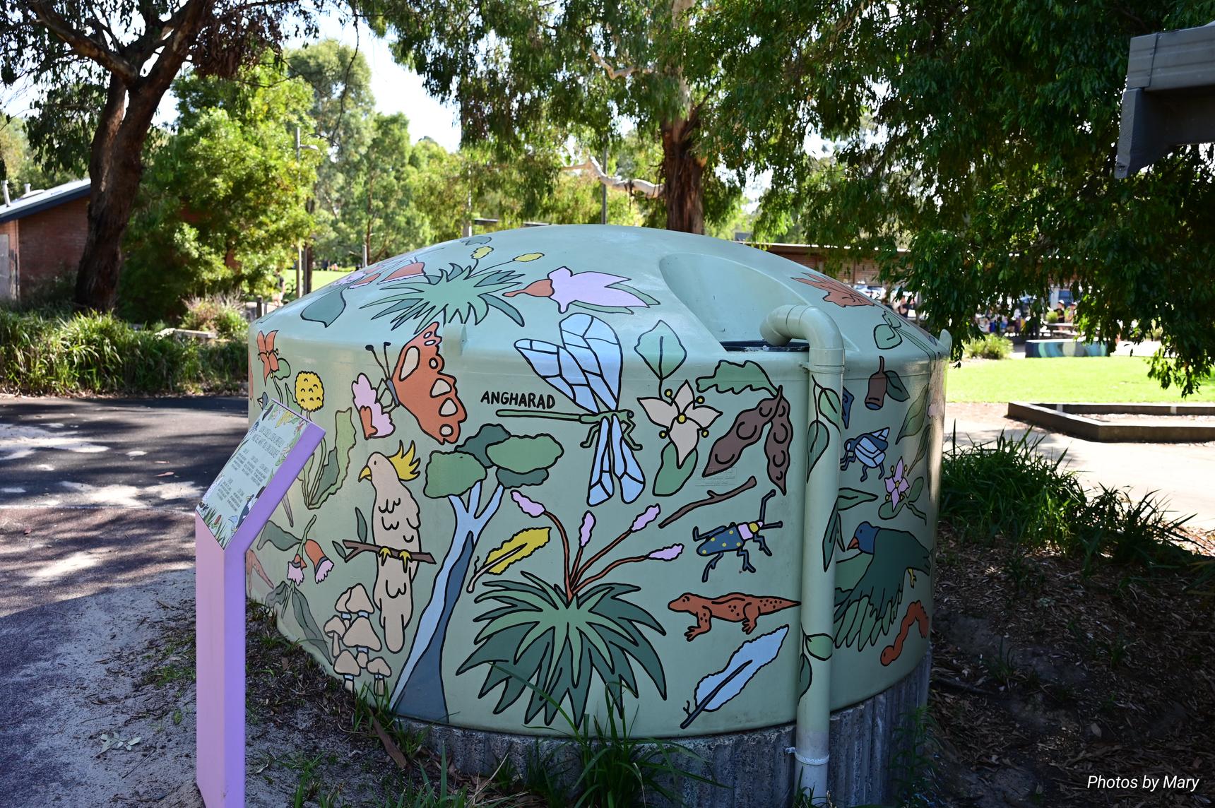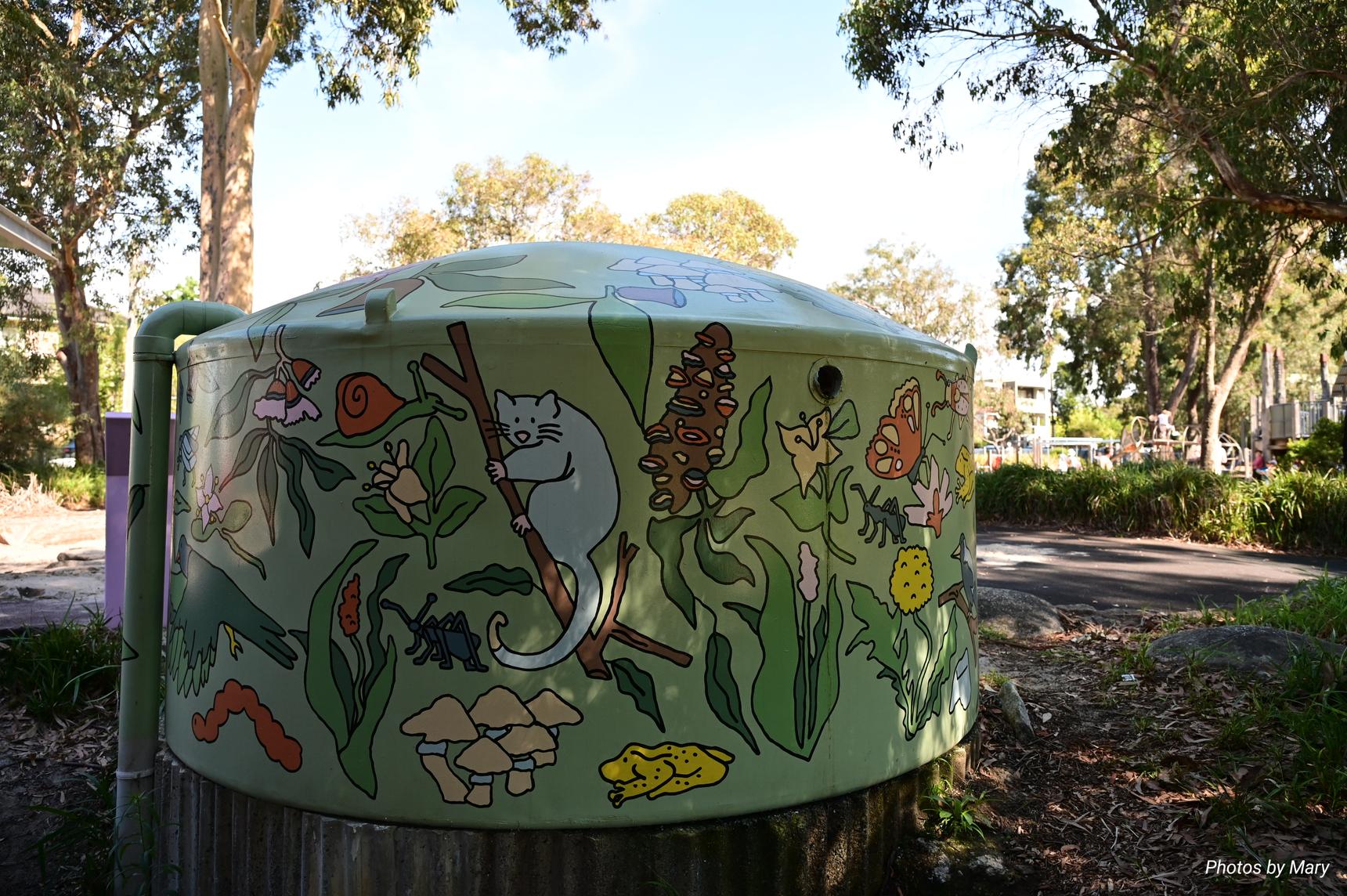 Painted water tank - flora and fauna