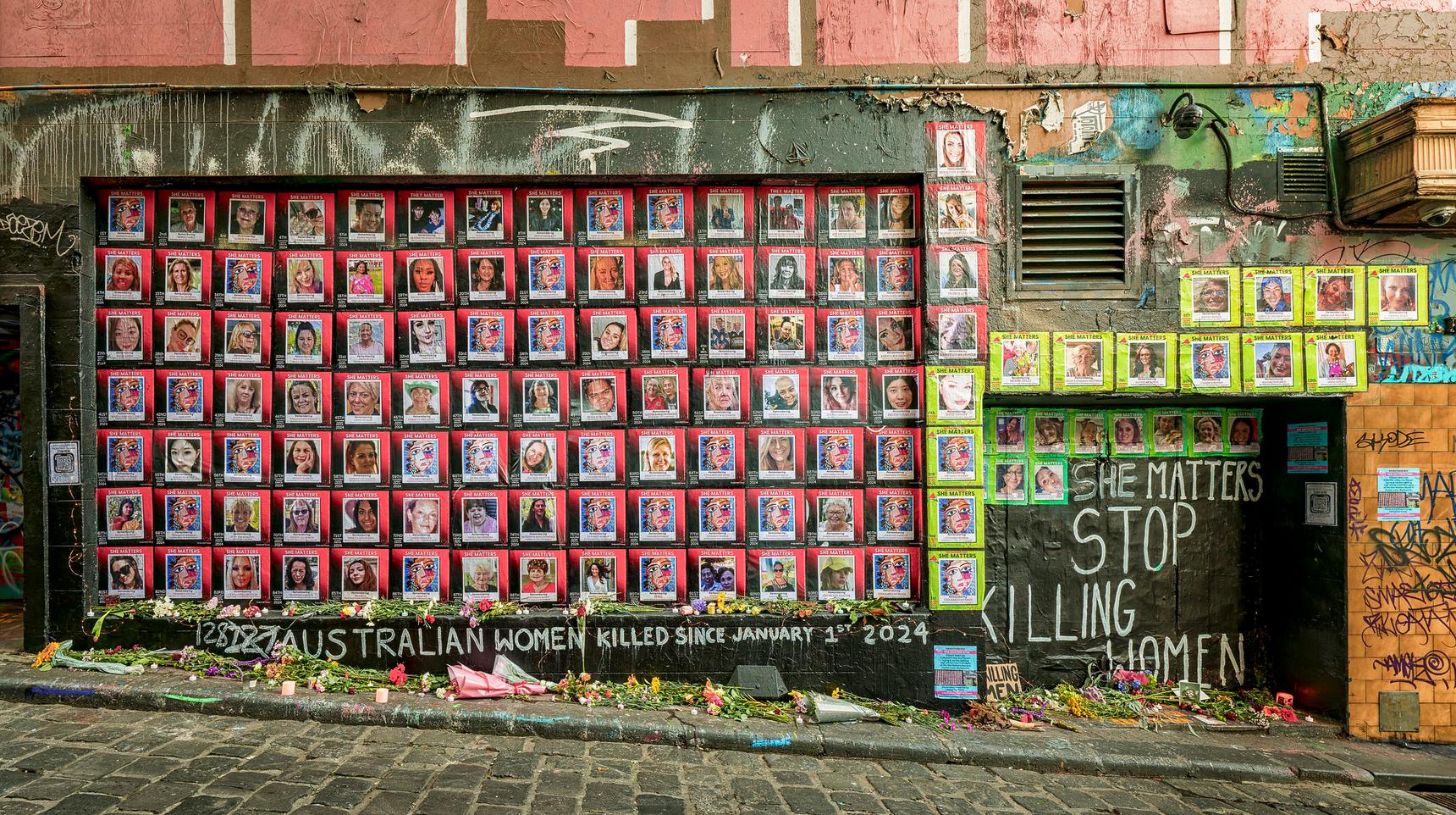 Matt Adnate’s “Marlu” and a couple of other artworks that are “up high” are a saving grace as is Melbourne’s most important mural, the emotional tribute to women murdered in Australia, “Stop Killing Women” by Sherele Moody that has lasted over a year (with a few repair jobs).