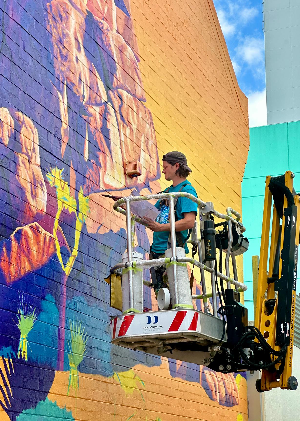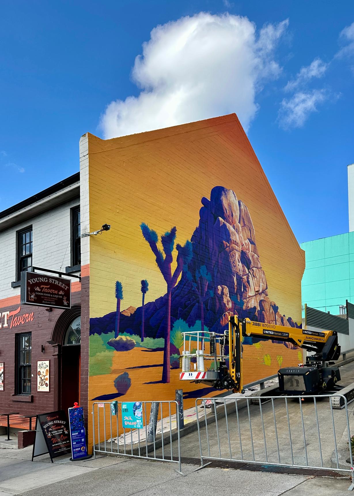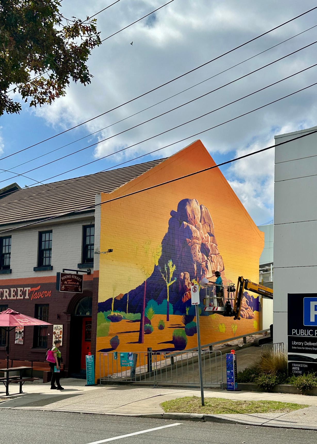 Jack Rowland’s contribution to 2026 edition of Frankston Street Art Festival. This wall has been inspired by landscapes from US’ Joshua Tree National Park.
