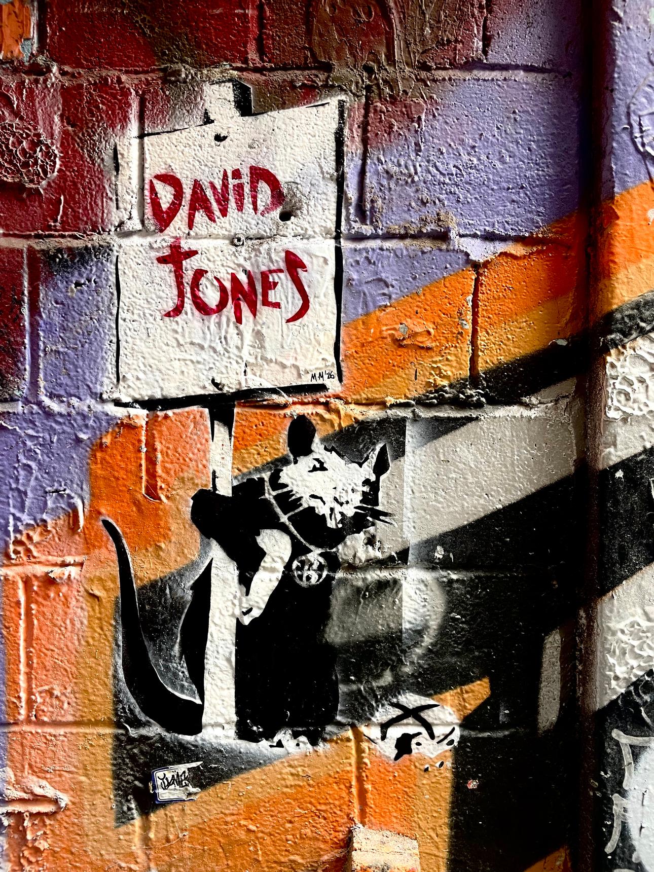 An Easter-themed artwork of a rat feasting on hot cross buns while exposing the alias of Banksy.