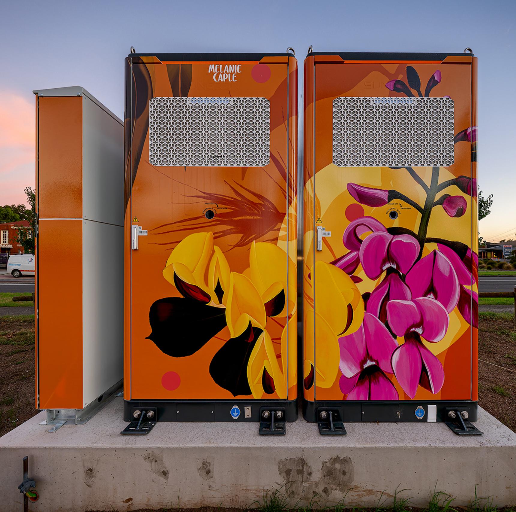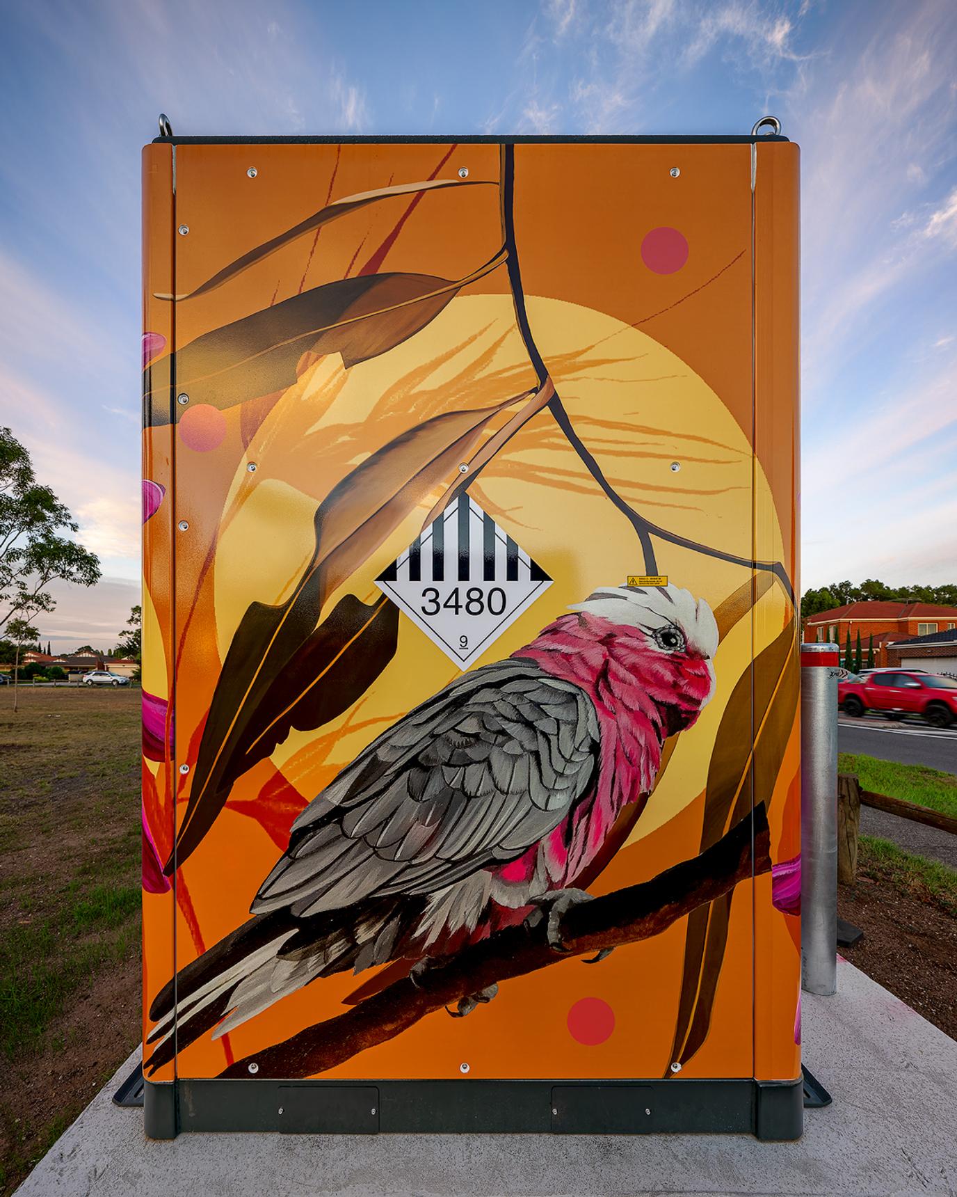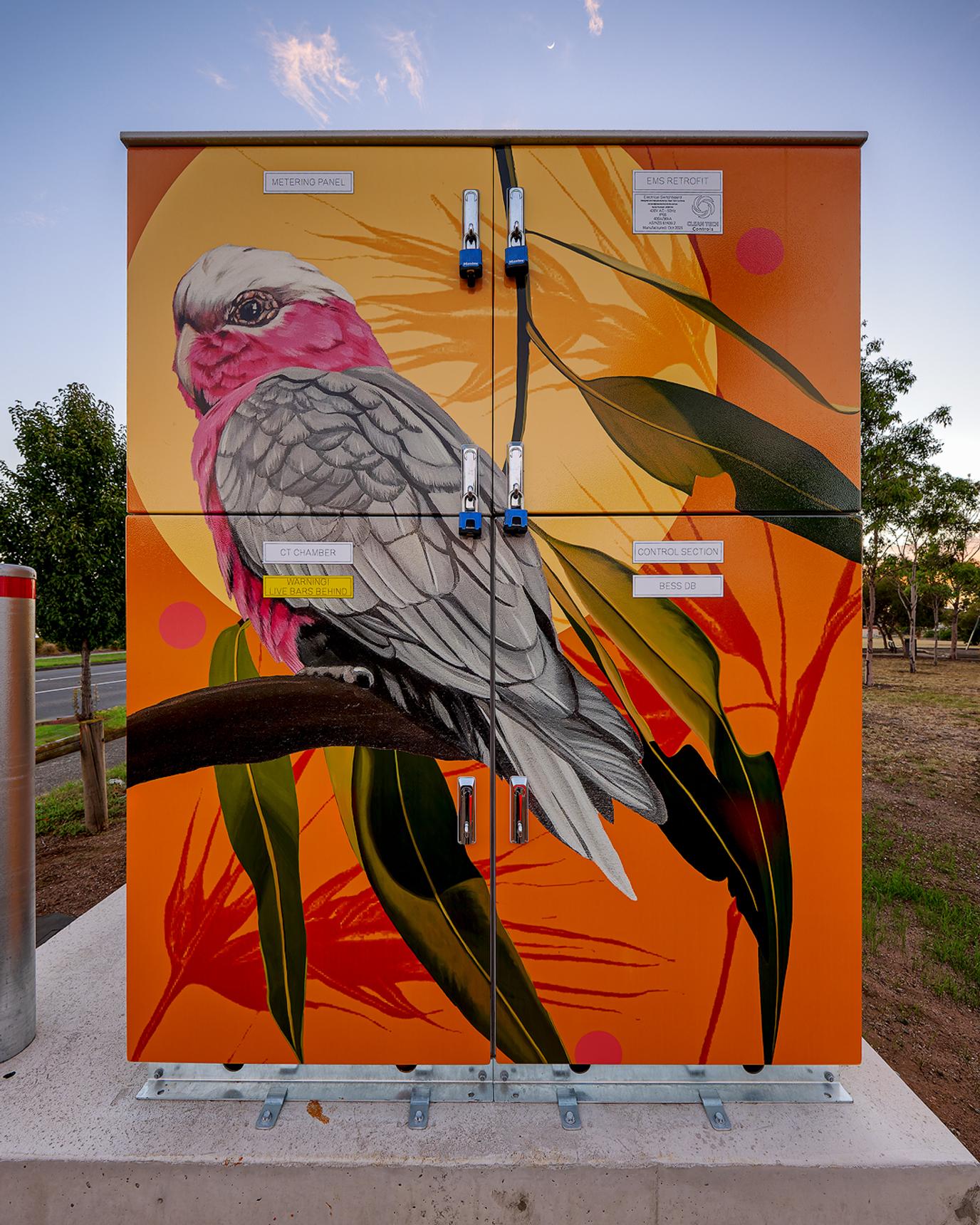 Beautiful Galahs and flora decorate this community battery in Sunshine.Gorgeous art as always from Melanie.
