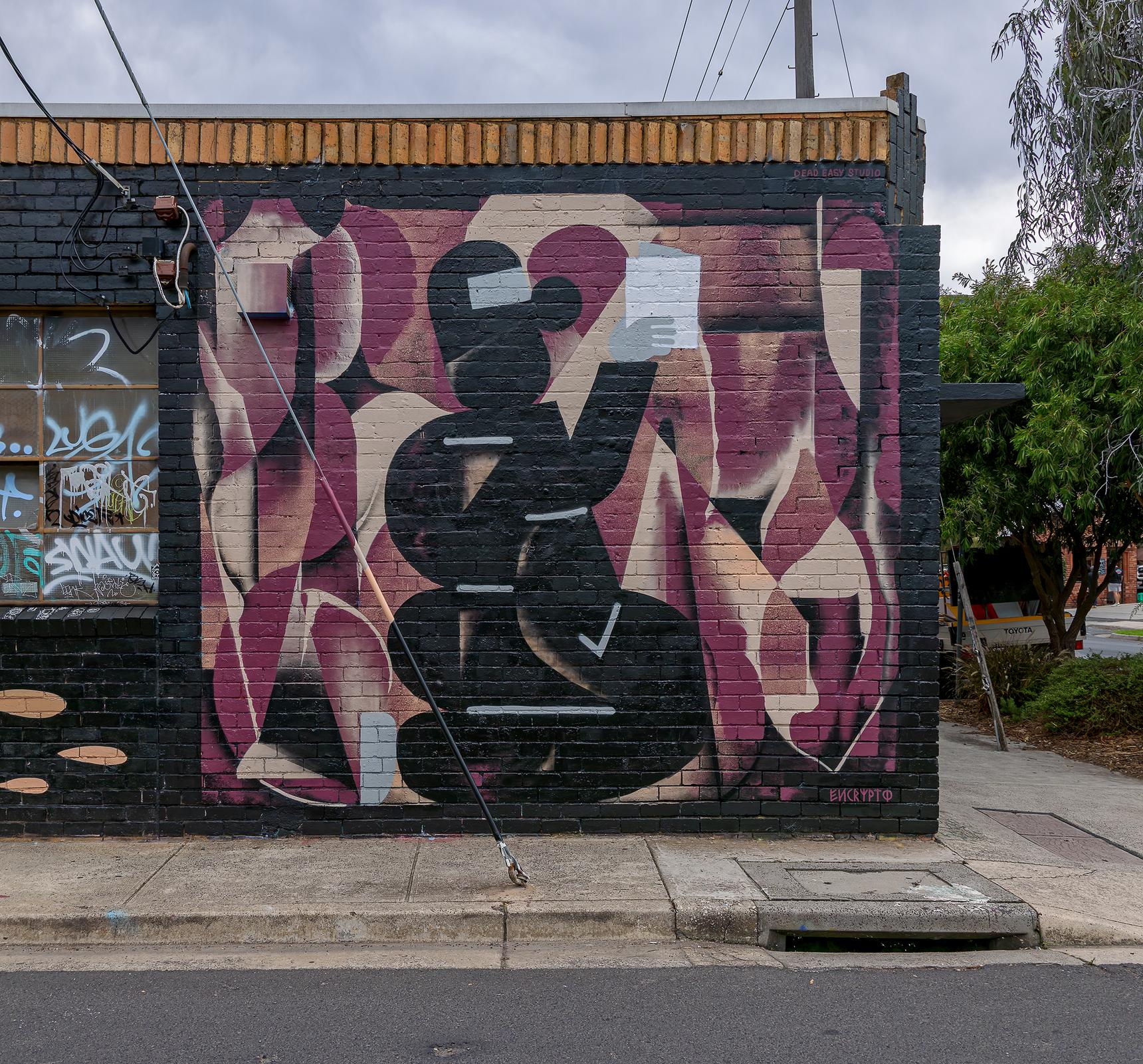 A collaboration on the wall of Dead Easy Studio in Brunswick, the wall faces Leslie St.