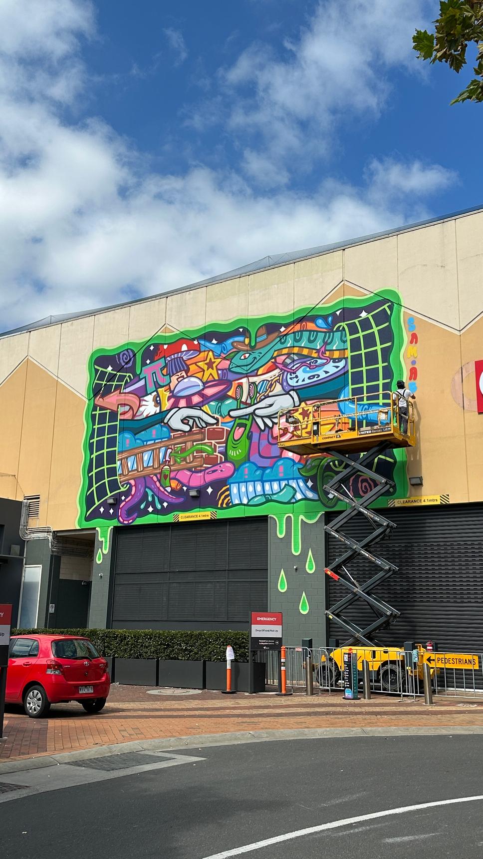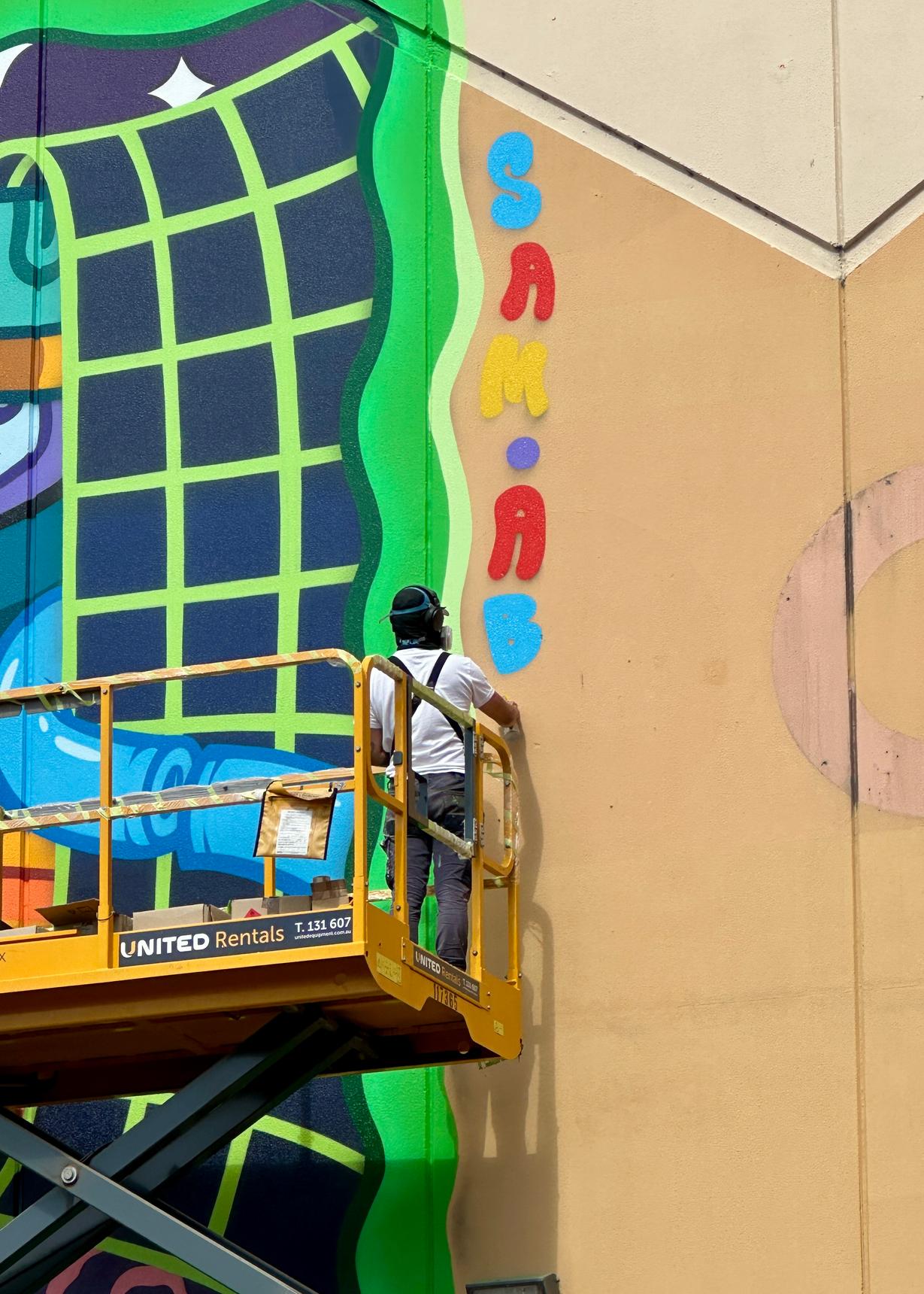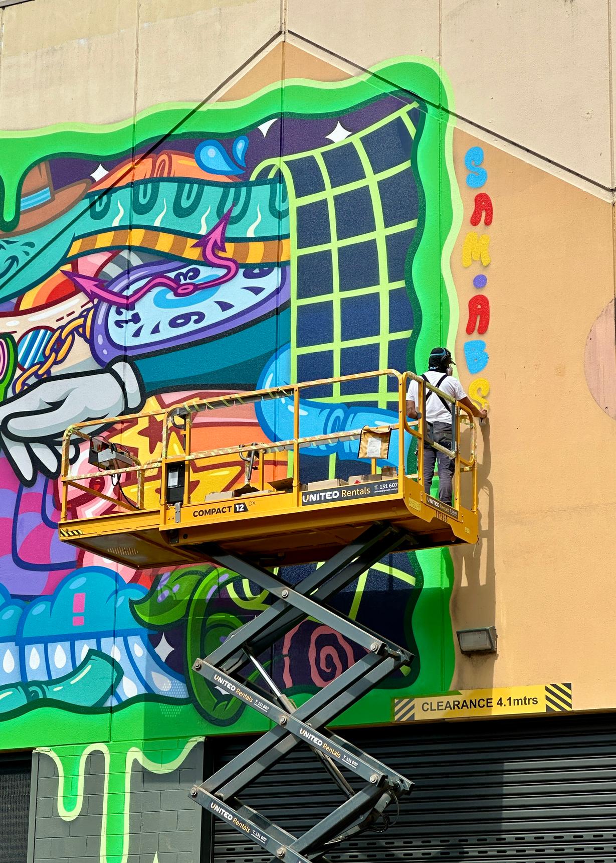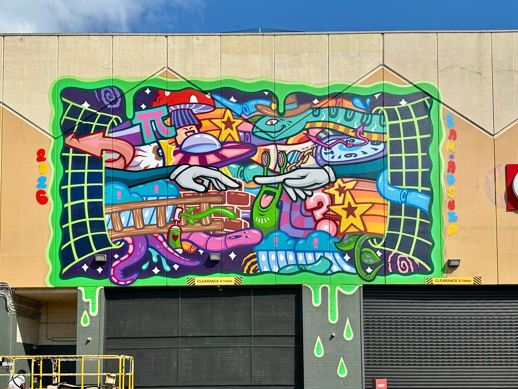 First (almost) completed wall of this year’s Frankston Street Art Festival by Sydney based artist Sam
