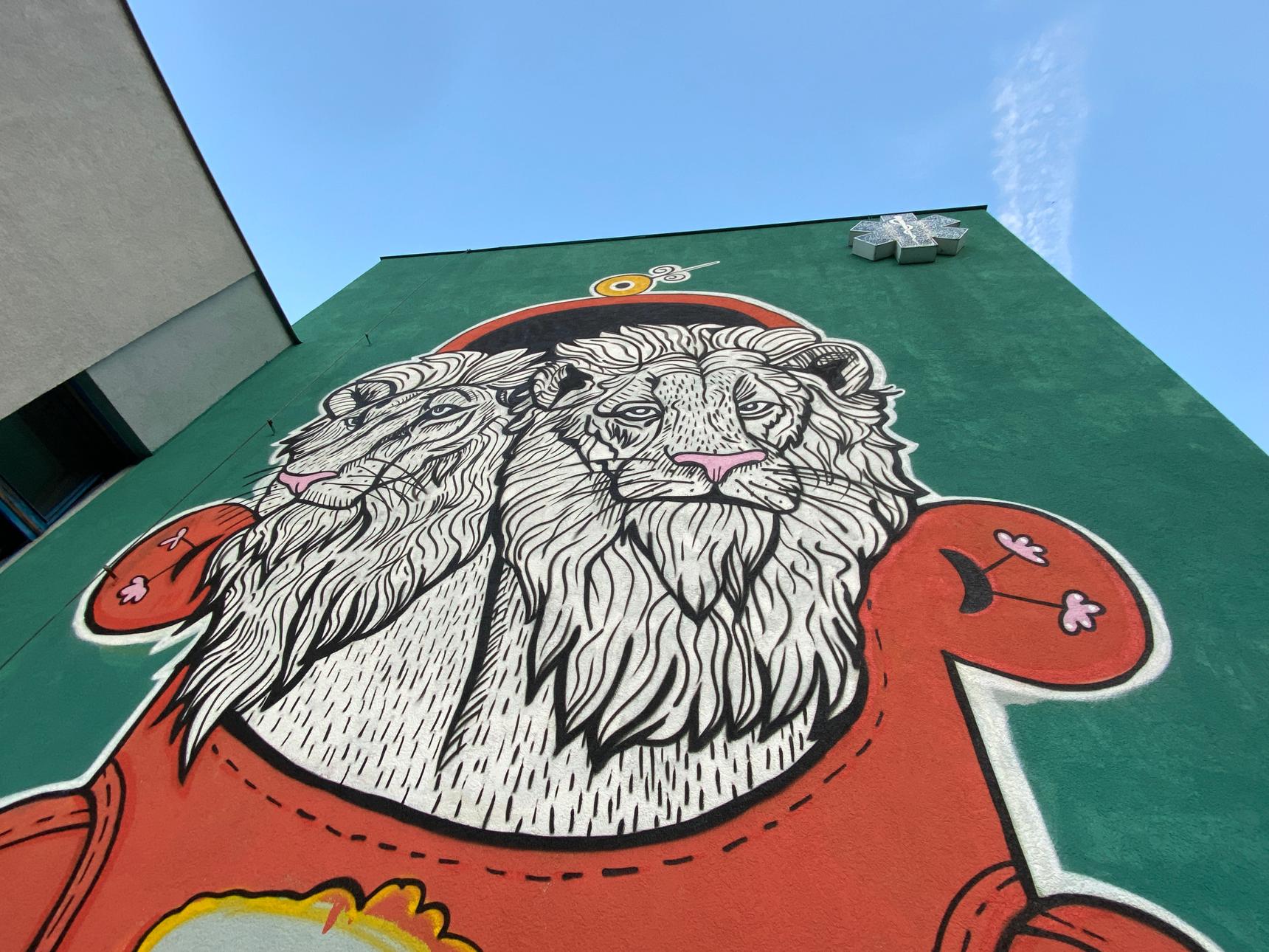 The mural is dedicated to Masho's friend, Ruska Bariashvili. As she says: "Now you are two lions in one - bravest, strongest and fiercest you have ever been".