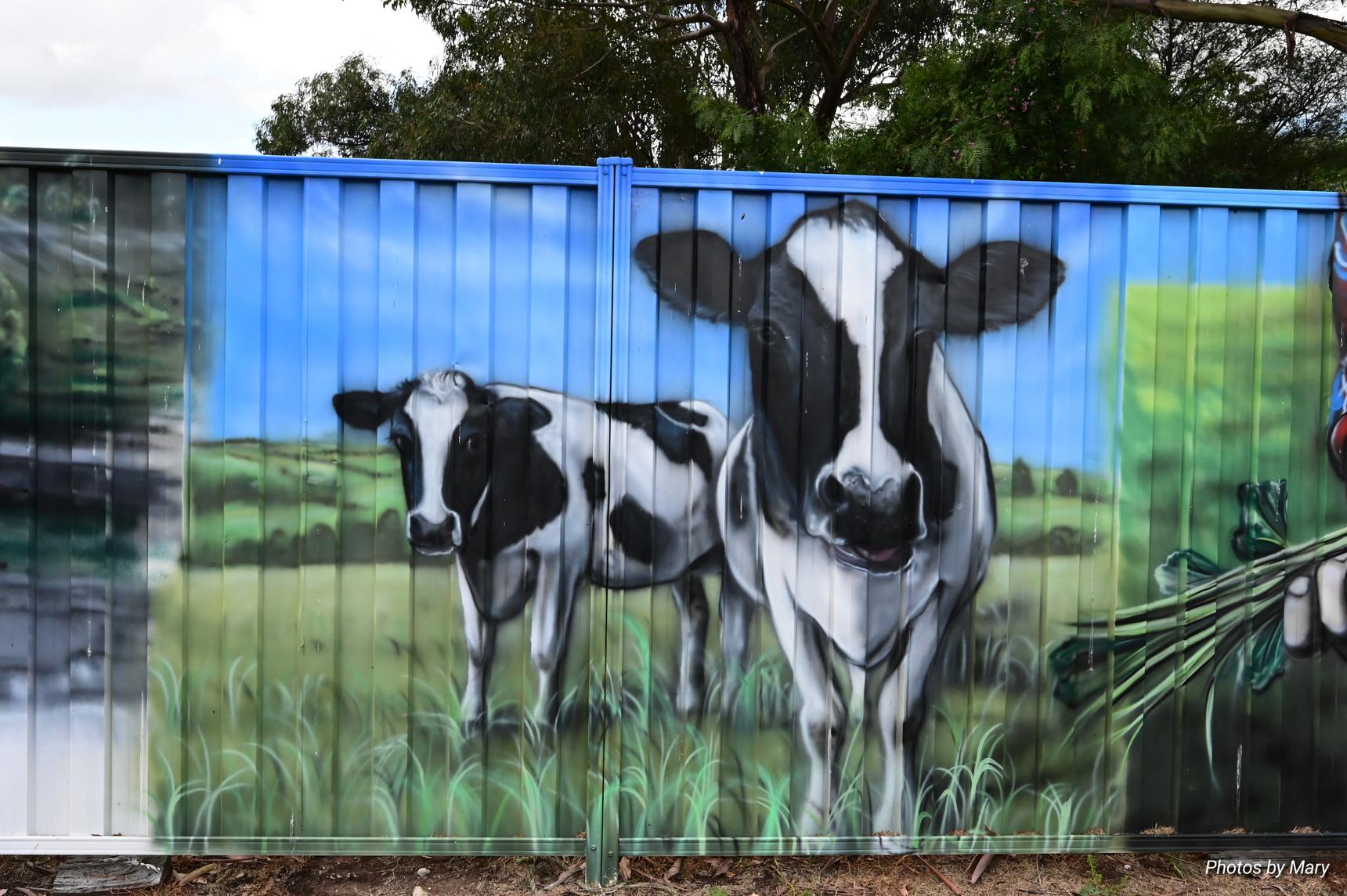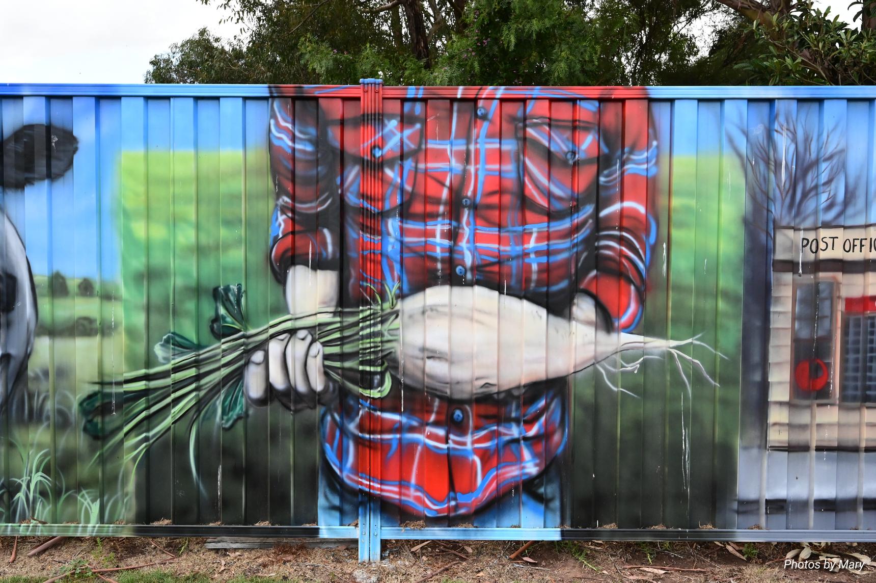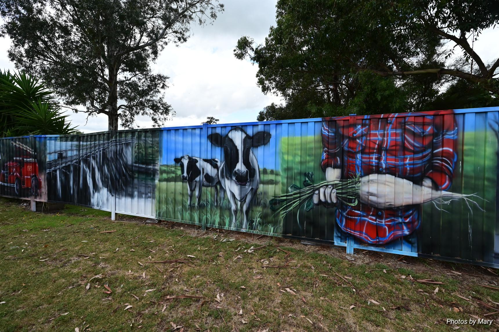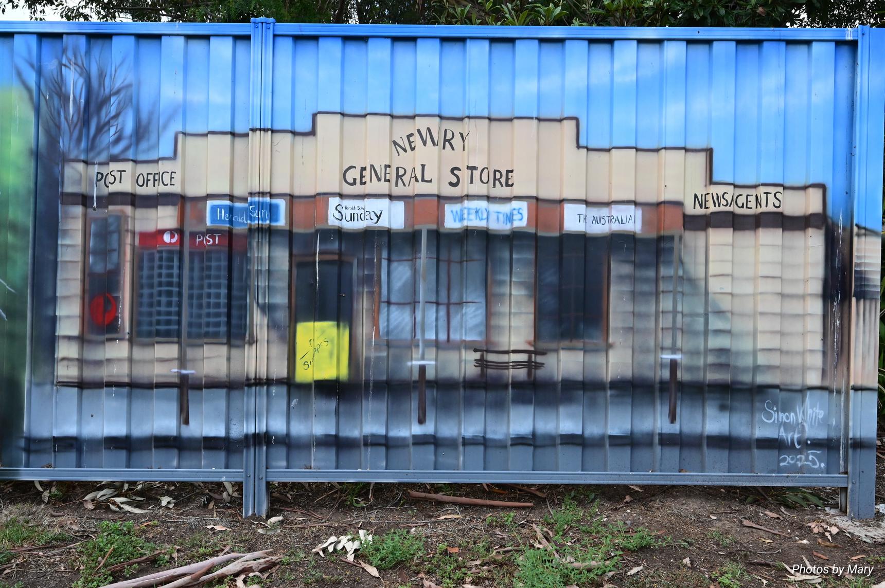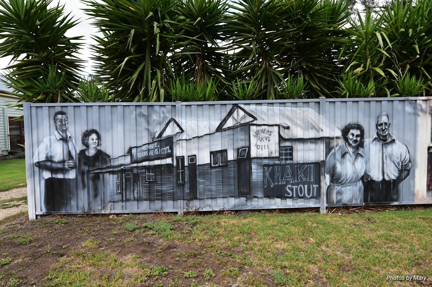 Murals featuring the various buildings and services in Newry. Located on fence opposite the Newry Hotel.