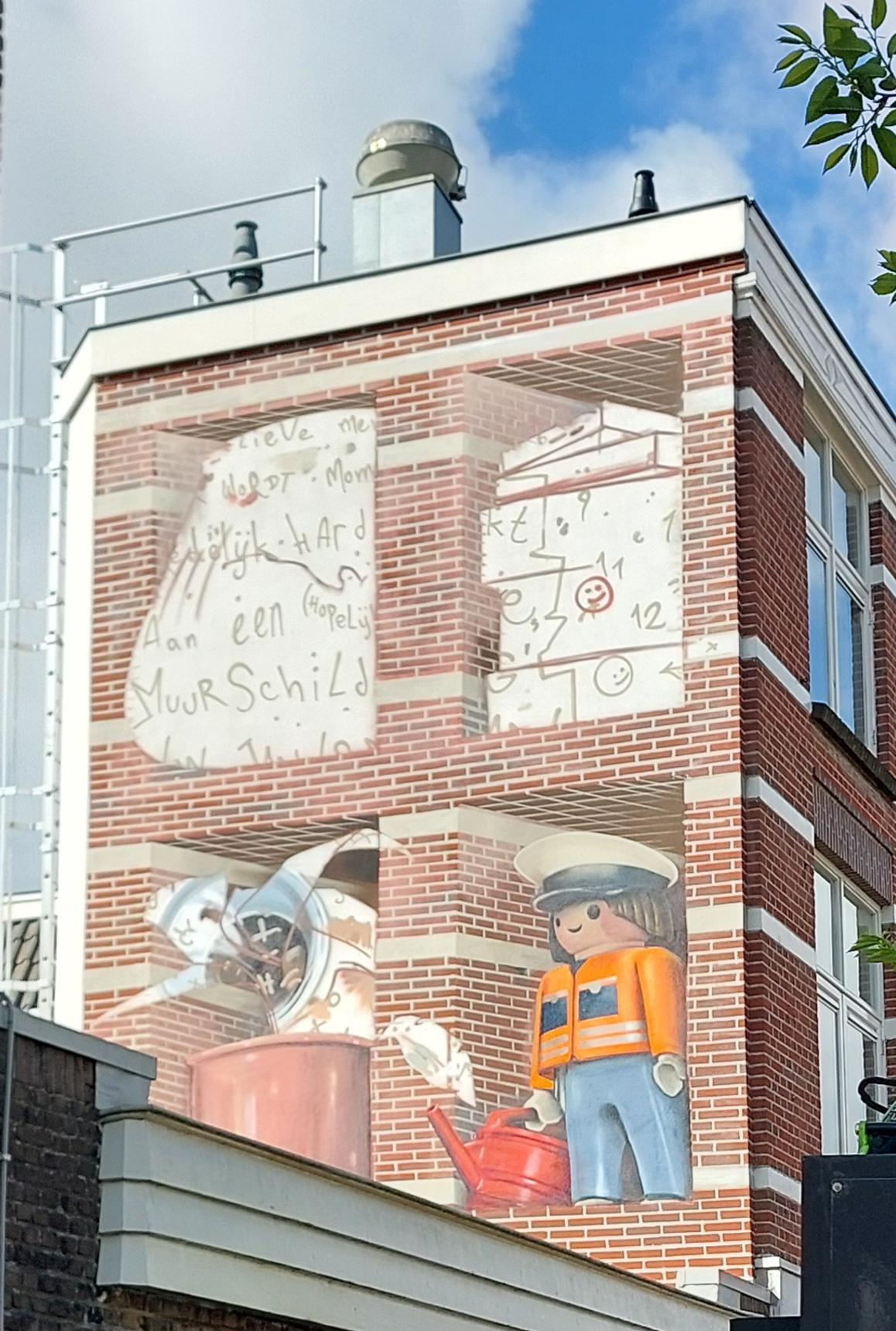 Met een tijdelijke muurschildering gaf Jan aan dat hier een nieuwe muurschildering gaat komen. Helaas hier geen originele foto van kunnen maken. Mogelijk volgt deze nog.