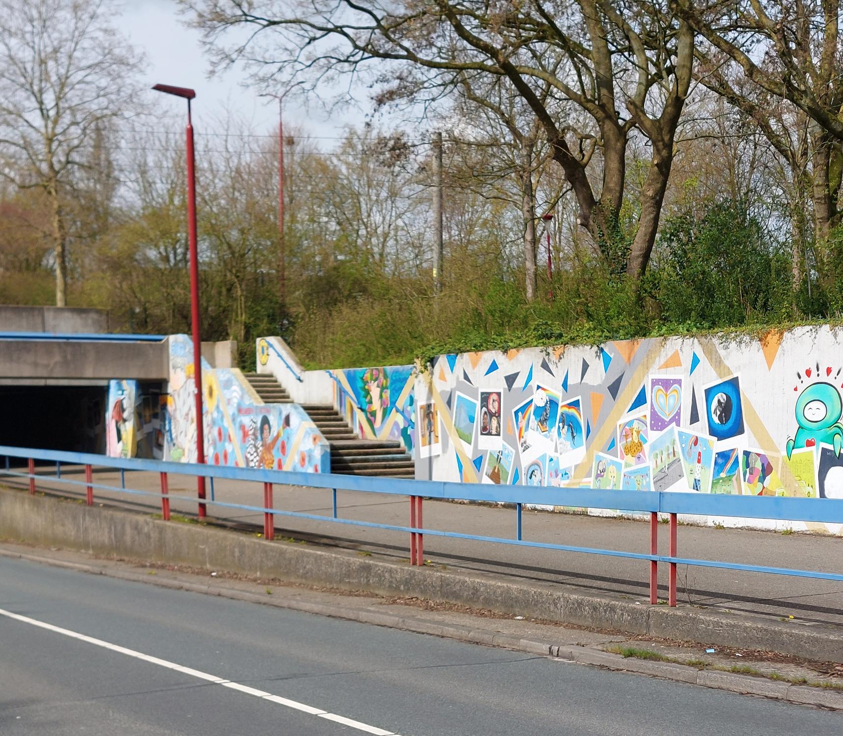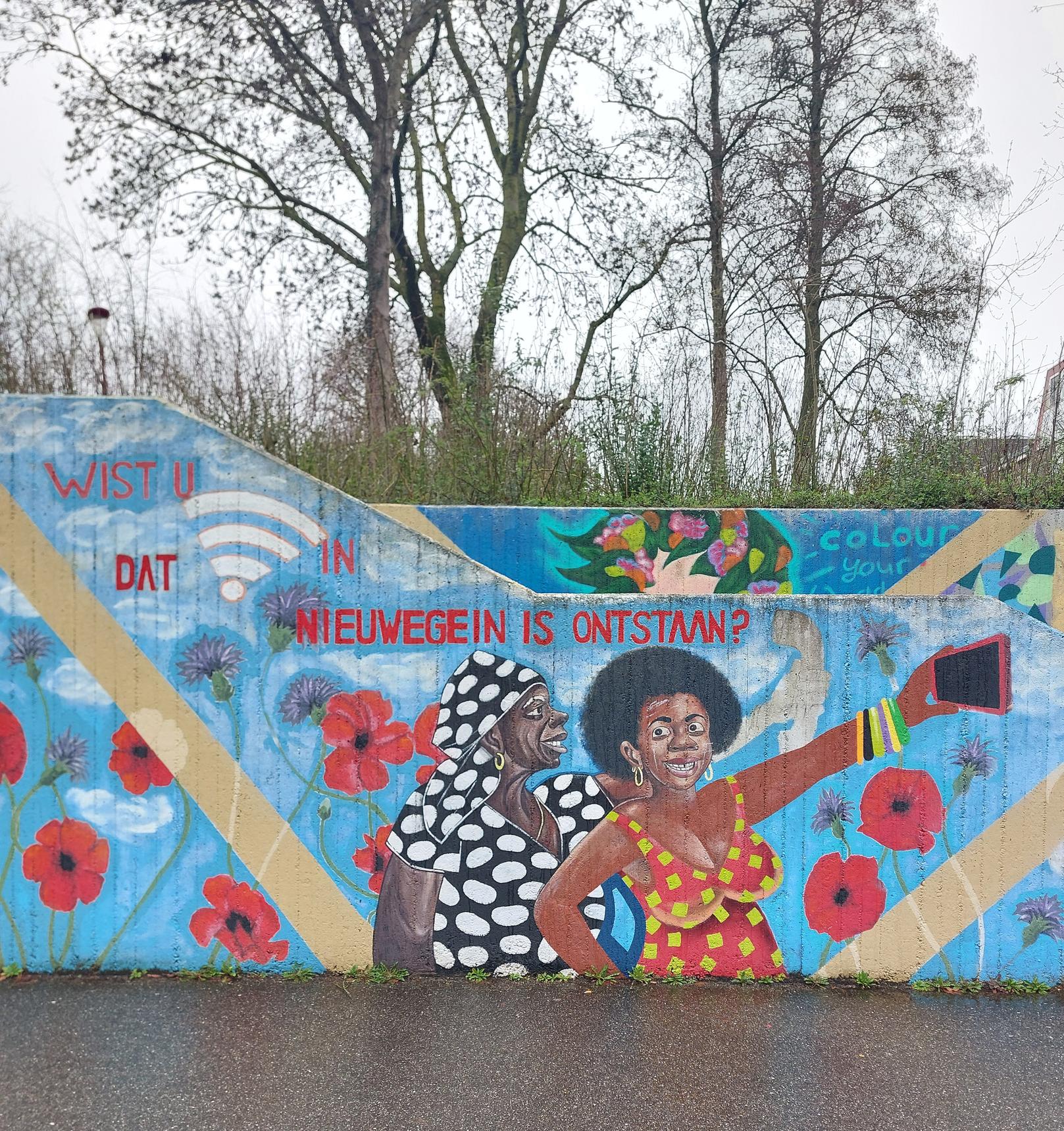 In 2021, the municipality of Nieuwegein celebrated its 50th anniversary. To mark the occasion, Carin Sleurink worked together with residents of Nieuwegein to transform a dull, grey wall of the Noordstede Tunnel into a vibrant, colorful display. Polaroid-style images present personal stories of residents in a lively visual form. Below are a few examples.
