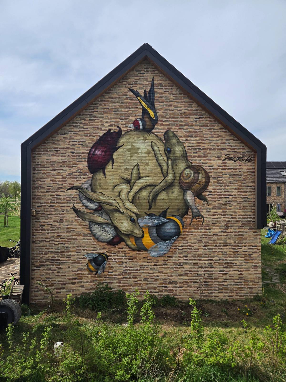 Painted in Nijmegen at Ecodorp Zuiderveld, 'Biodiversiteit' reflects some of the animals living at this area forming one solid organism
