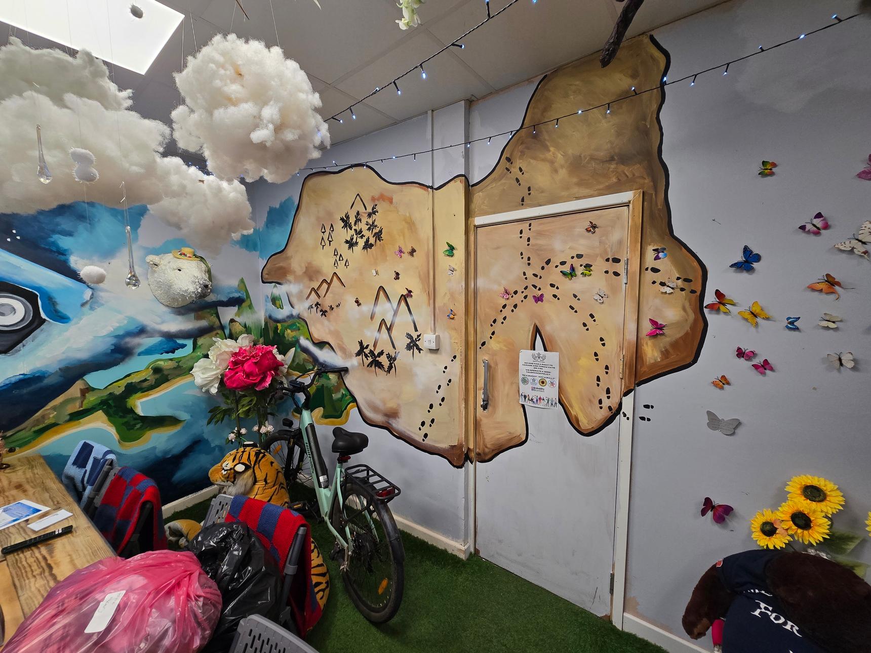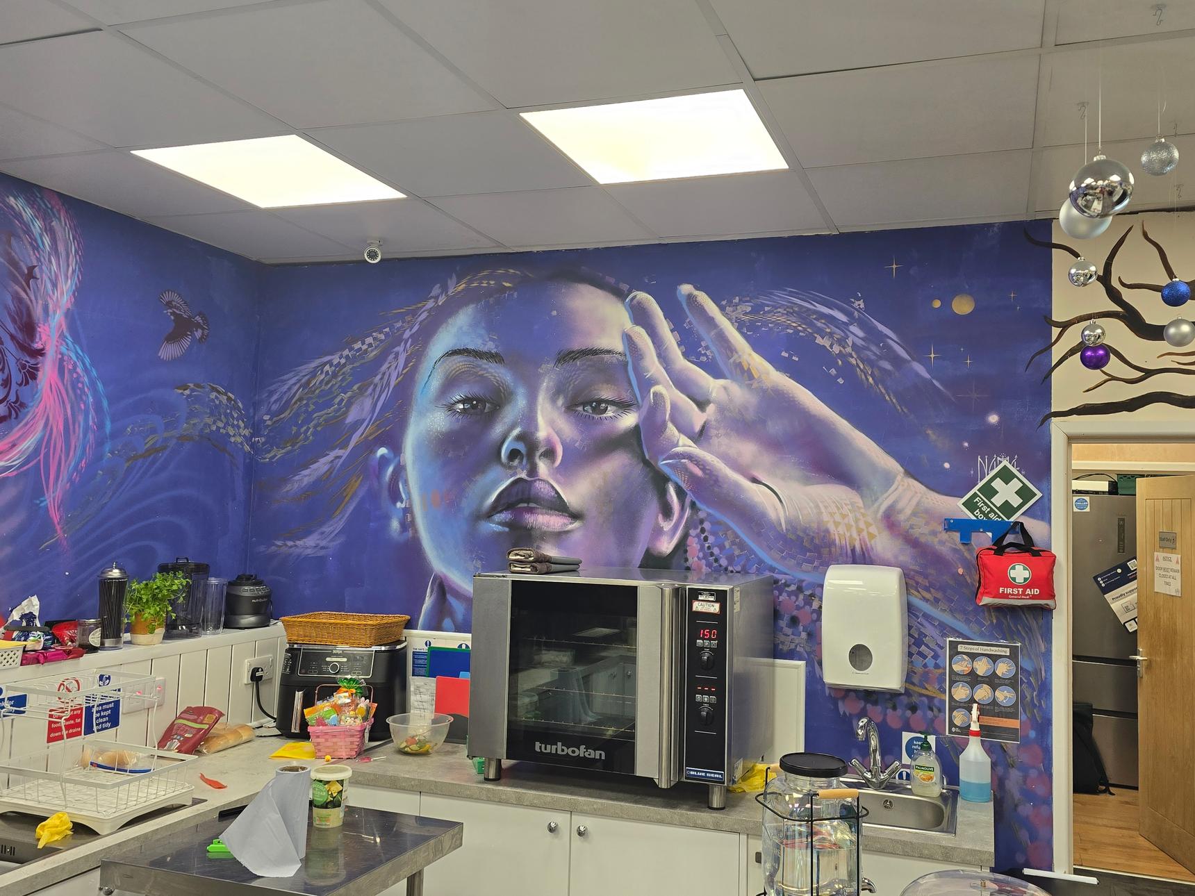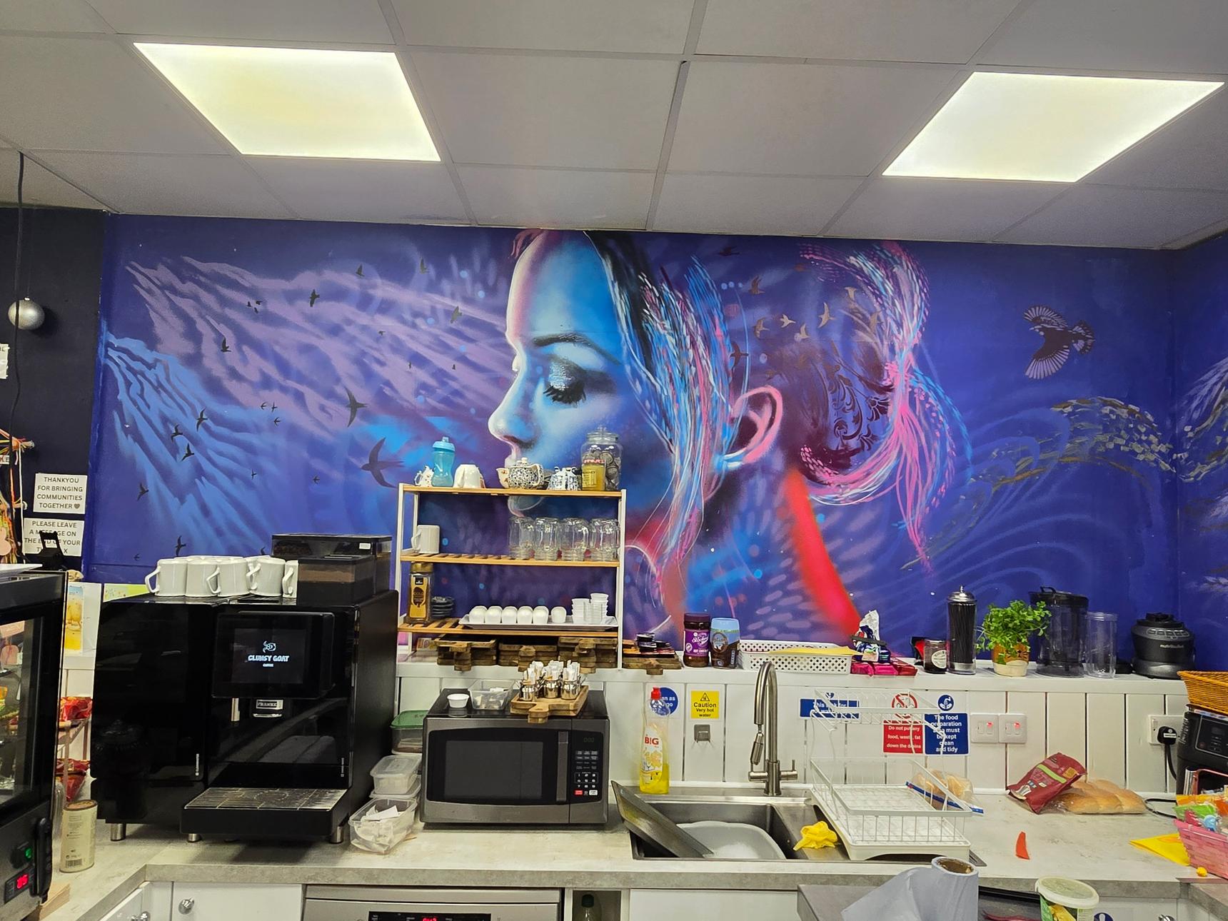 Margaret's Community Support Hub (known locally as The Makery) is a charity that supports the local community...and has the walls adorned with the most incredible art, by Sioux (who is also the CEO of this place), Katie O, and N4T4.