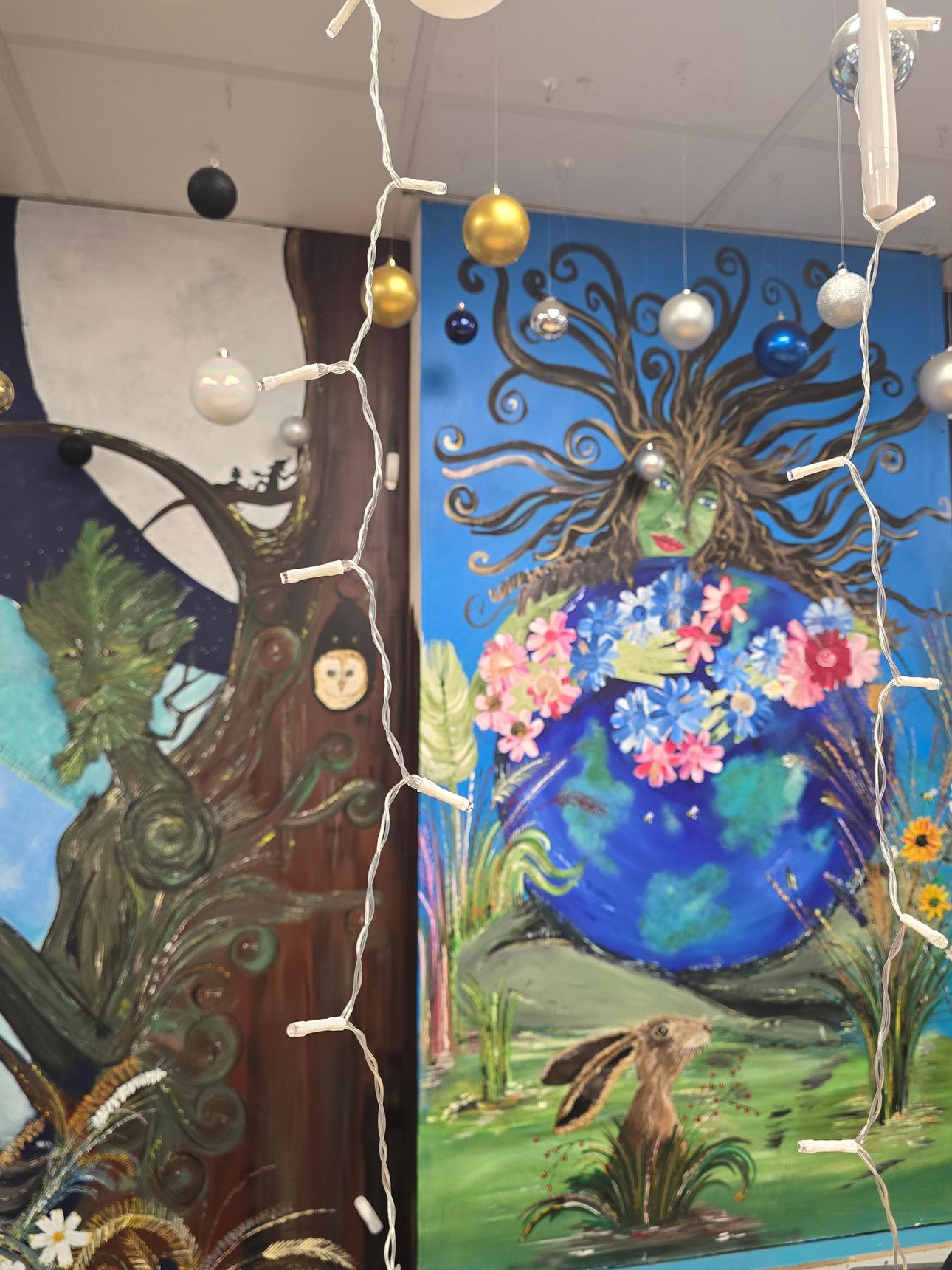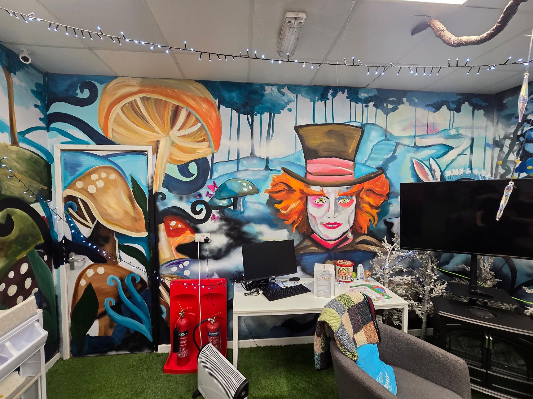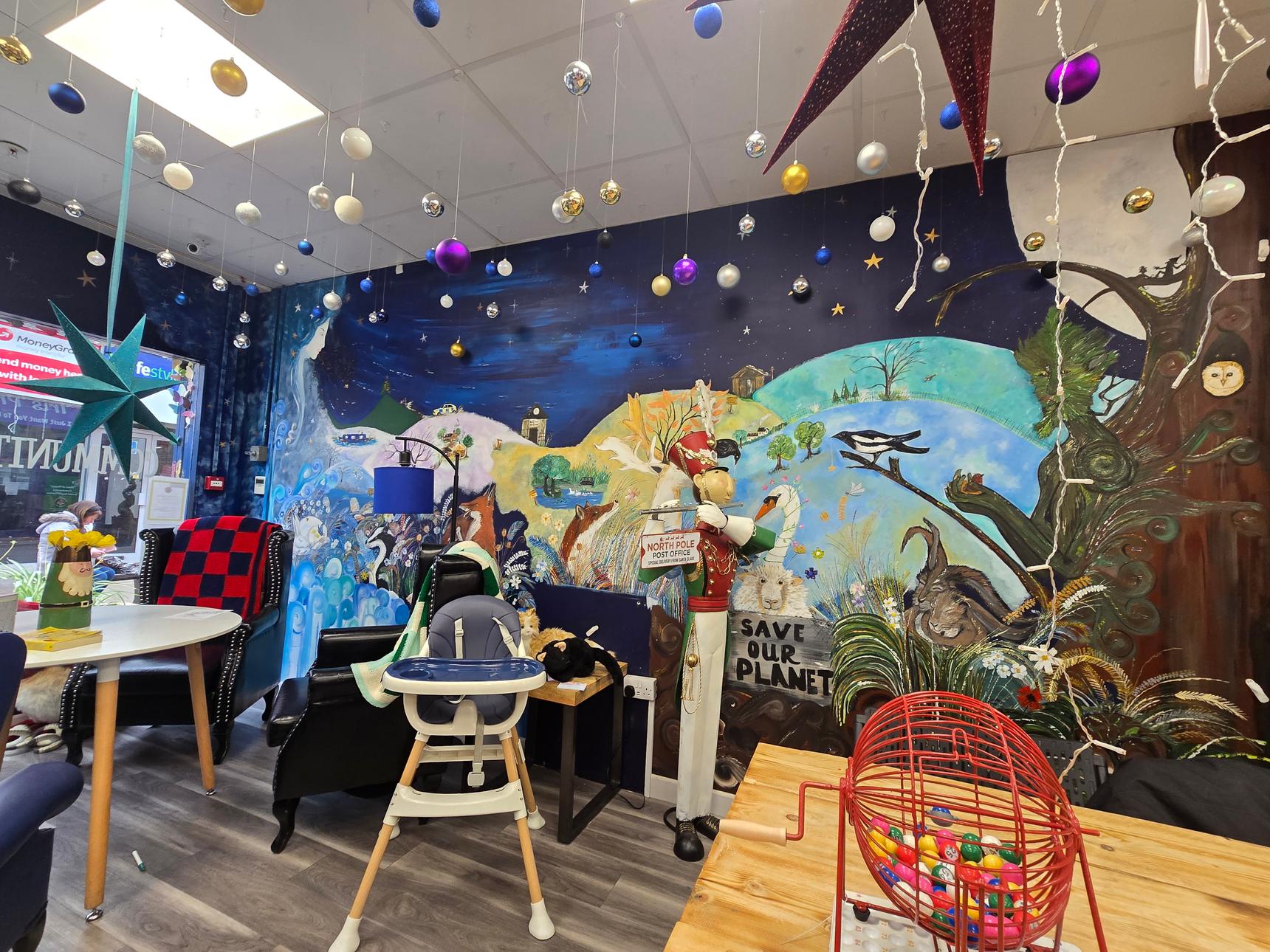 Margaret's Community Support Hub (known locally as The Makery) is a charity that supports the local community...and has the walls adorned with the most incredible art, by Sioux (who is also the CEO of this place), Katie O, and N4T4.