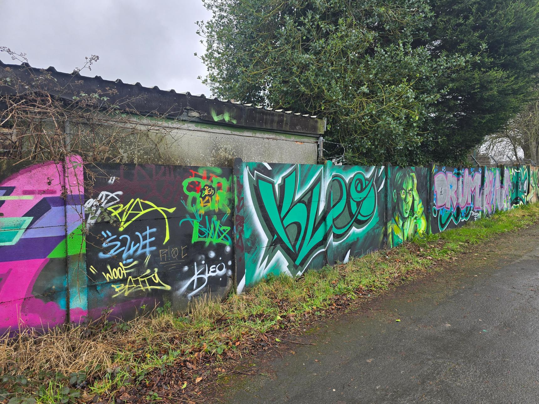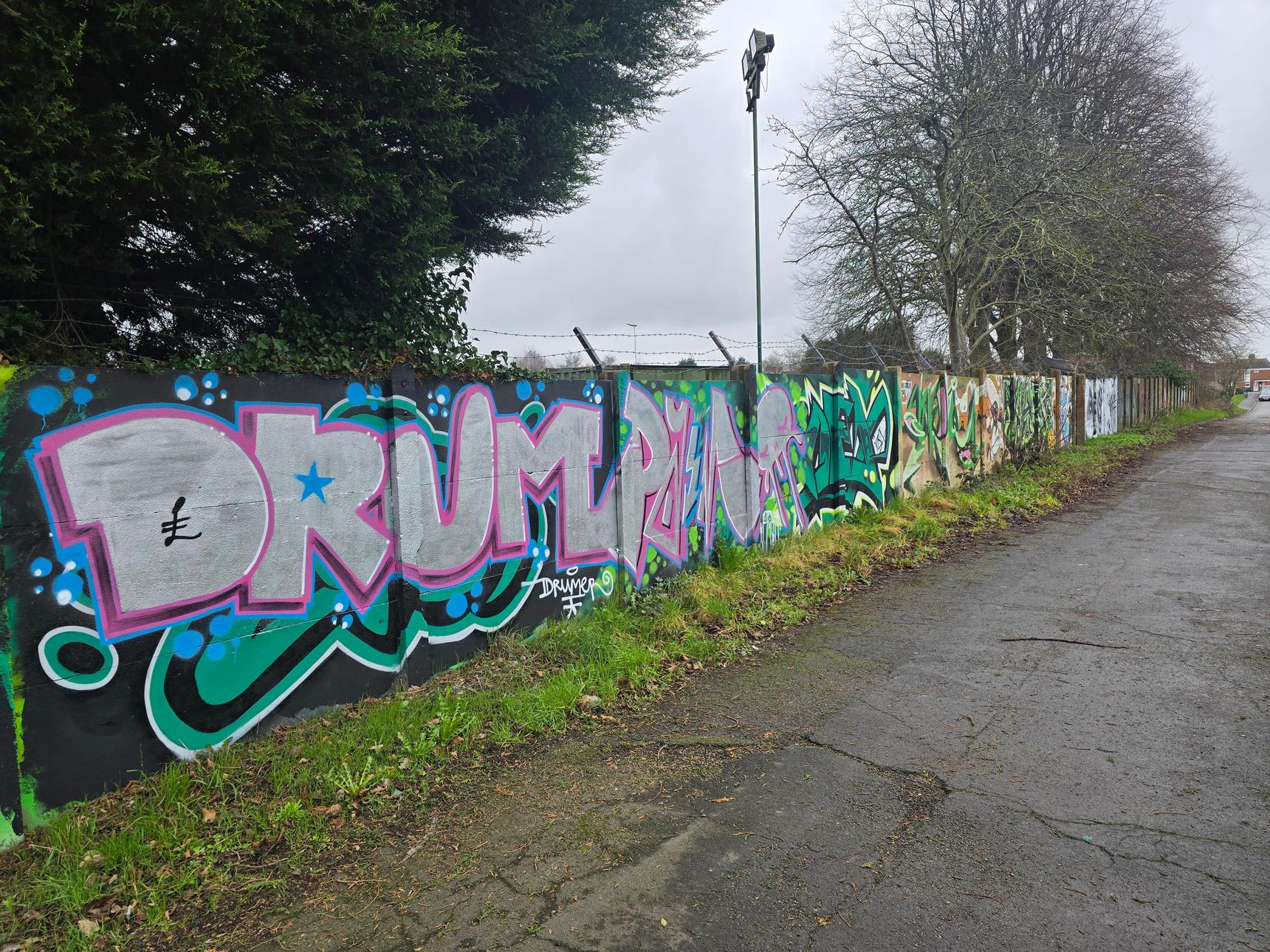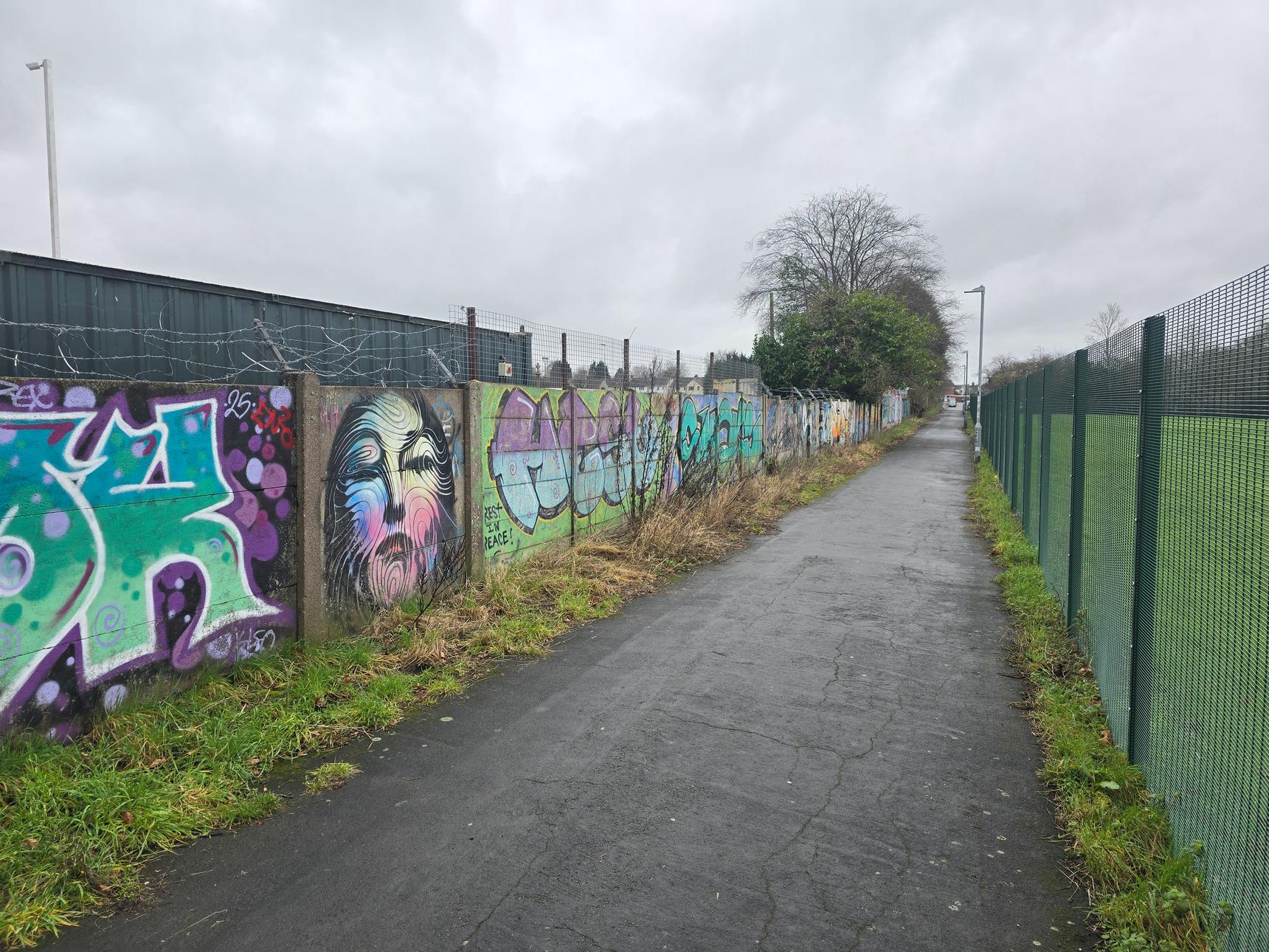 This is on the footpath between Greenmore Road and Aviemore Close, on the wall at the back of Griff and Coton Social Club.