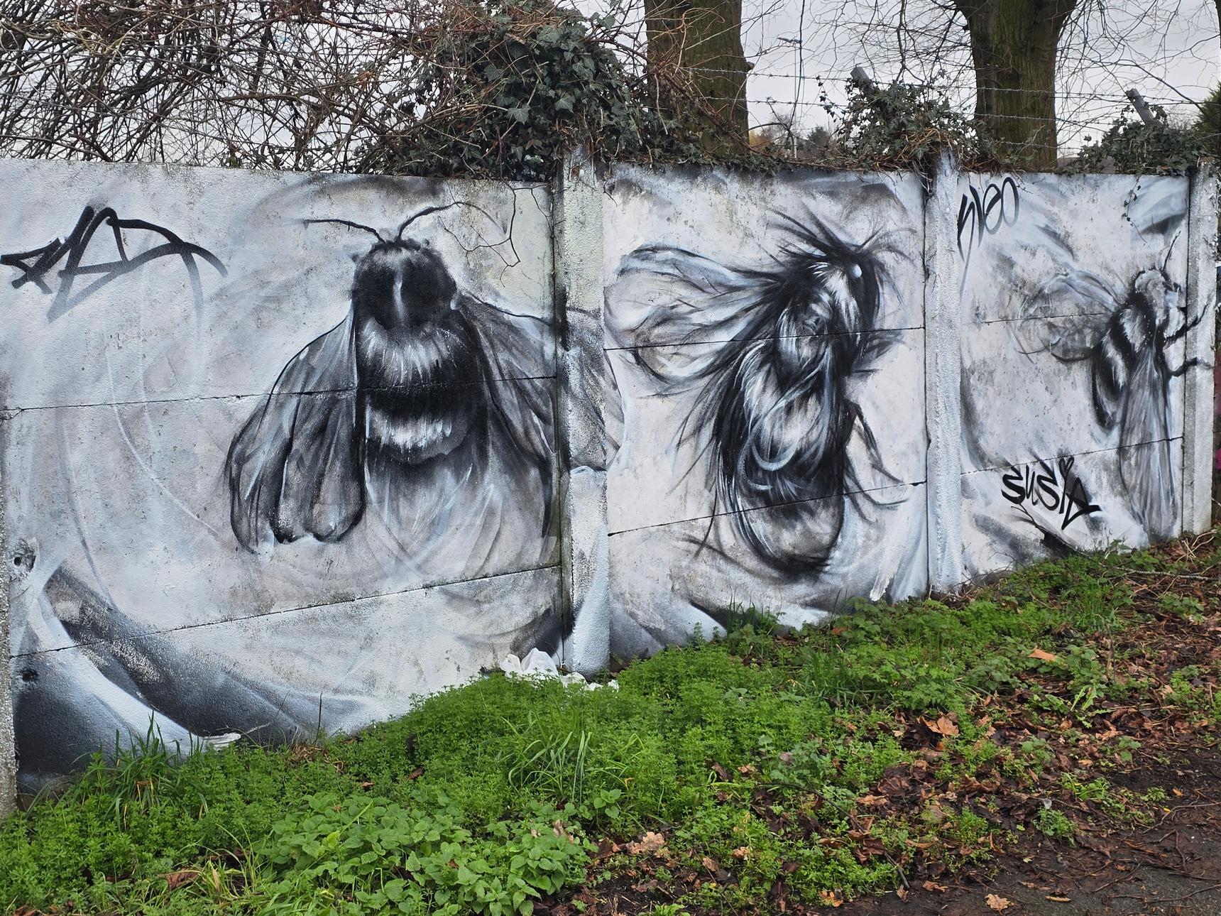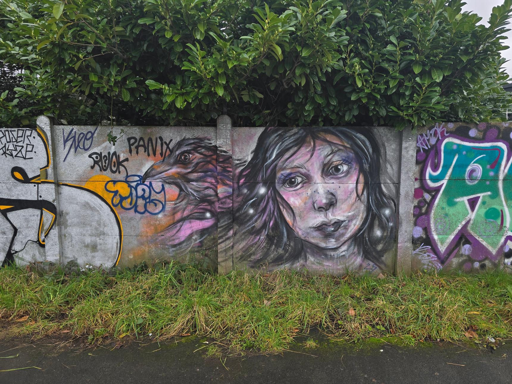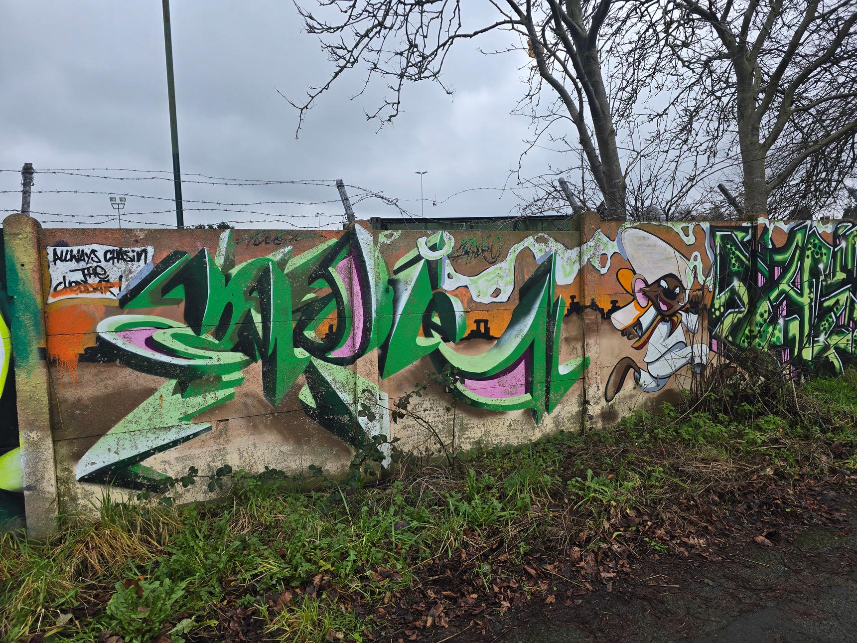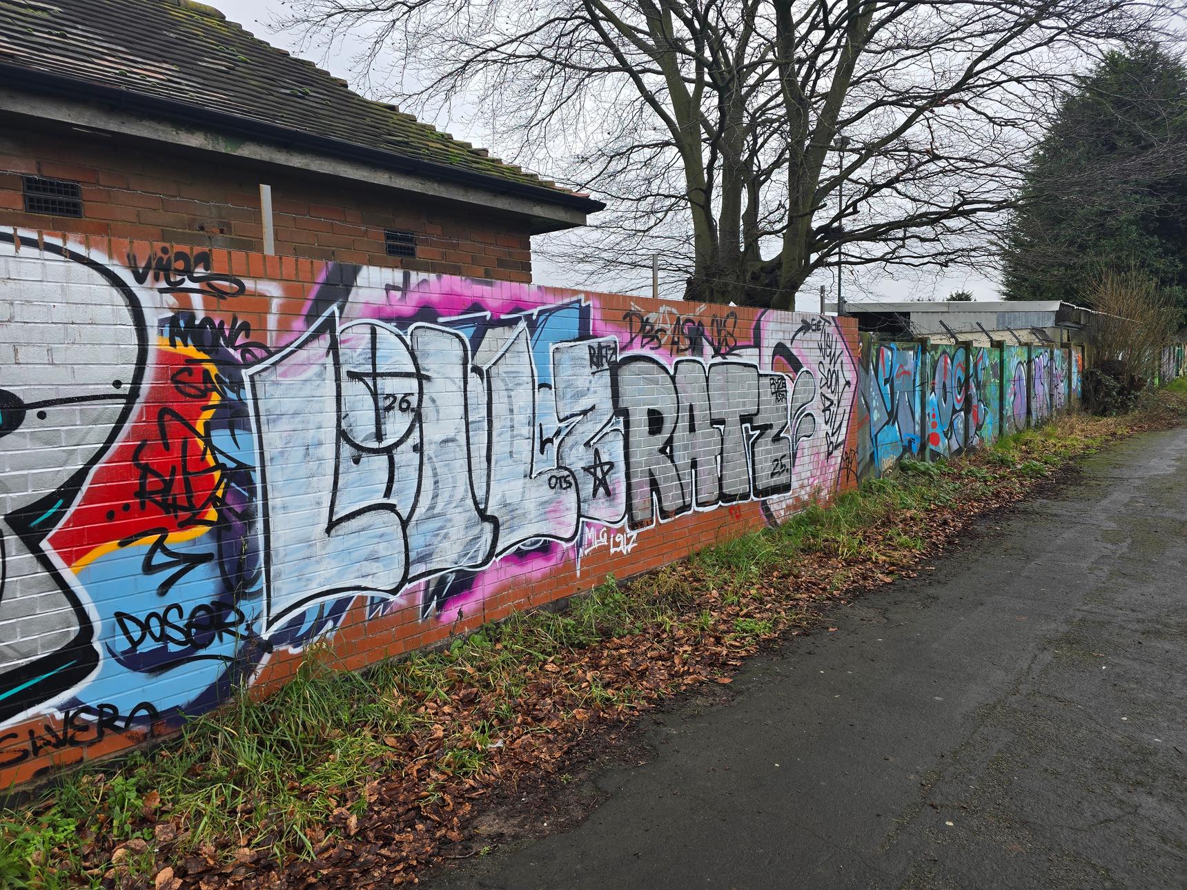 This is on the footpath between Greenmore Road and Aviemore Close, on the wall at the back of Griff and Coton Social Club.