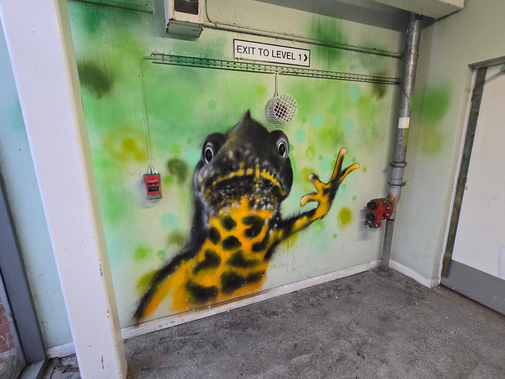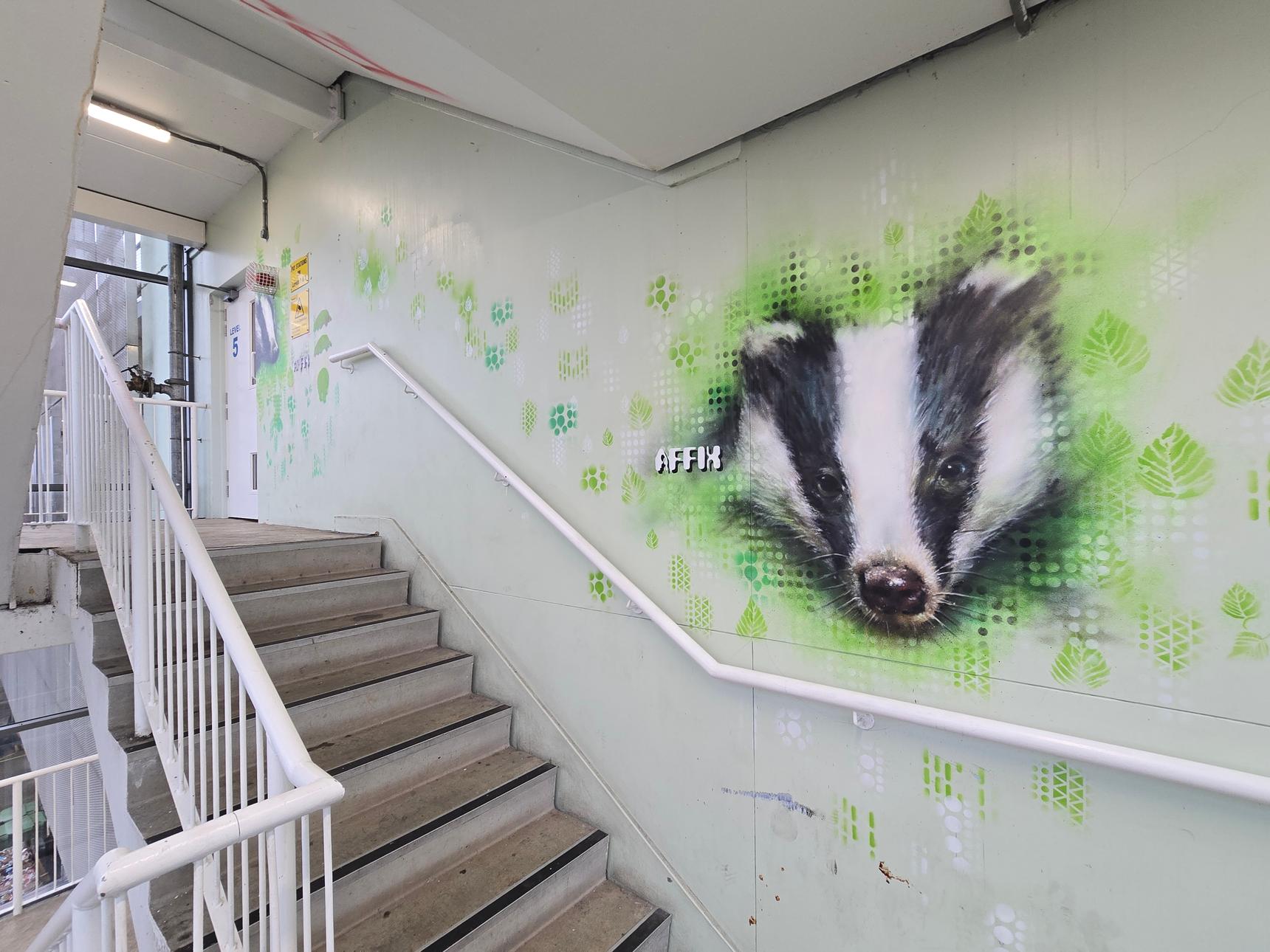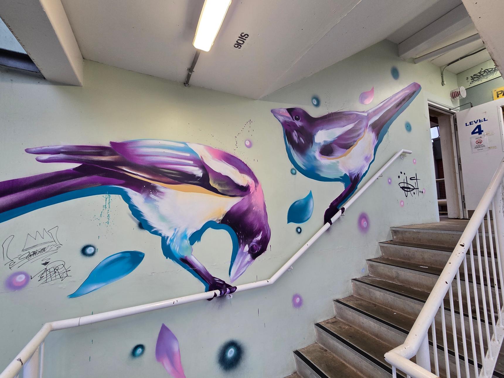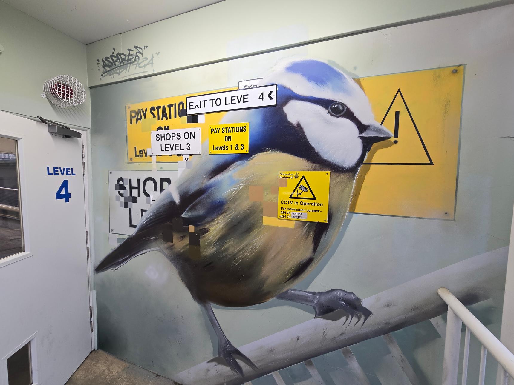 There are several stairwells in the car park, but only two of them have the murals. These are the ones on the south side of the building, and on the east side.