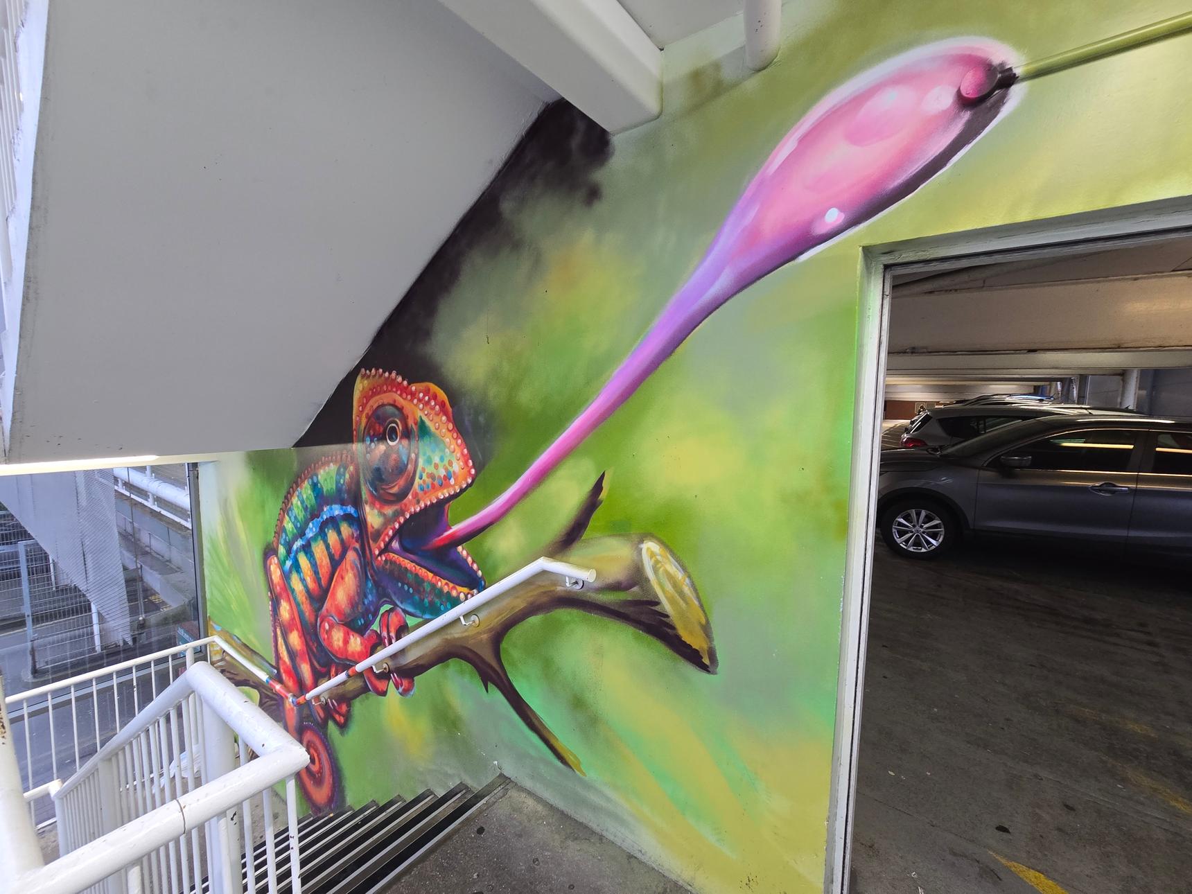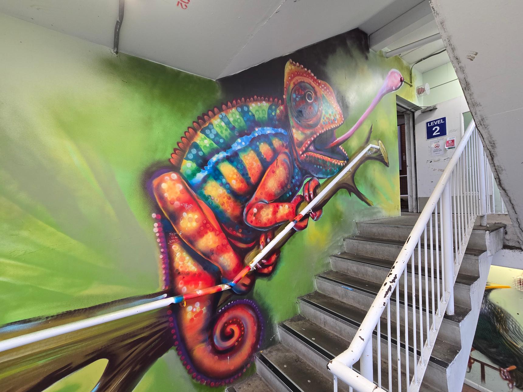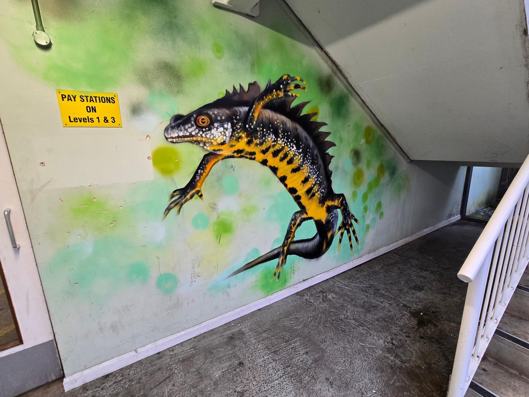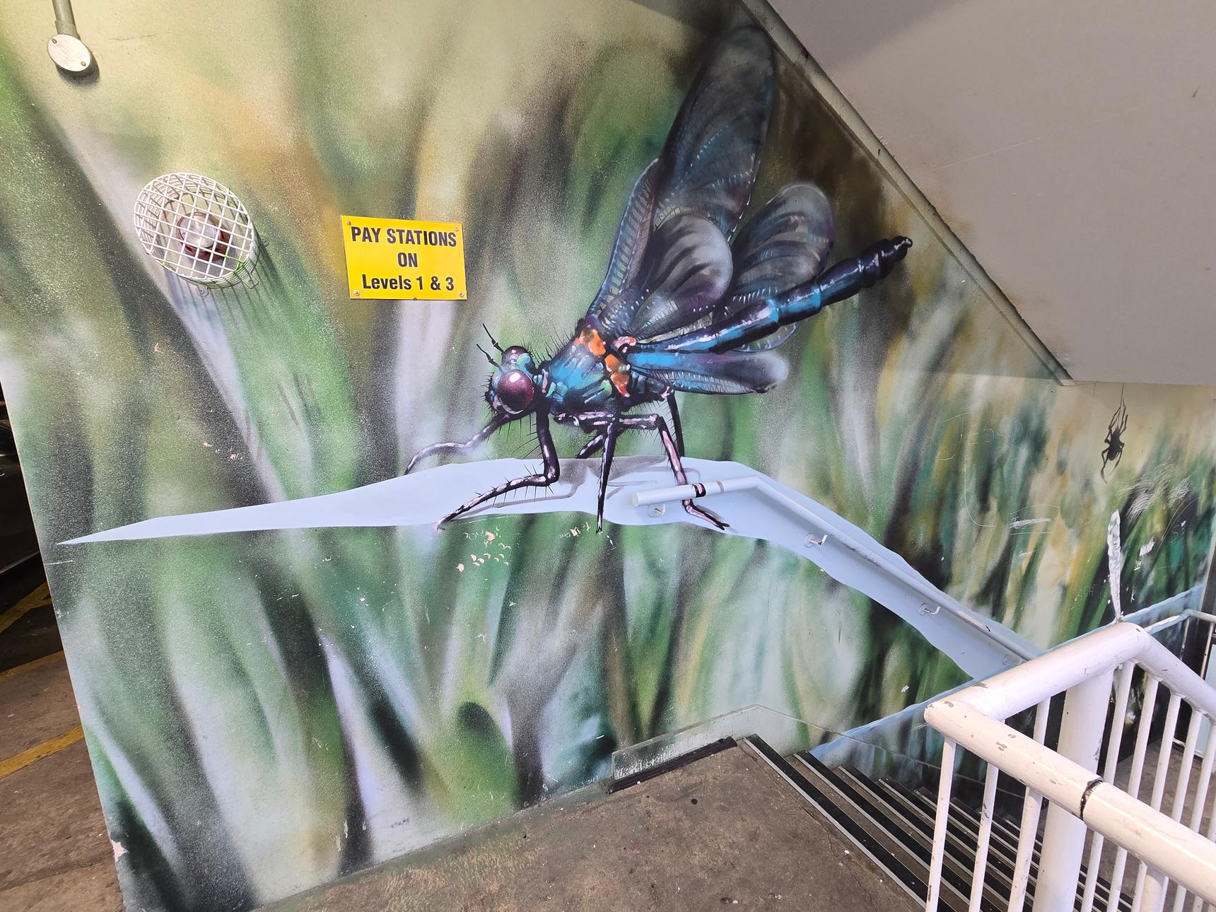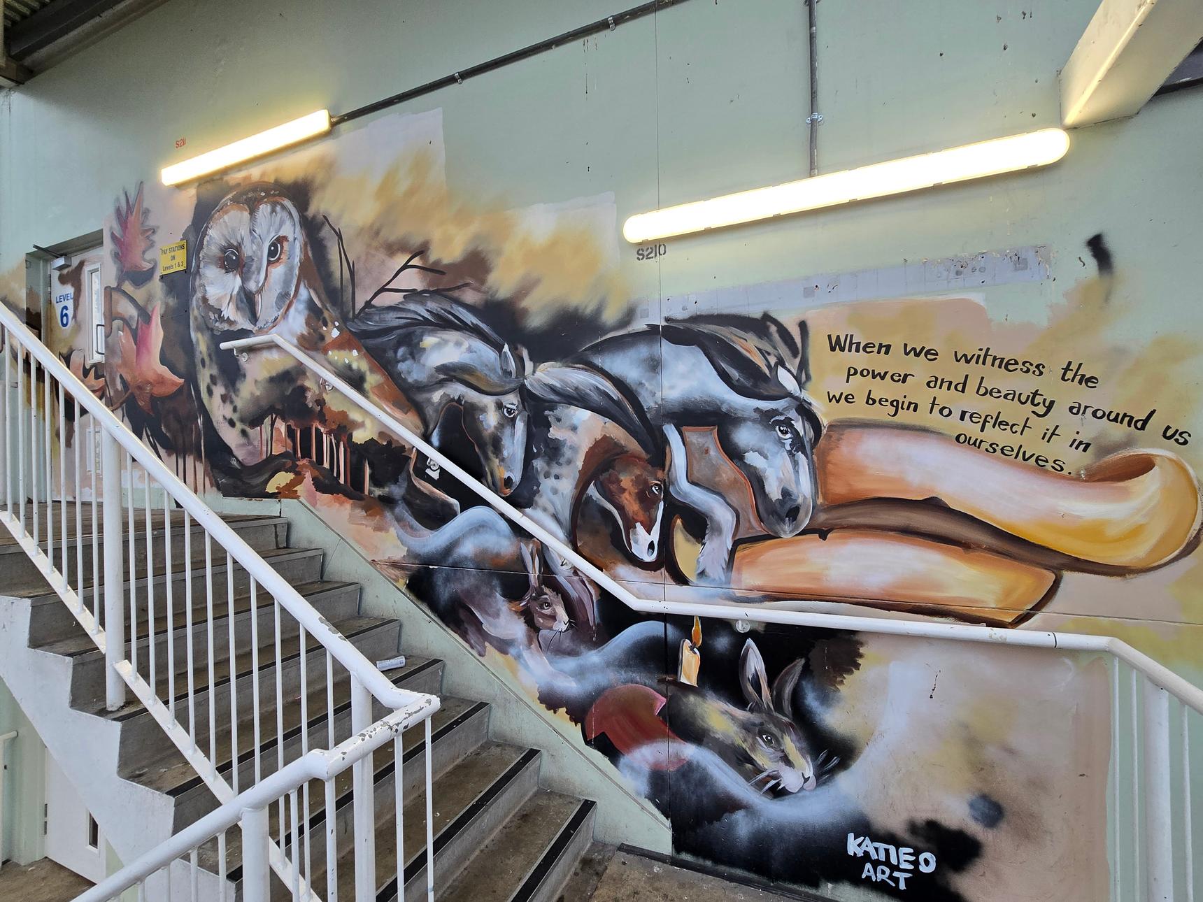 There are several stairwells in the car park, but only two of them have the murals. These are the ones on the south side of the building, and on the east side.