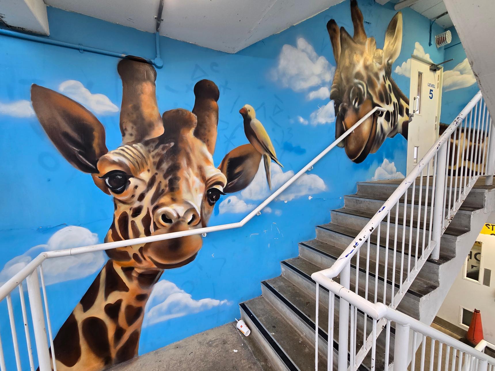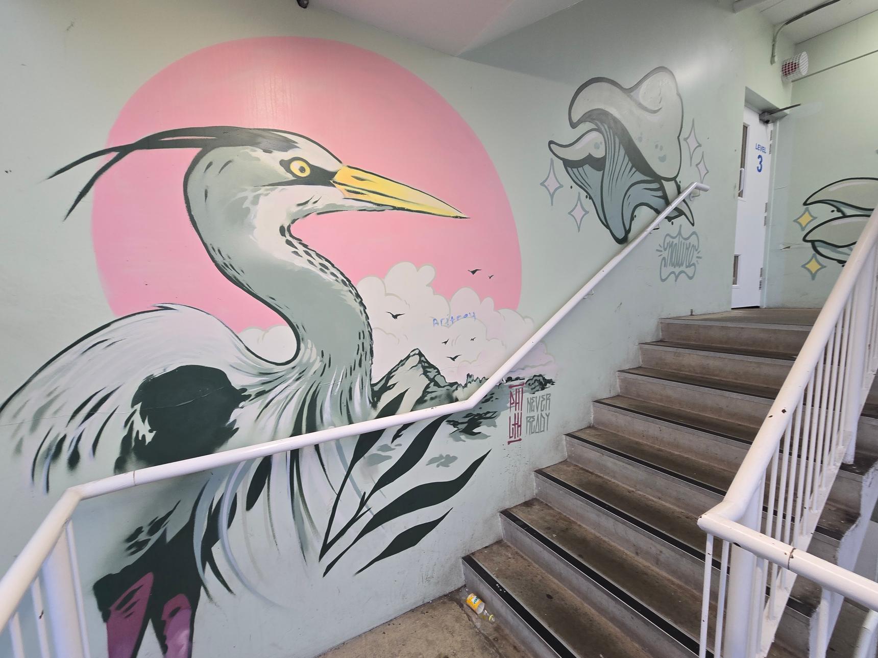 Two stairwells, with gorgeous murals on every floor... what's not to love!