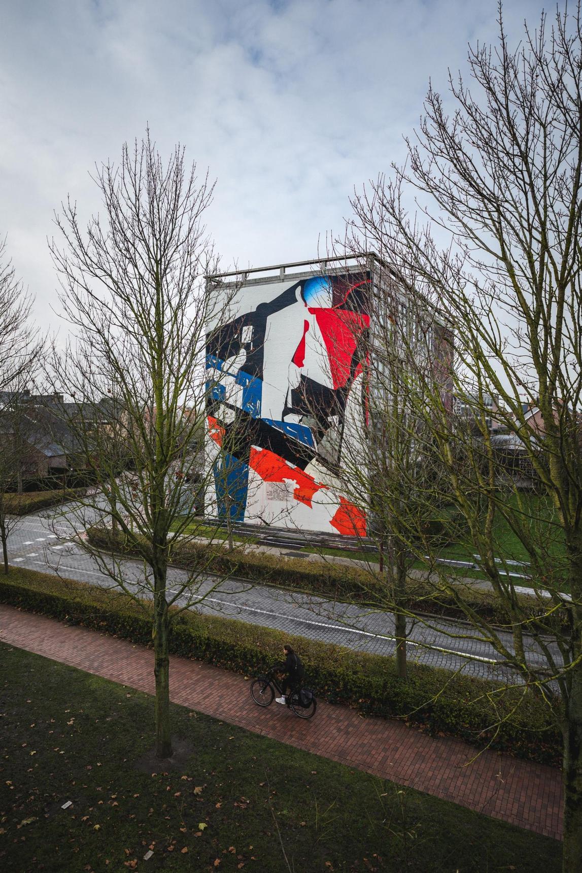 The mural draws on the imagery of the boxing ring, the intensity of the colour red, and the starkness of industrial style. Together with its sleek framing, these elements become metaphors for artistry itself: a process of trial and error, of confrontation and renewal.
