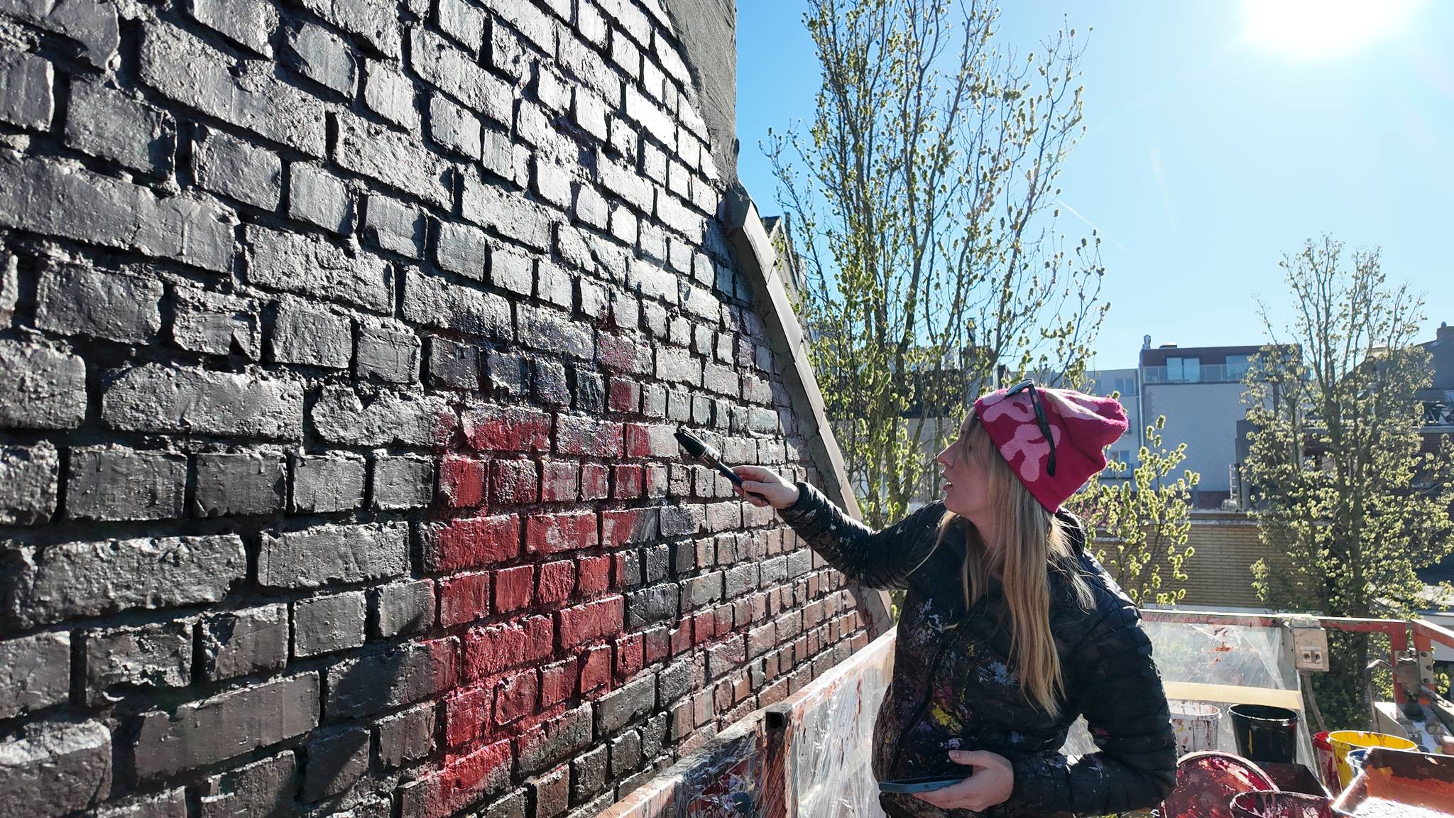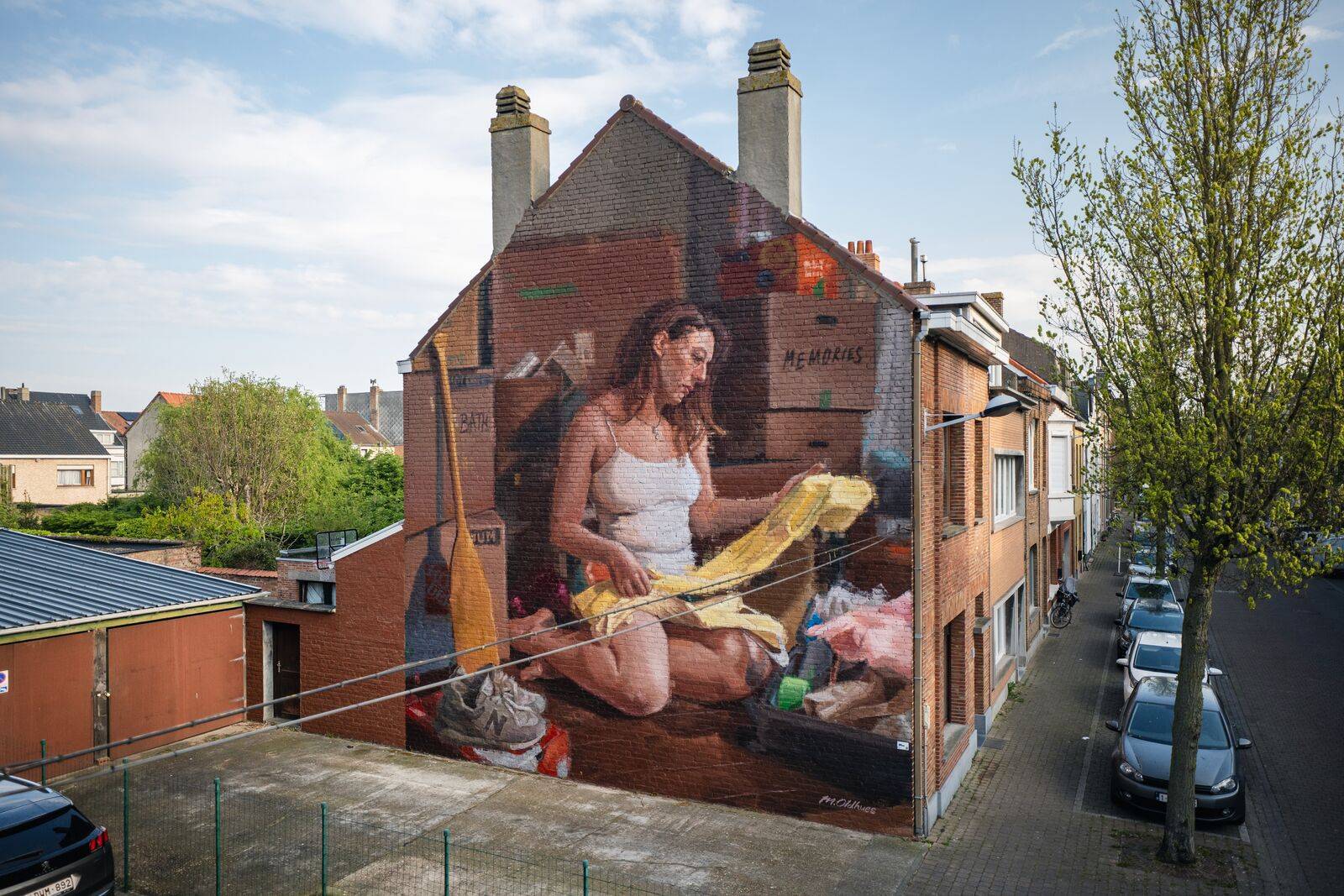 De Canadese Megan Oldhues omschrijft haar stijl als 'schilderkunstig muralisme' – en dat is te zien. Haar muurschilderingen lijken op stillevens en roepen herinneringen op aan grote meesters in de schilderkunst. Met haar subtiele kleuren en delicate penseelstreken brengt ze een zekere zachtheid in de straat. Haar werk voelt bijna poëtisch, als een rustig moment te midden van de drukte.