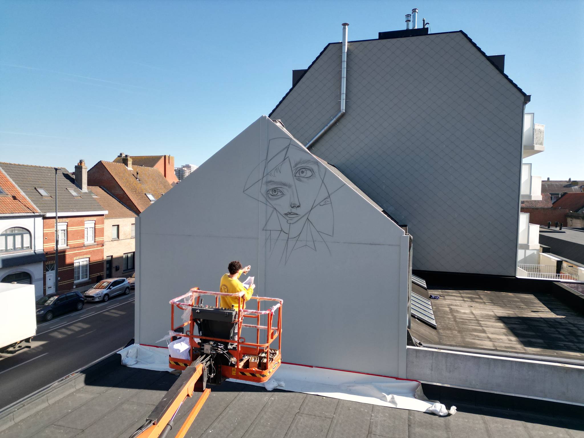 His mural in Ostend captures that moment of transition – a metaphorical departure, a visual voyage toward new worlds. “It’s really about leaving Ostend,” he explains, “heading towards another world to discover.”