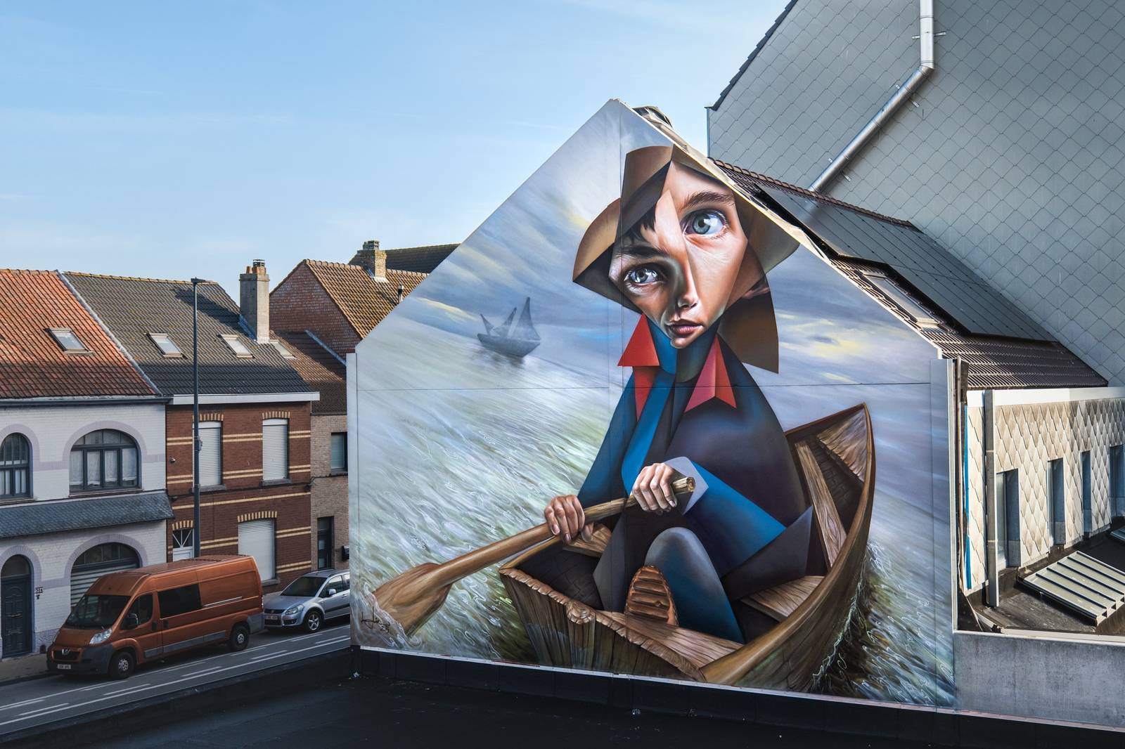 This poetic caption not only connects the mural to a Belgian art historical icon but also mirrors Belin’s personal journey. Like Ensor’s lone rower, Belin navigates change – leaving behind the familiar, heading toward something undefined yet necessary. His mural becomes a contemporary echo of Ensor’s painting: both are meditations on solitude, motion, and transformation.