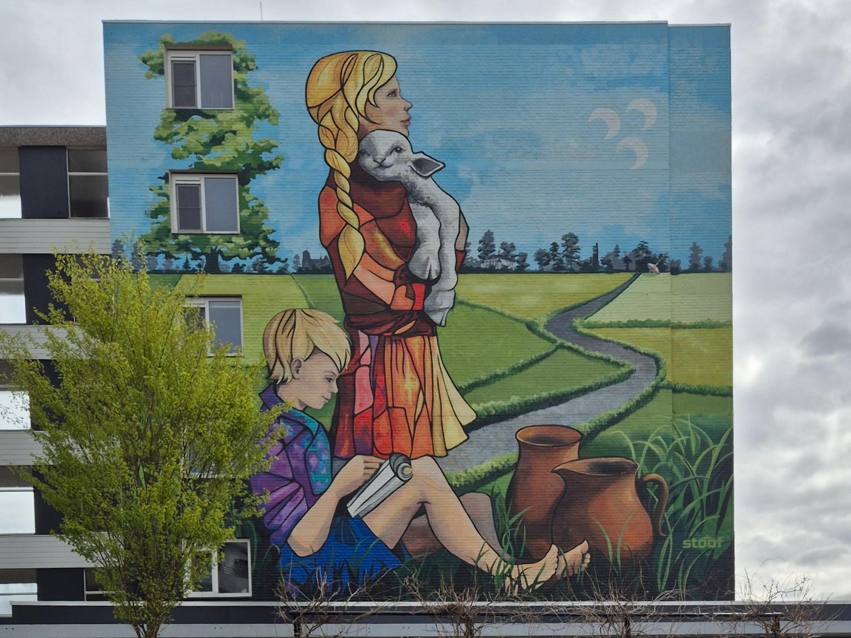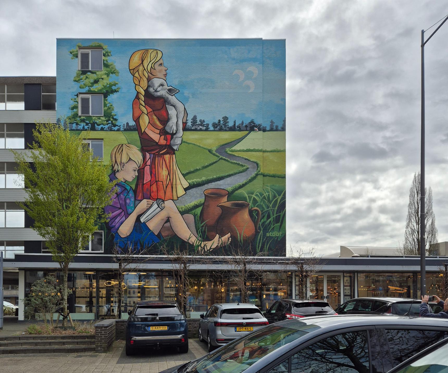 De muurschildering is gemaakt door de Britse kunstenares Zara Gaze samen met Fly Harper (ook Brit maar nu woonachtig op Ibiza), in opdracht/organisatie van STOOF (met artdirector Joris Kivits).