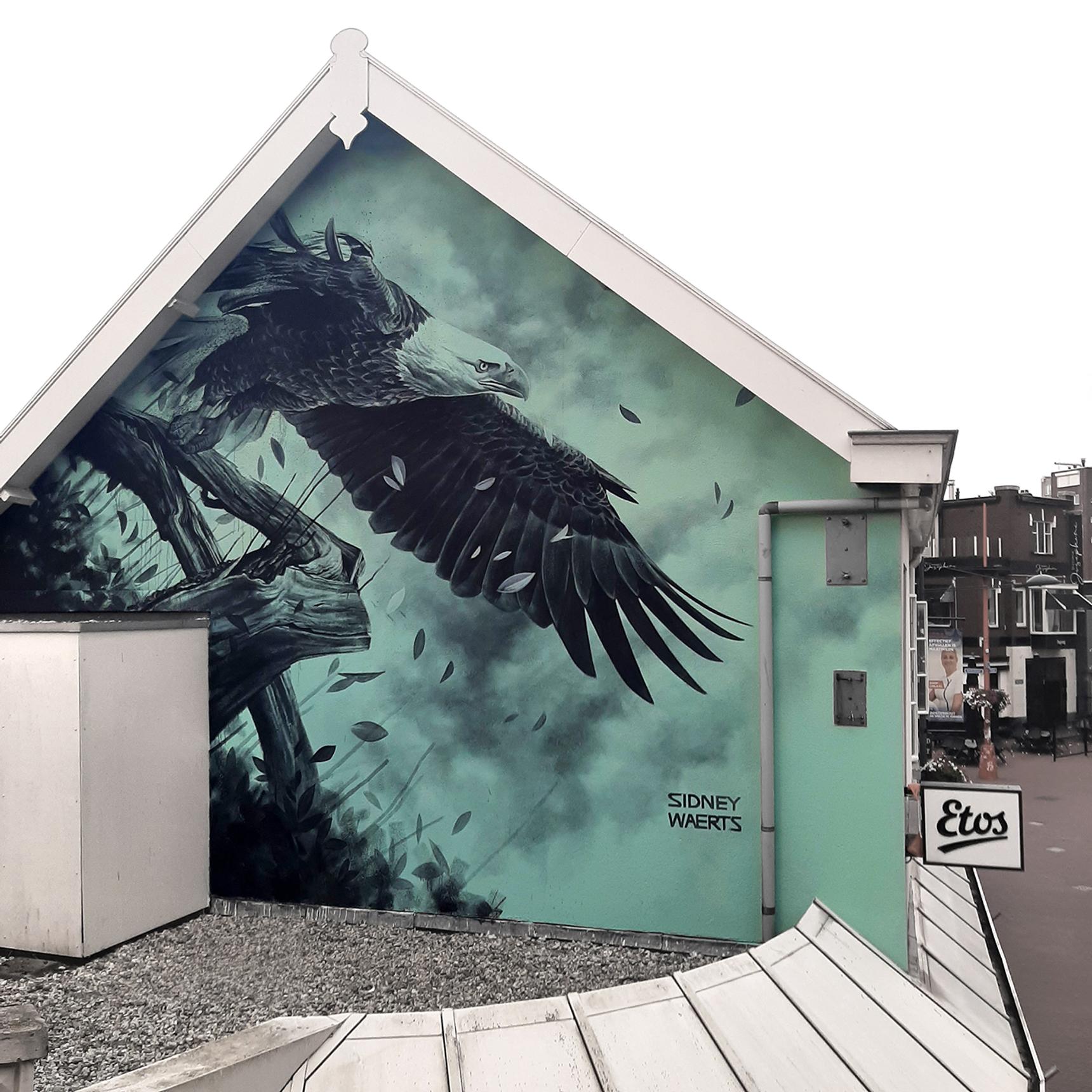 Dit eerbetoon aan de schoonheid van de arend staat in de Arendstraat.