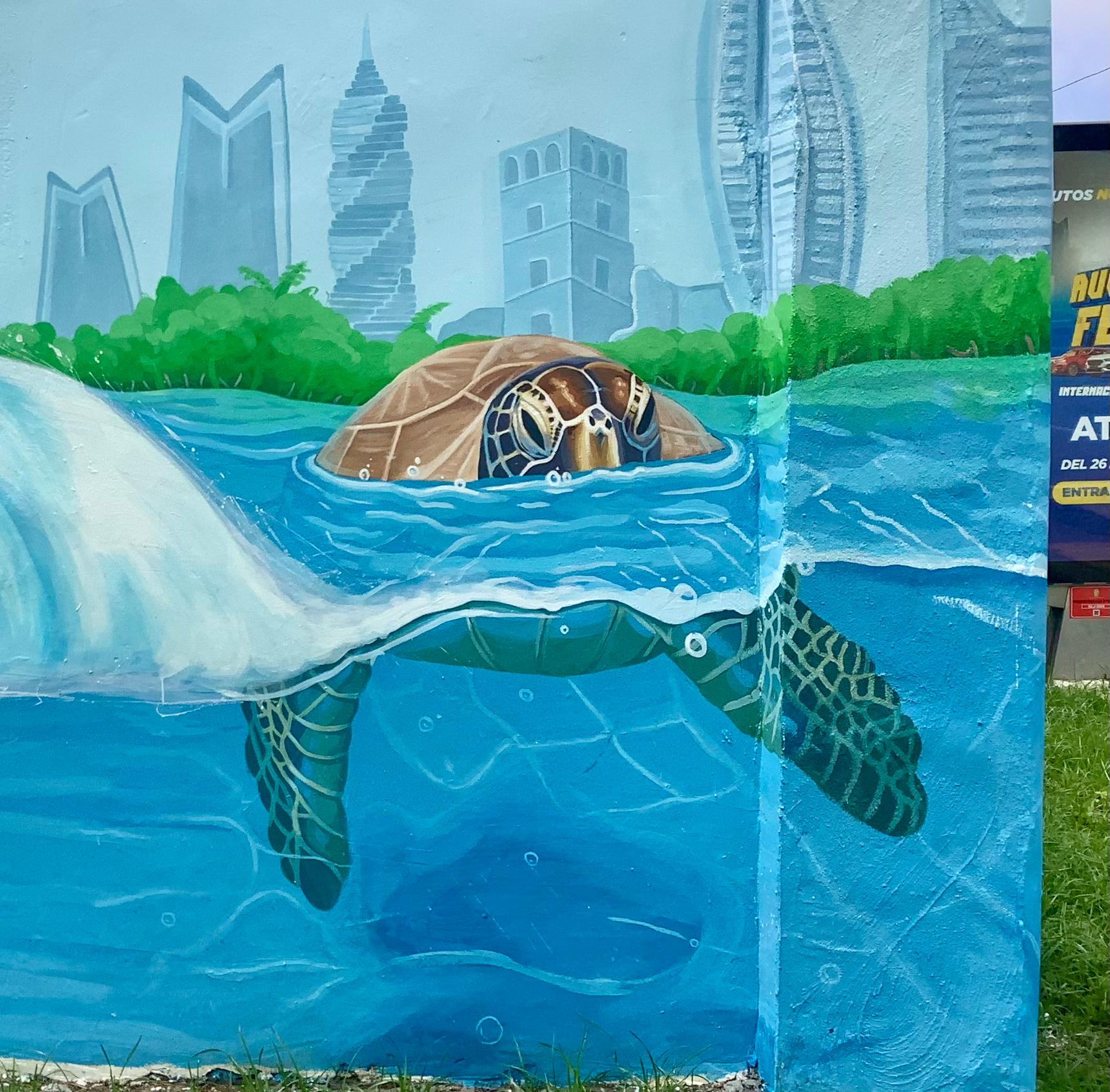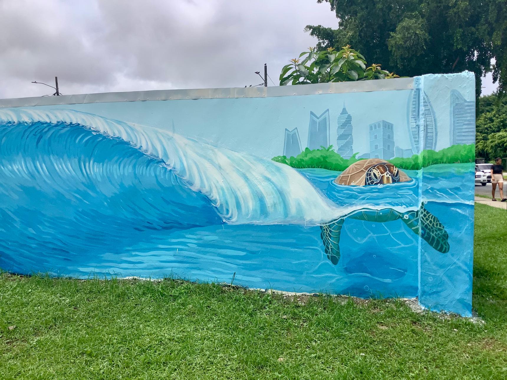 The mural evokes the heartbeat of the ocean, a continuous energy that connects marine life with the urban landscape, reminding us that nature continues to pulse beyond concrete.