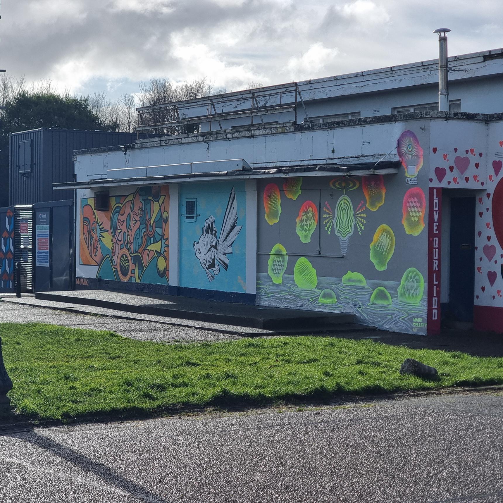 A collection of street art from the Look Up Portsmouth 2025 event at the Hilsea Lido. There's a lot to see all around the Lido.