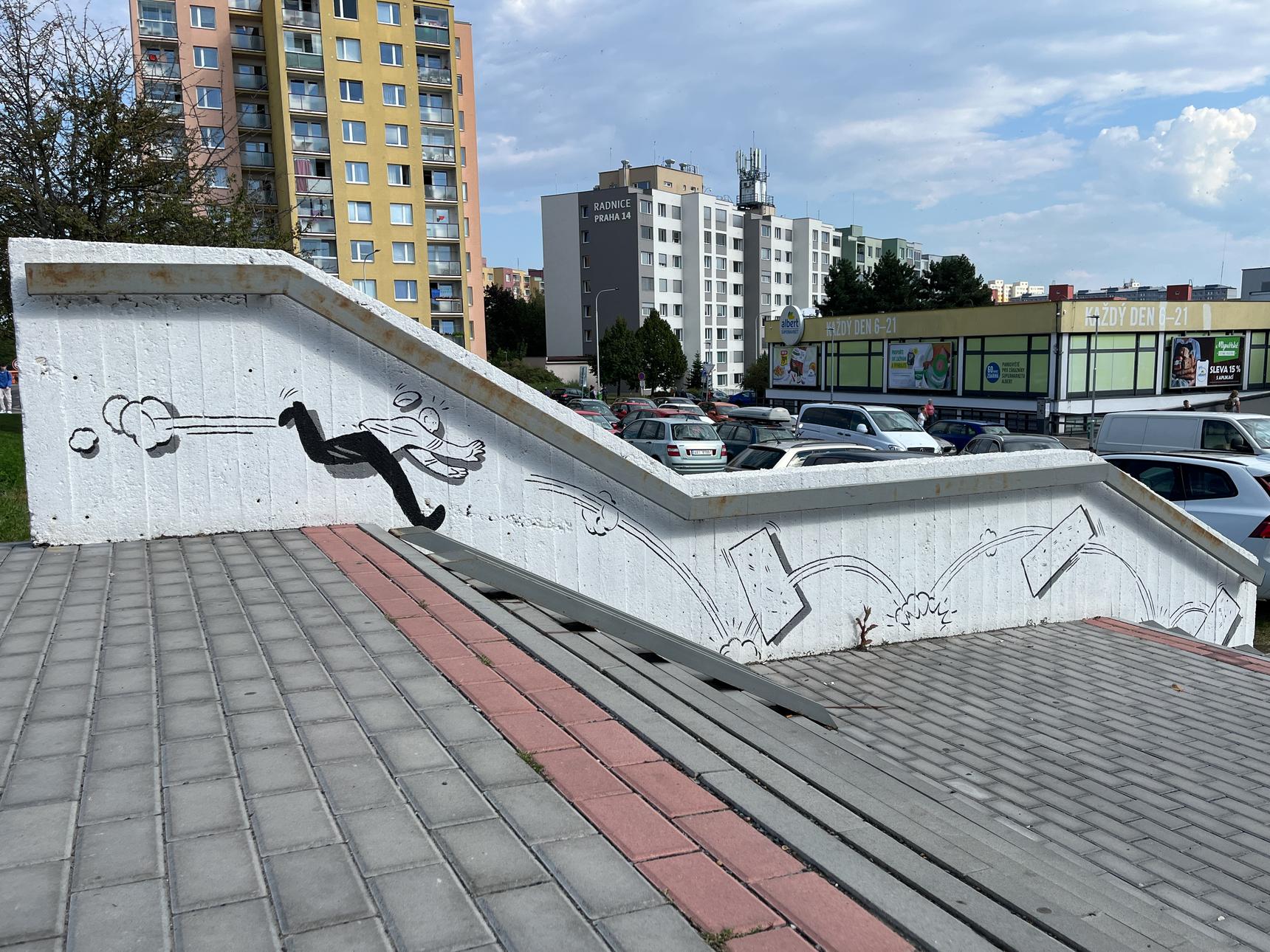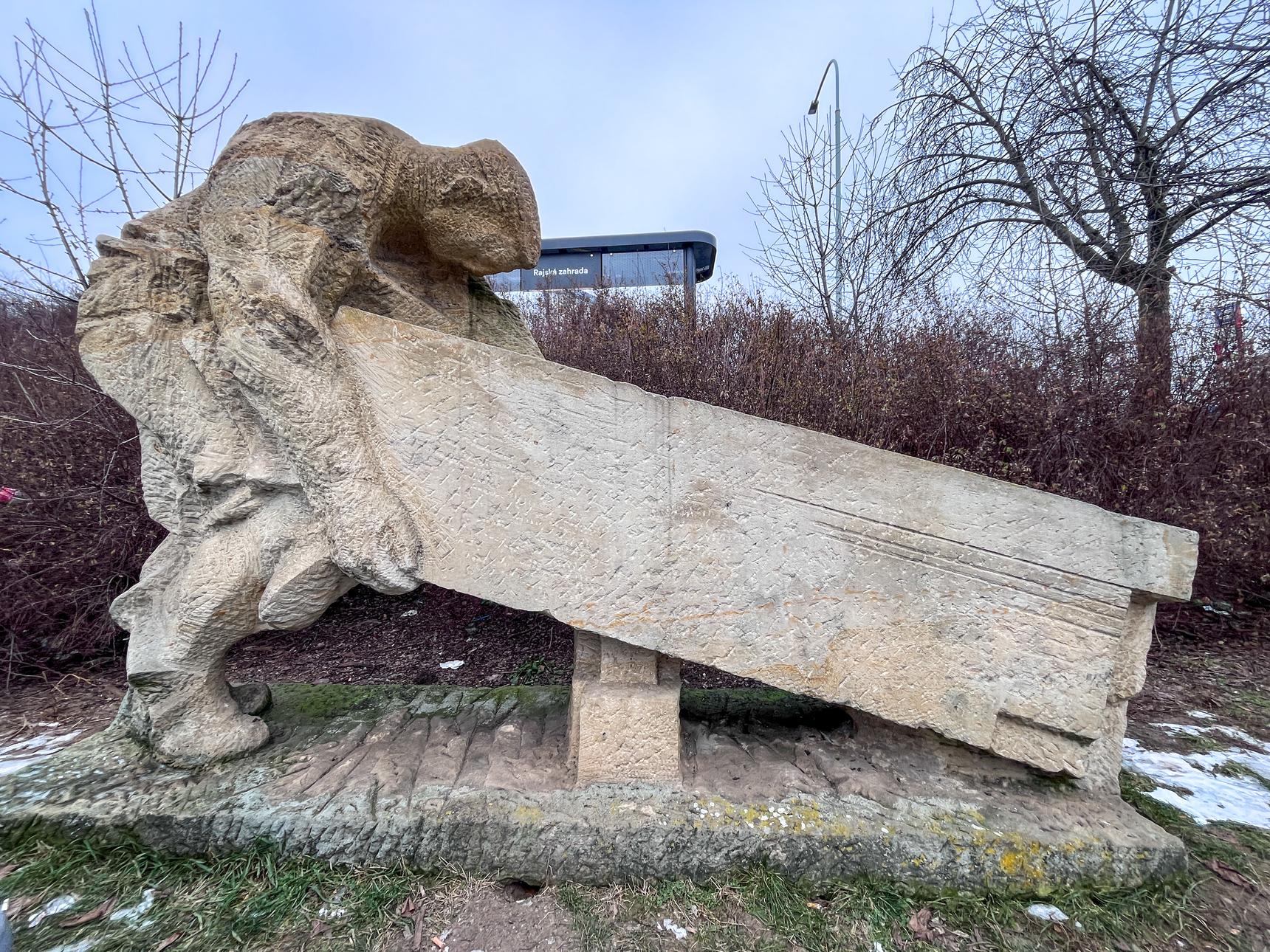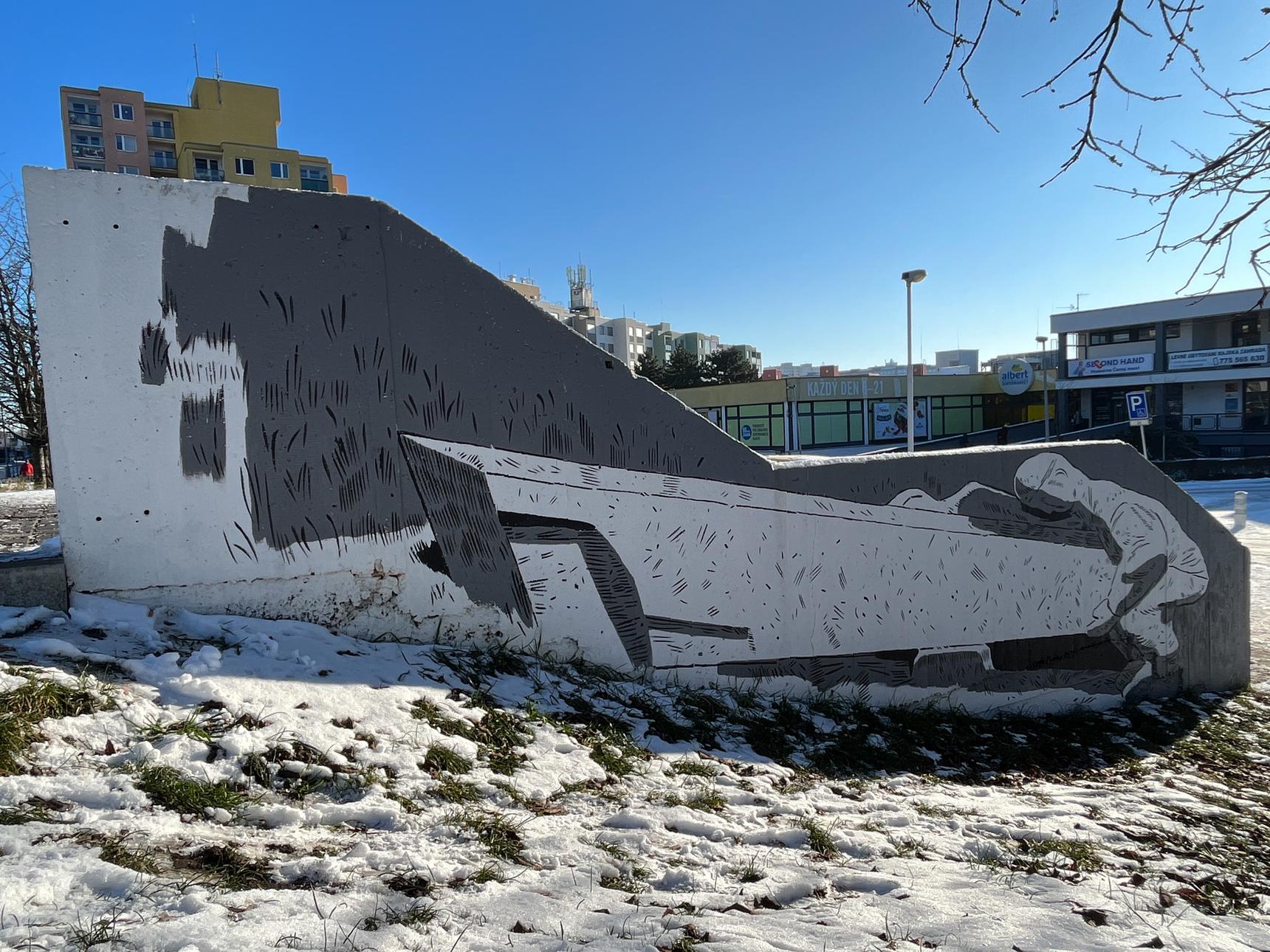 Artwork inspired by the nearby sculpture “Muž s kvádrem” (“Man with a Block”) by Pavel Přikryl (see last picture).